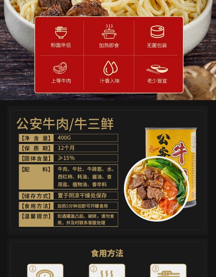 【严选】公安柳浪湖牛三鲜400g*4罐
