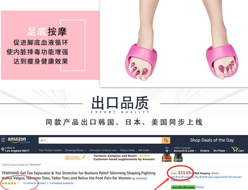 日本设计半掌拖鞋室内美腿提臀拉筋XO型腿纠正 改善平足 拇指外翻 收腹提臀原价55元会员价42元
