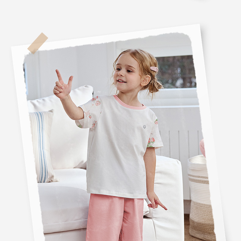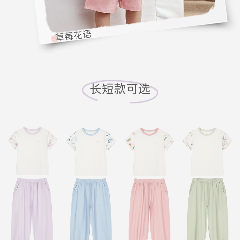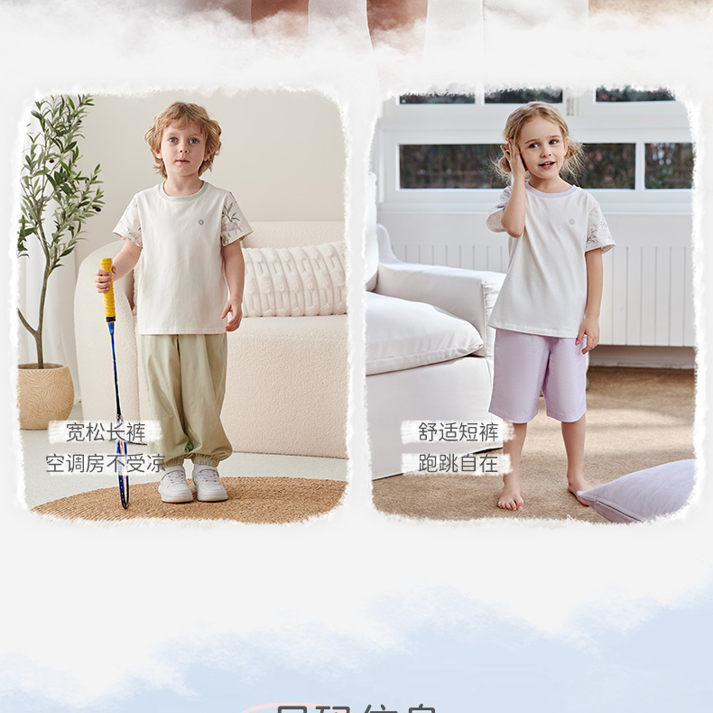 【2025年春夏新品】i-baby/英伦宝贝自然生长恒温抑菌家居服男童针织女童睡衣低敏短袖长裤套装亲子装