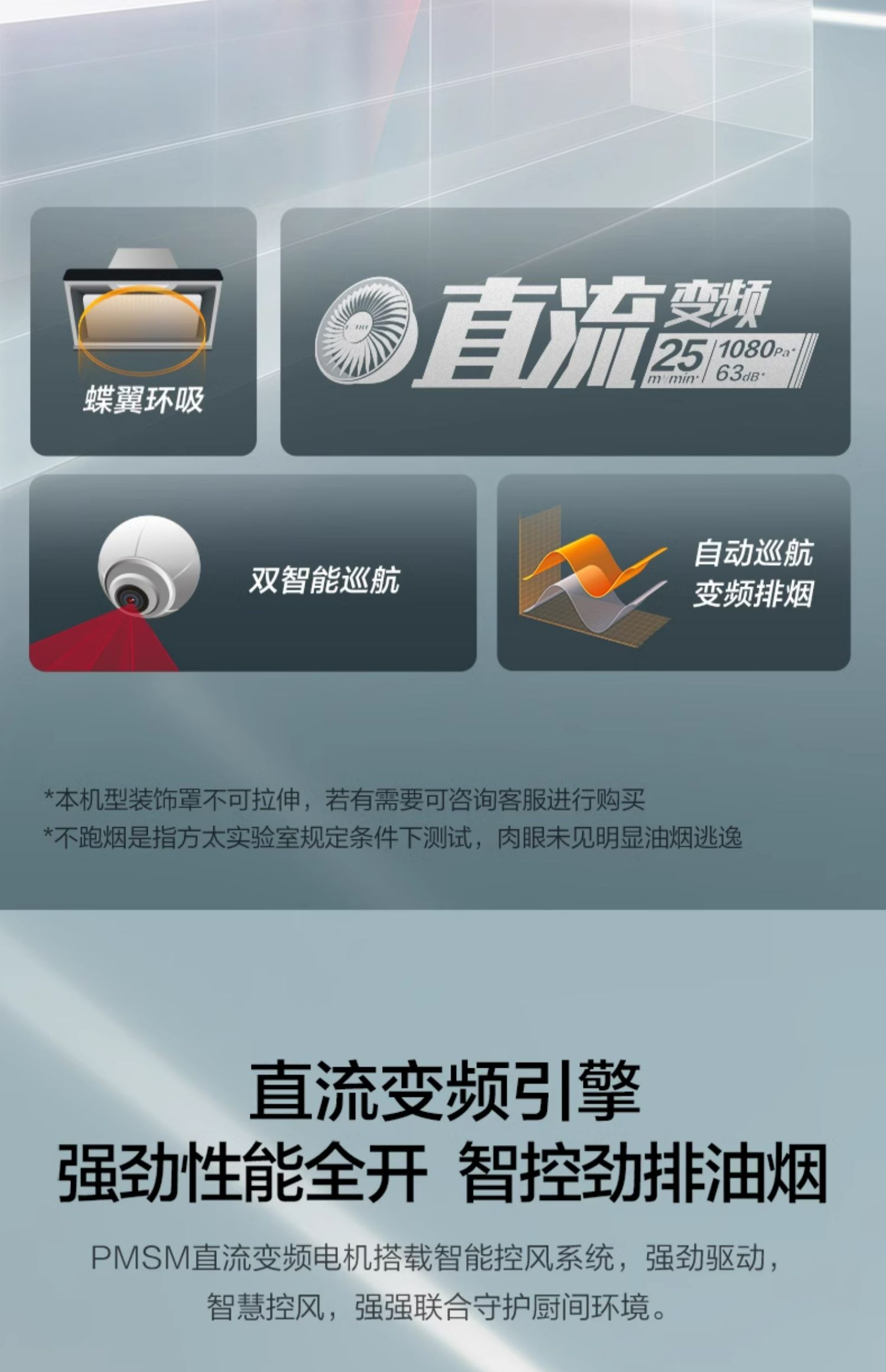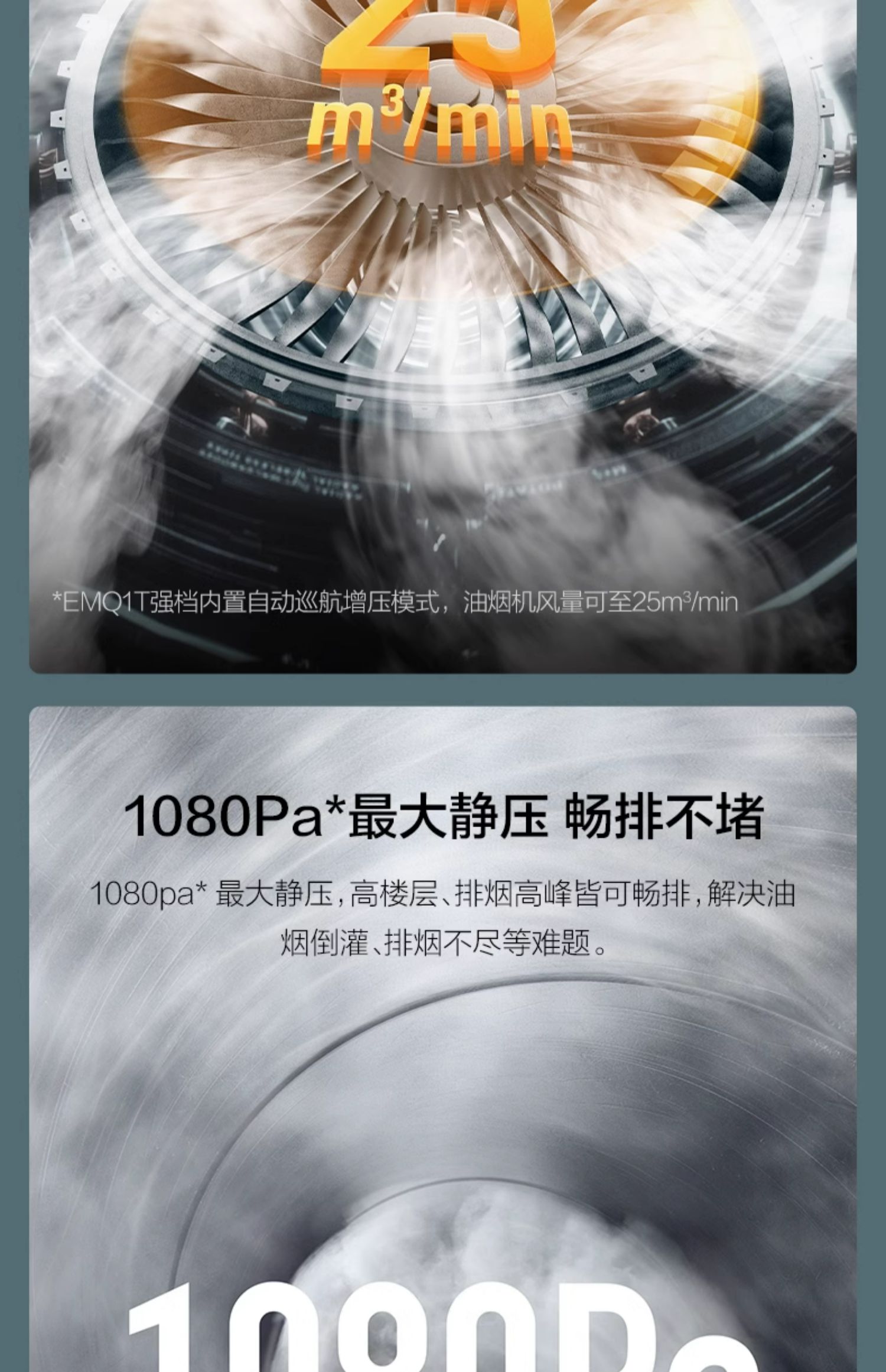 方太EMQ1T变频25m³巡航风量欧式家用顶吸油烟机自动升降大吸力家用厨房电器排抽油烟机吸油机官方正品