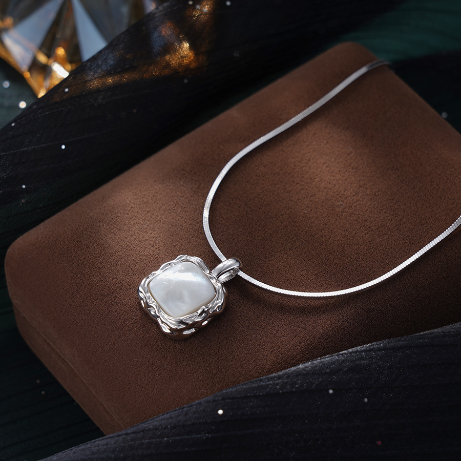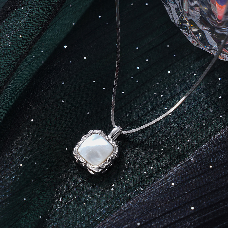 子佩集S925银【熔岩之力】项链纯银【AE00084】原创2方块白贝母2501