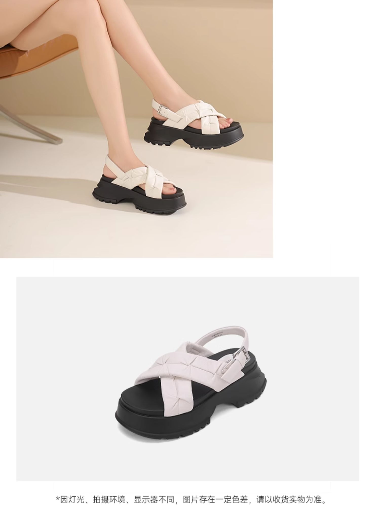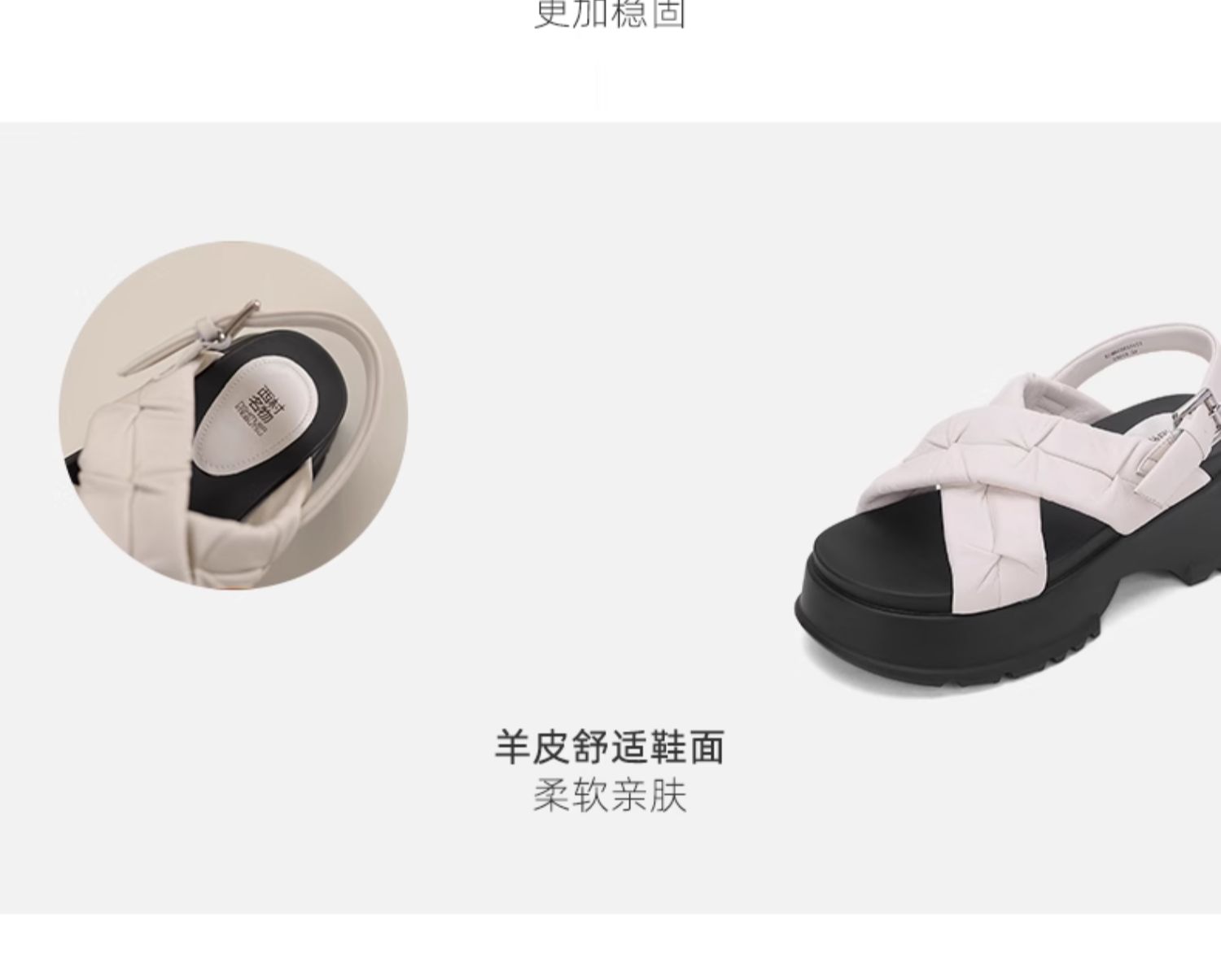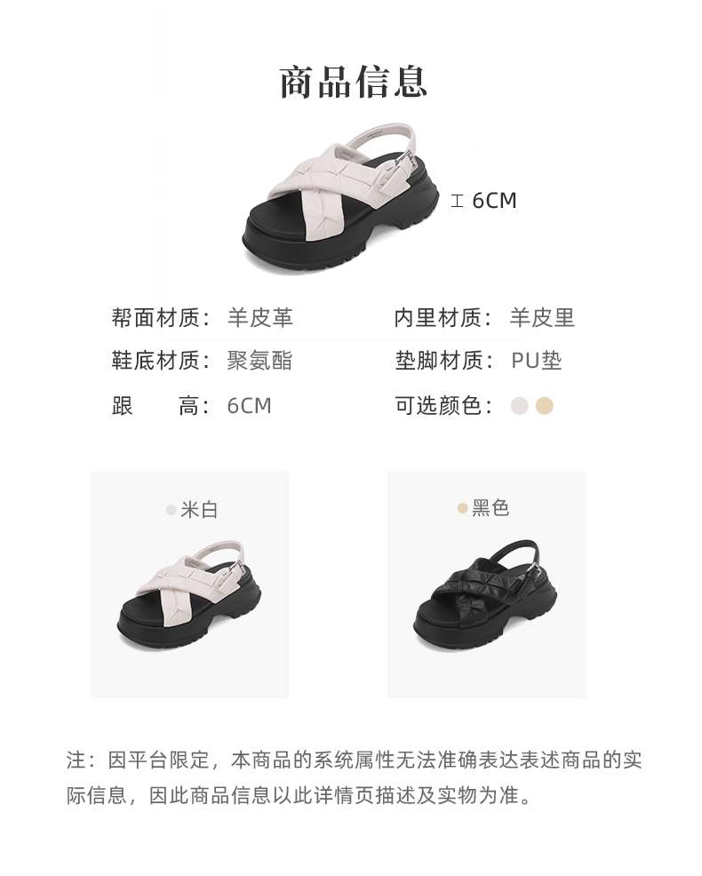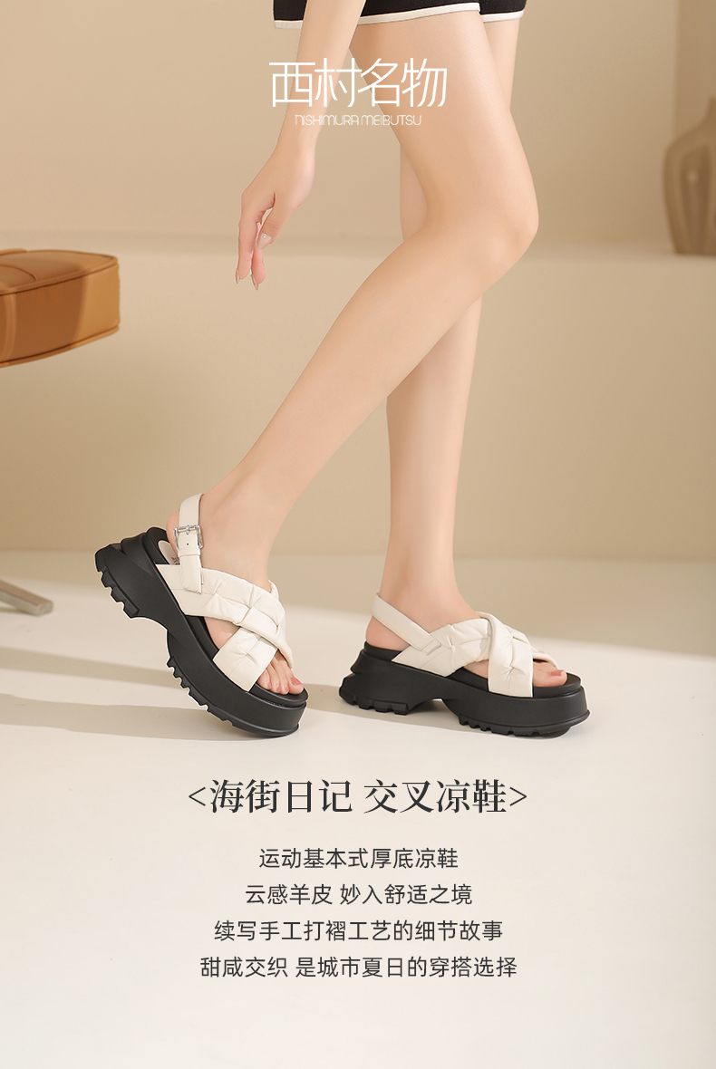西村名物2024夏季新品真皮舒适圆头厚底时尚简约增高交叉凉鞋女X24BG20331