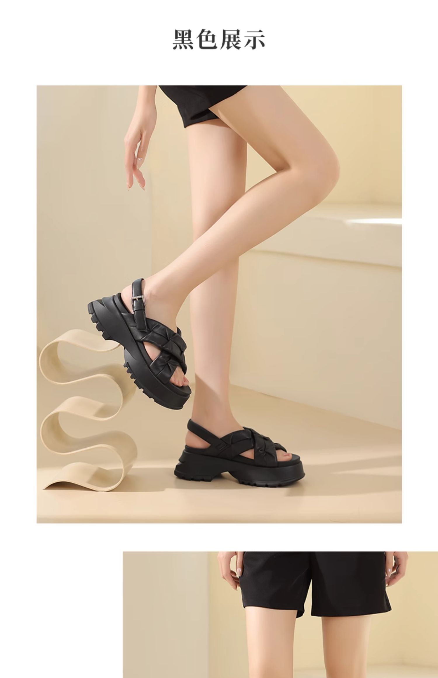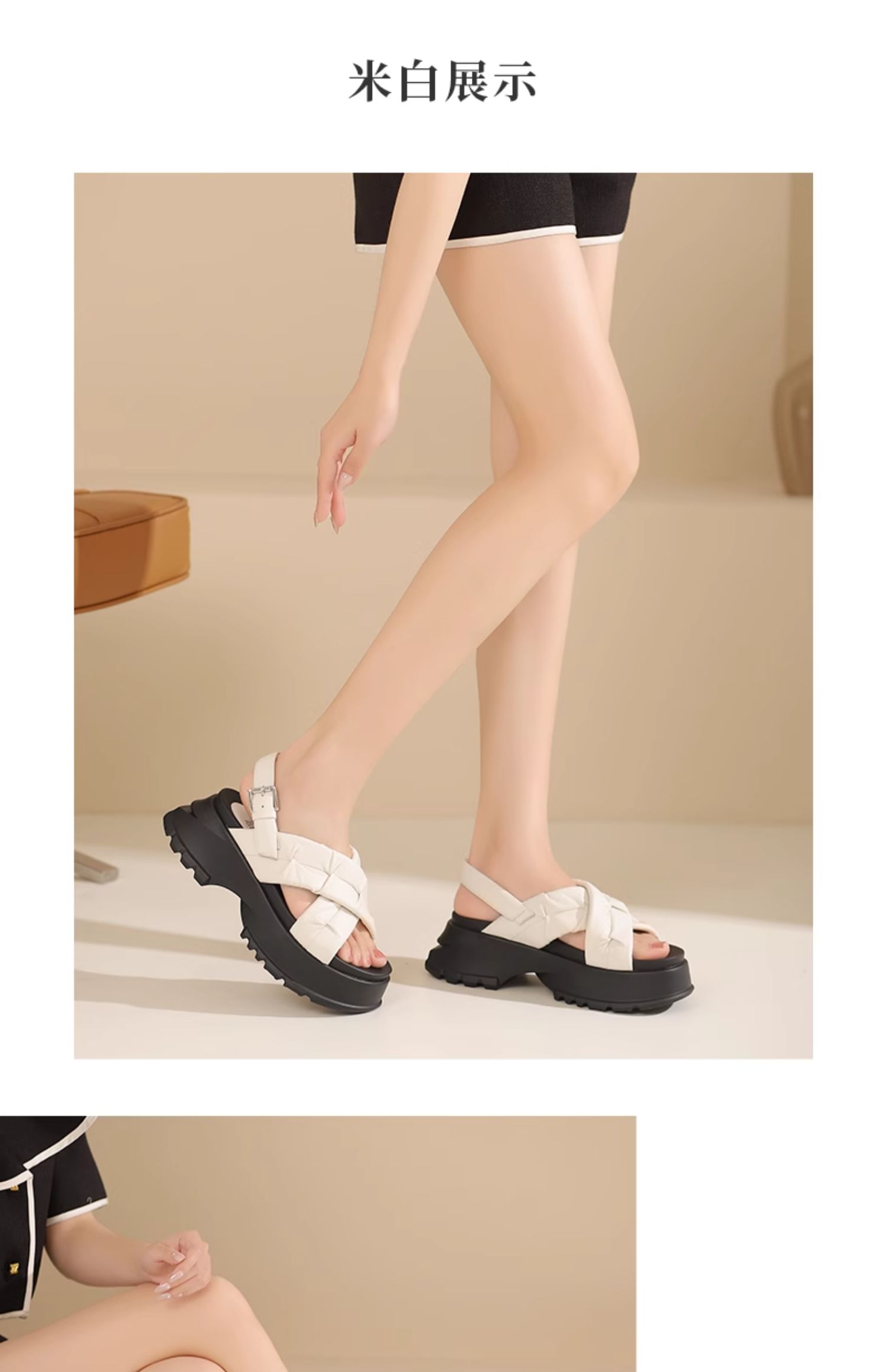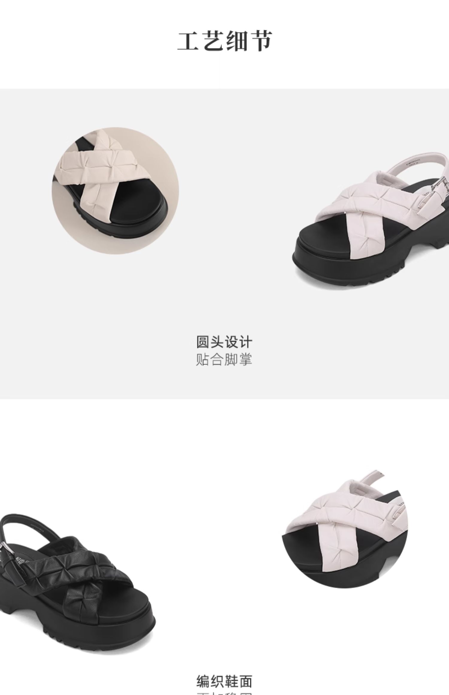 西村名物2024夏季新品真皮舒适圆头厚底时尚简约增高交叉凉鞋女X24BG20331