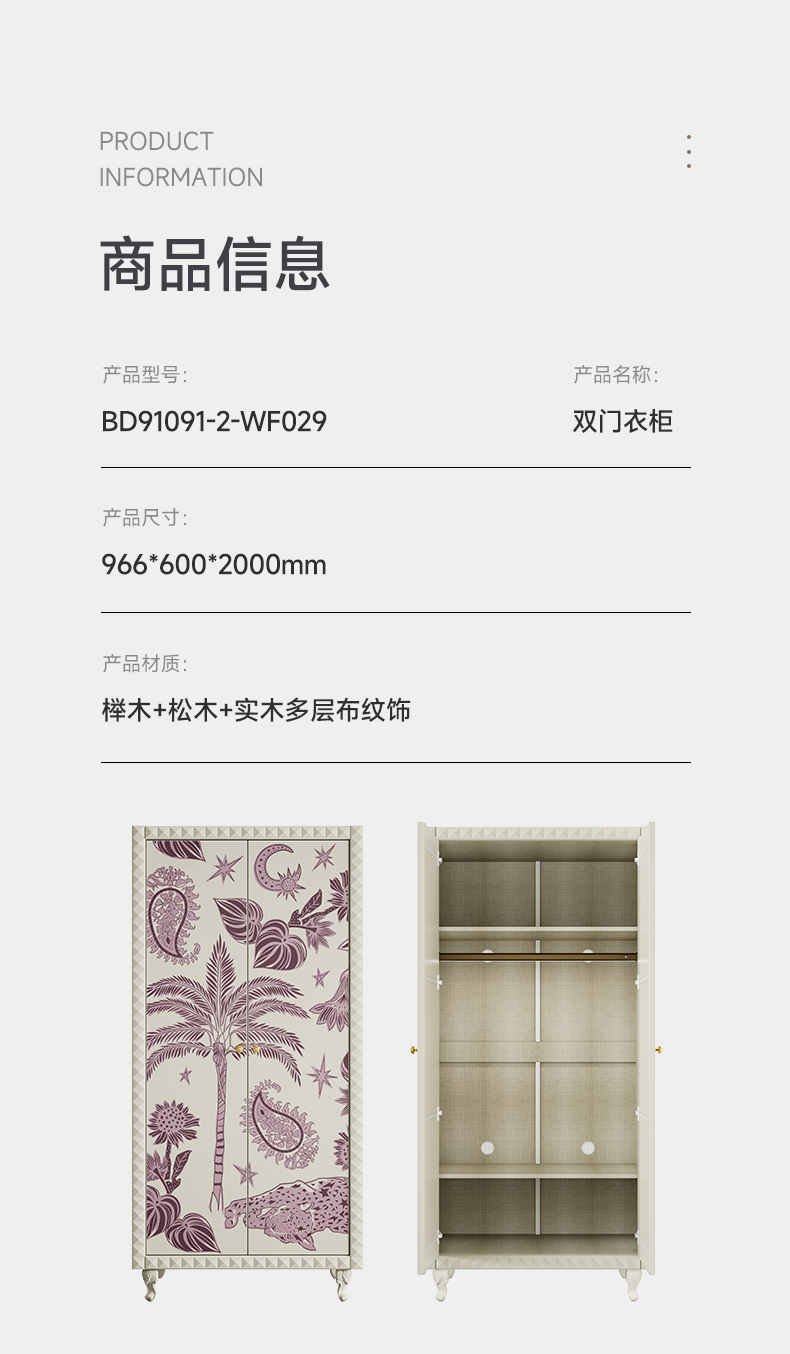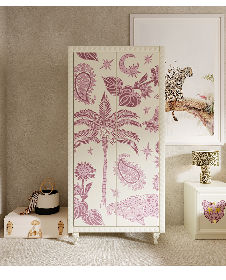 喜梦宝粉红豹双门衣柜松木实木多层免漆饰面环保耐用