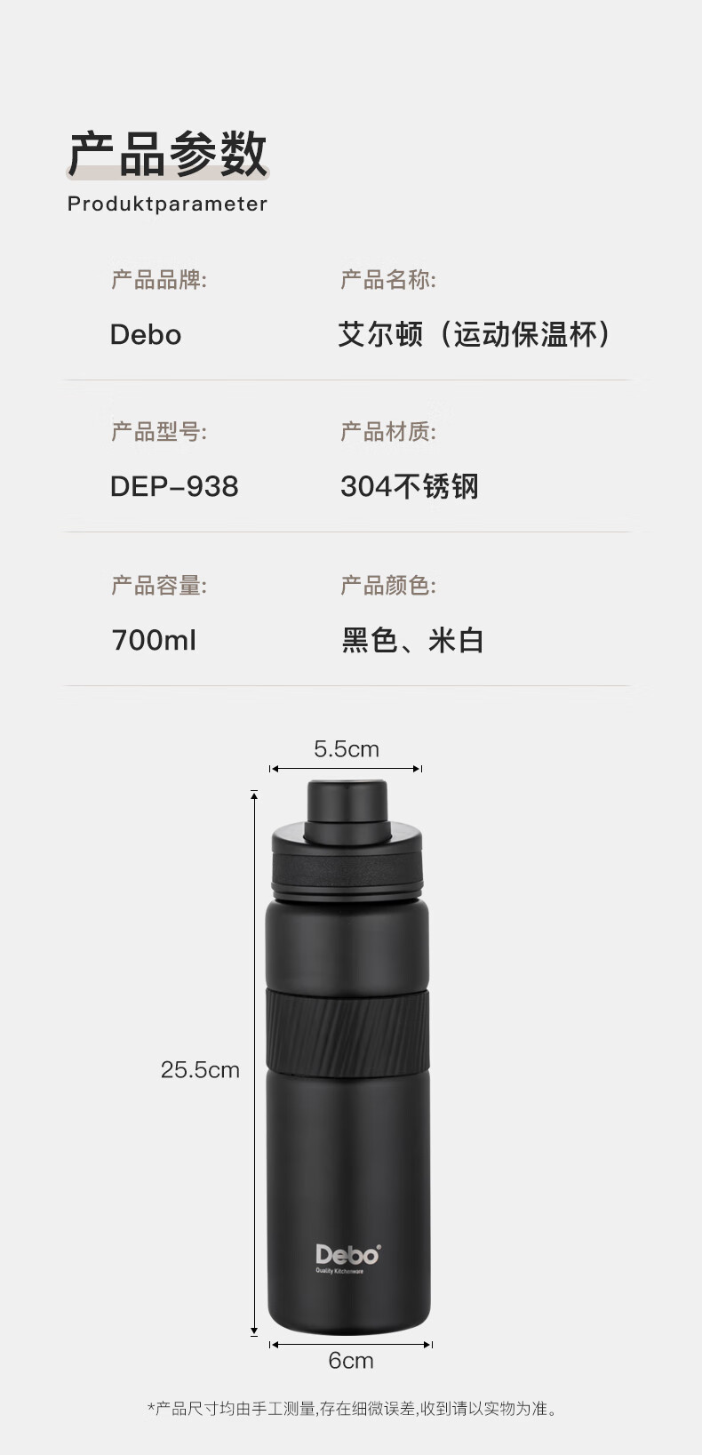 【分仓直发包邮】德铂艾尔顿运动保温杯(黑/白)DEP-938