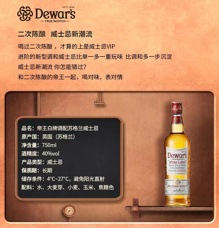 【有税版】帝王白牌(调配)苏格兰威士忌 750ml 两件起售