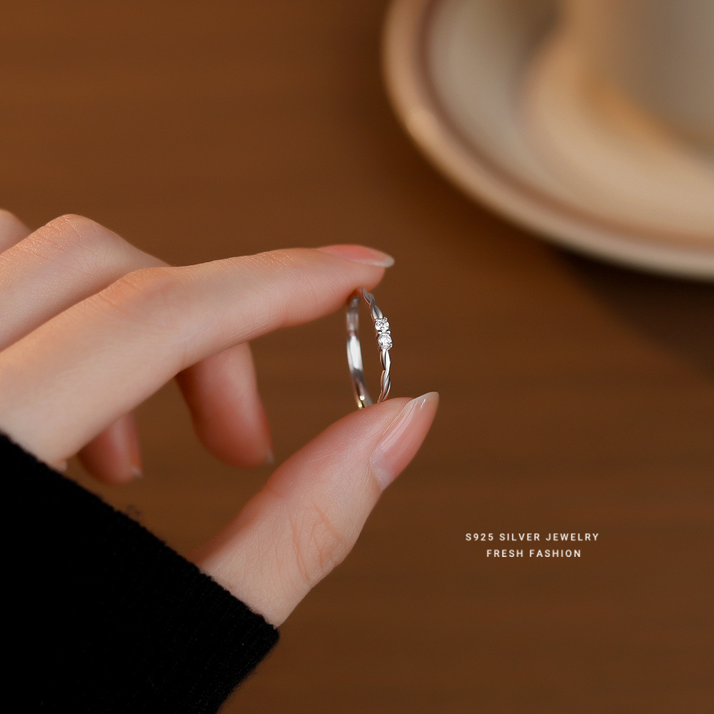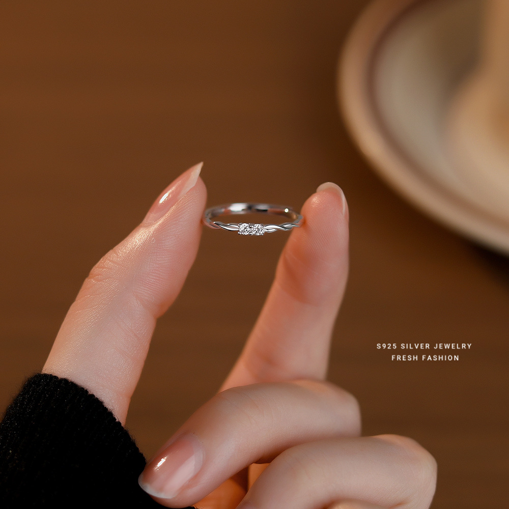 【美素】S925银素圈冷淡风麻花锆石戒指【YXS-K1465】