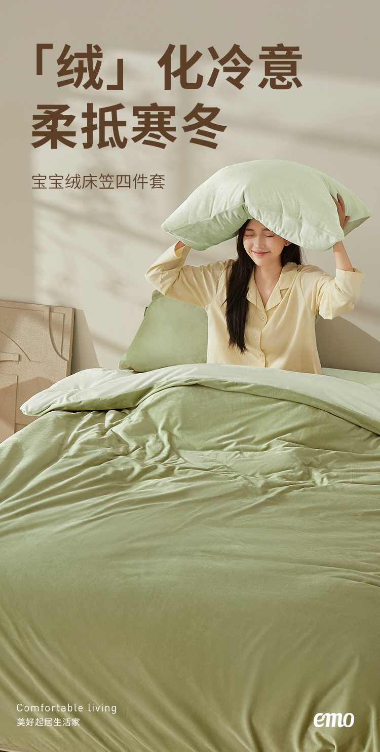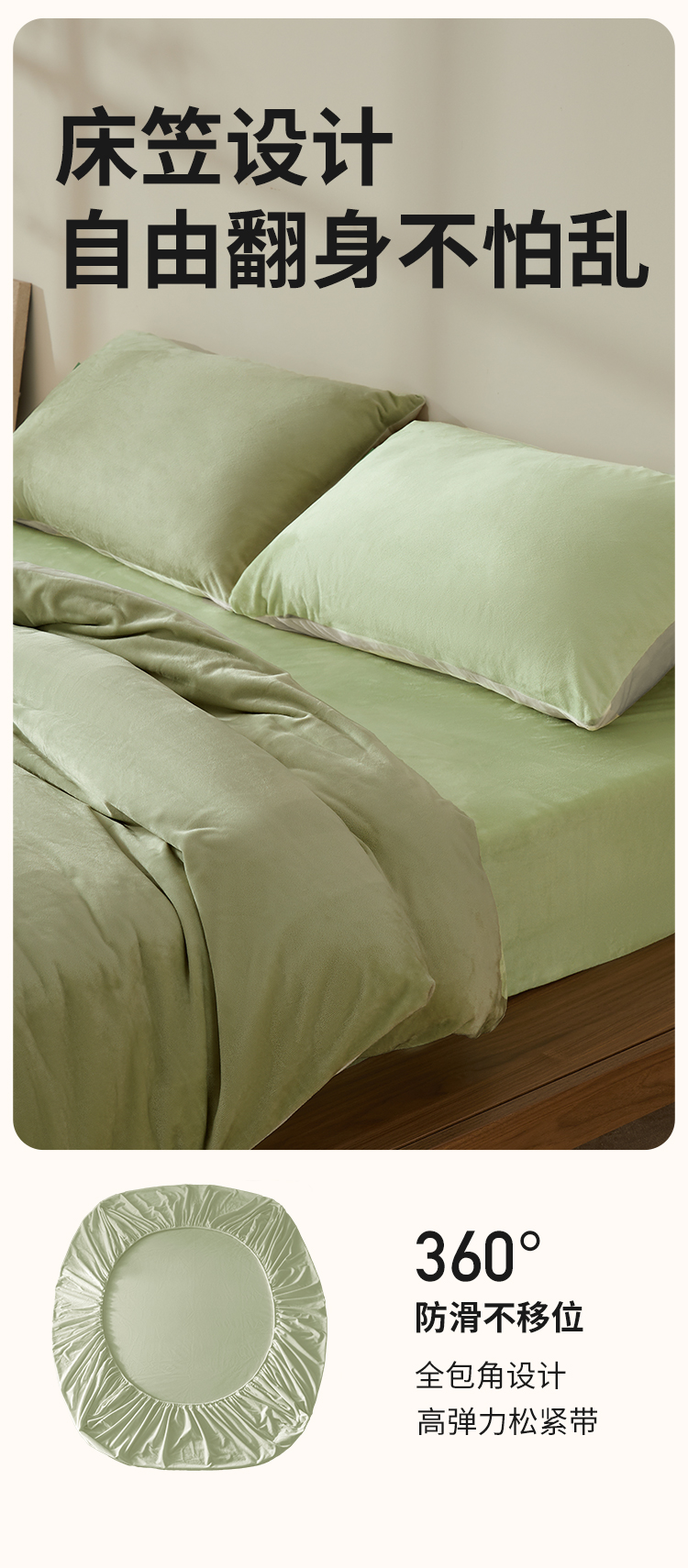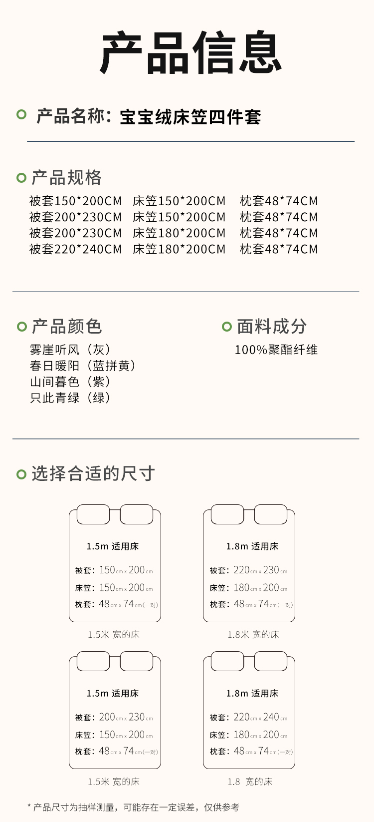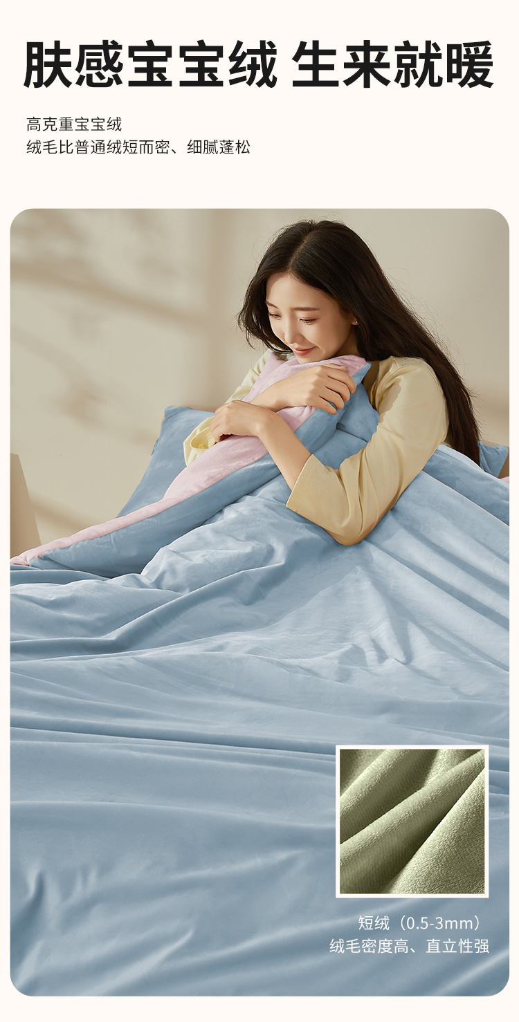 一默 宝宝绒床笠四件套 宝宝绒暖和亲肤 A类标准 冬季温暖必备;耐磨耐用防静电,可水洗可机洗