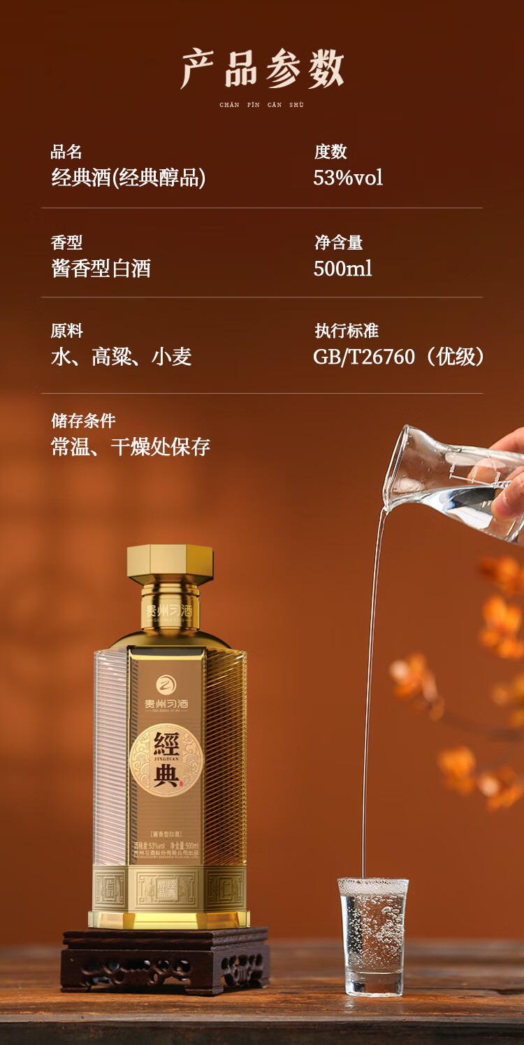 【整箱特价】贵州习酒 53°经典醇品(透明) 酱香型白酒 500ml