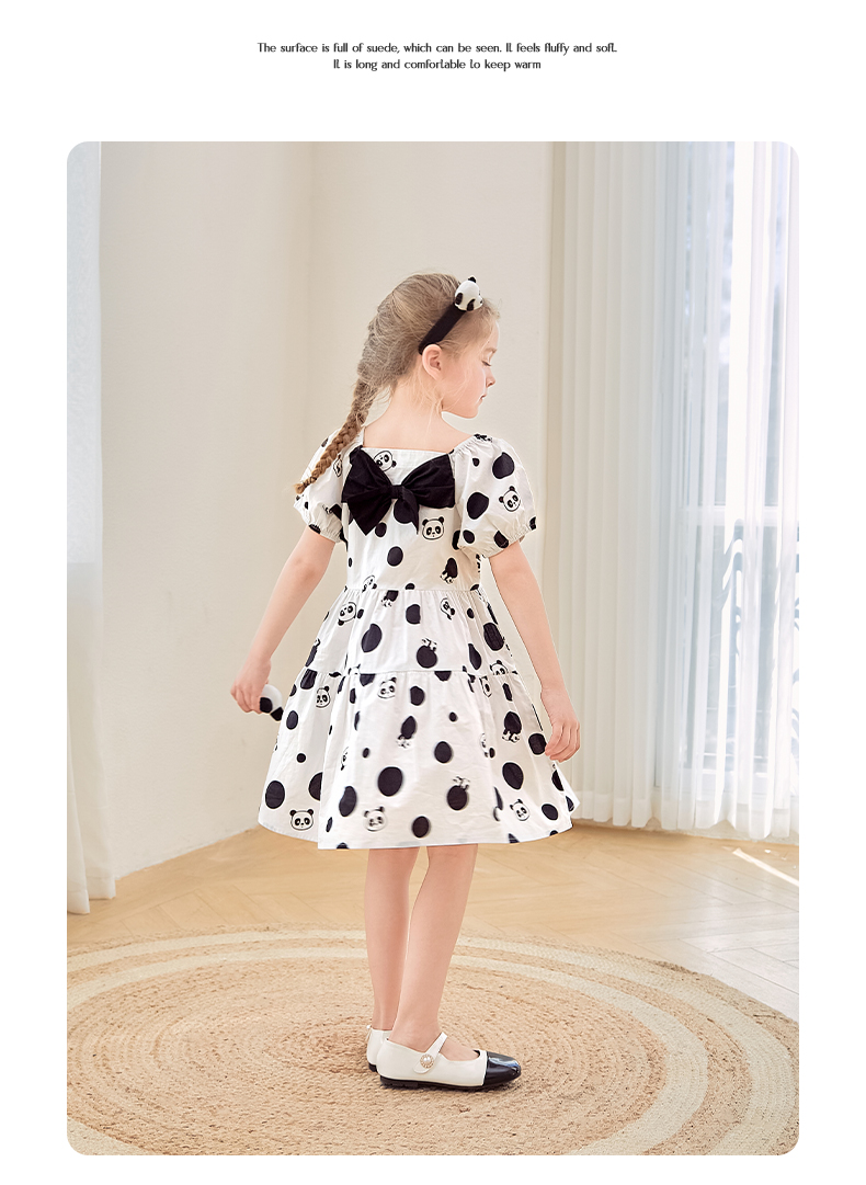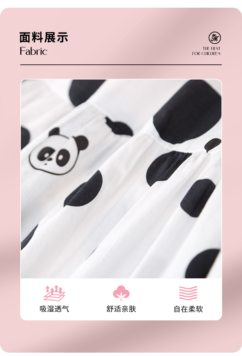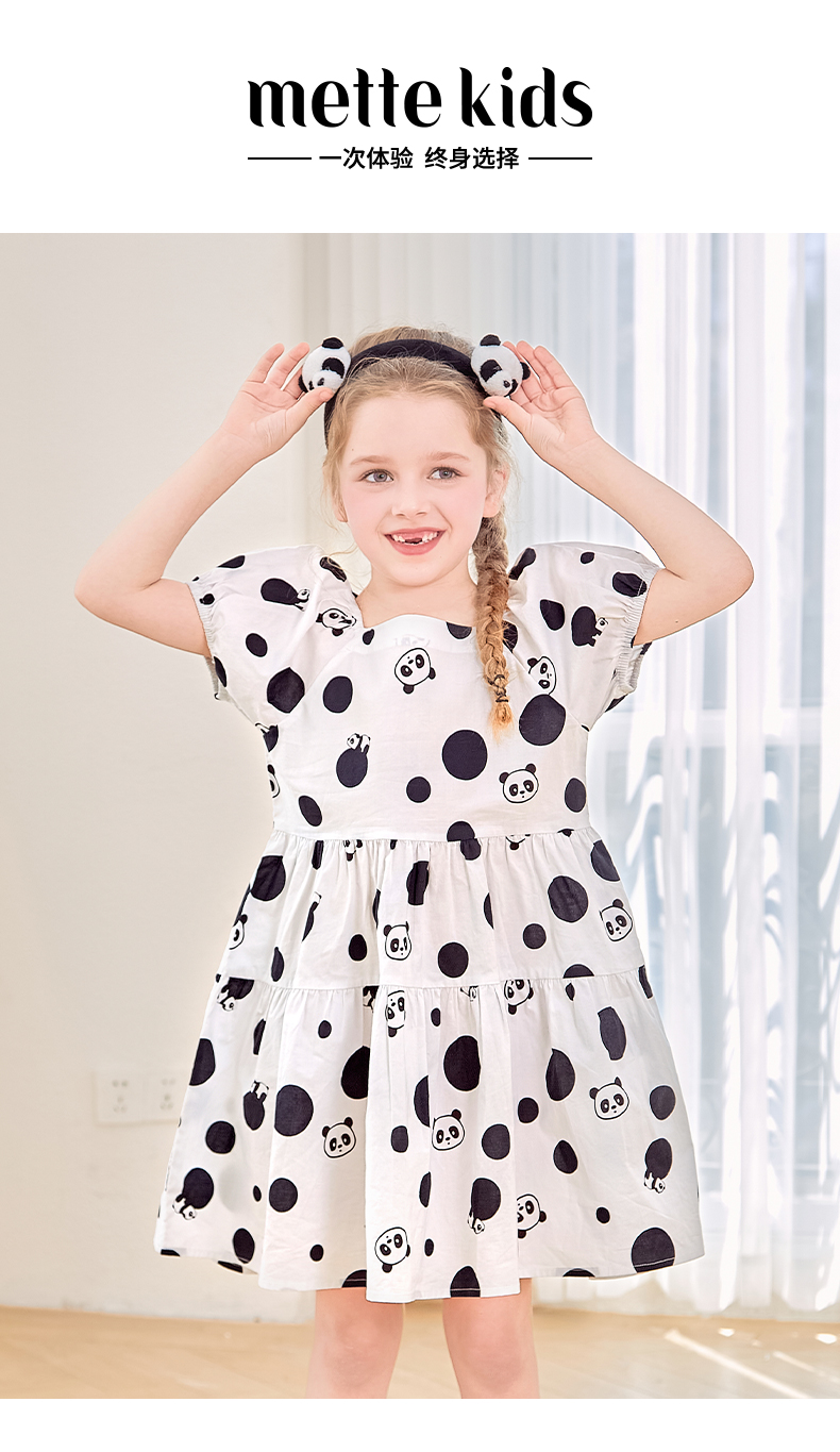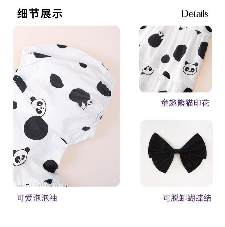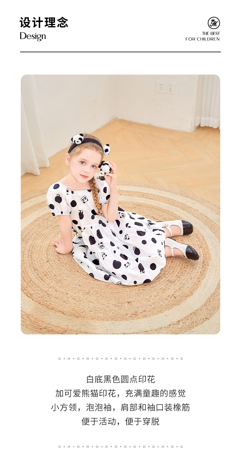 mettekids女童连衣裙2024夏新款泡泡袖可爱熊猫甜美儿童公主裙子