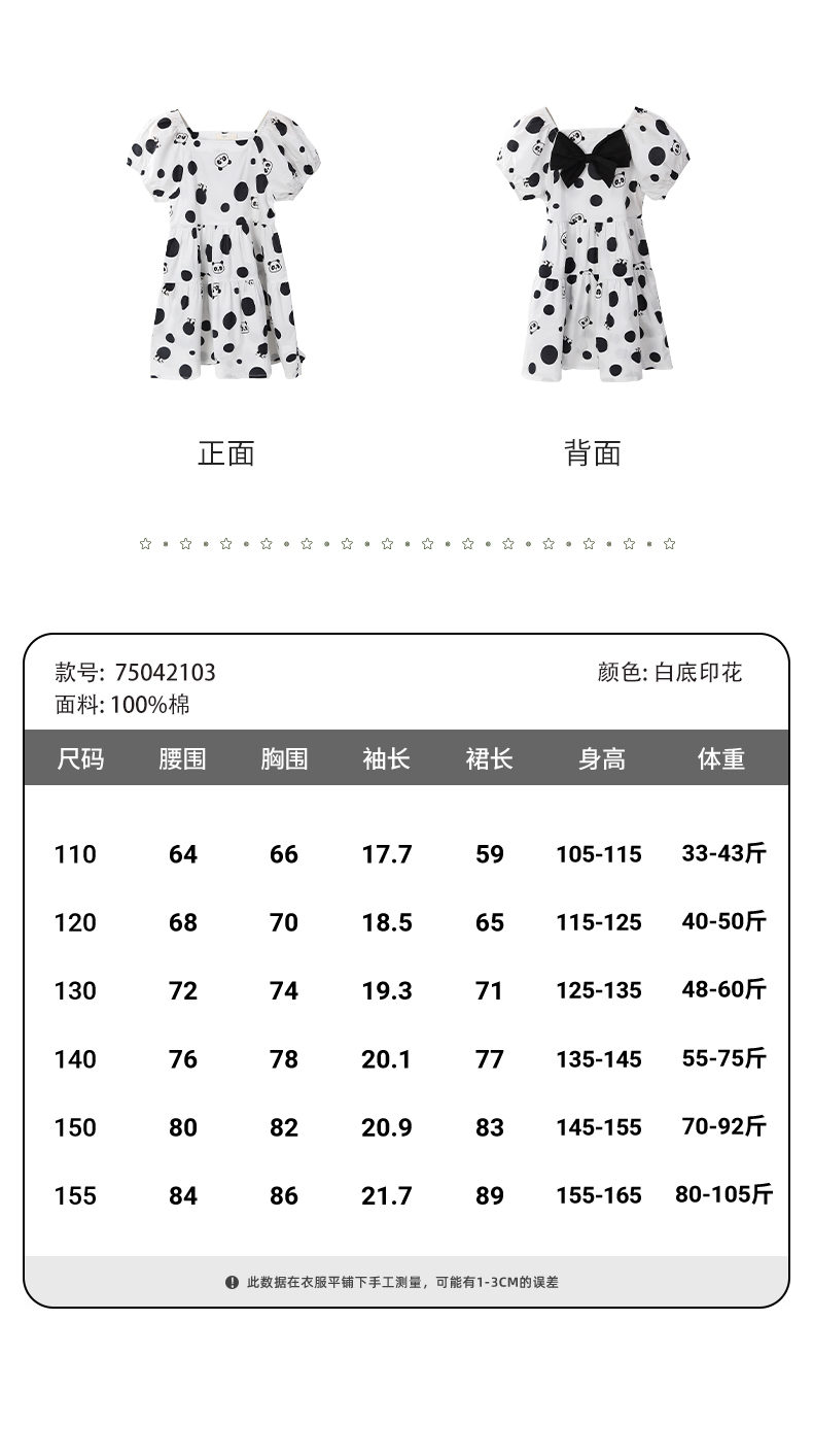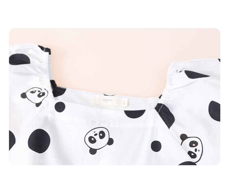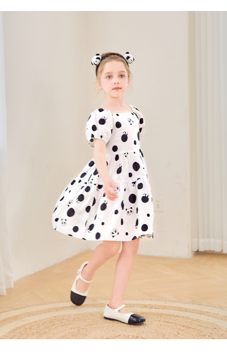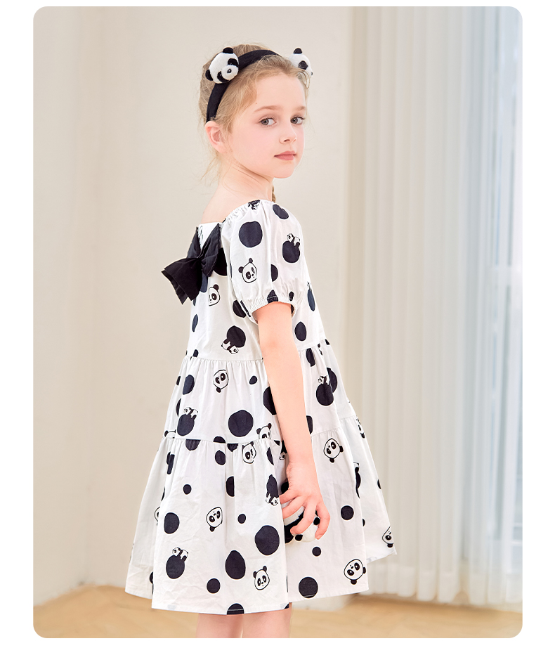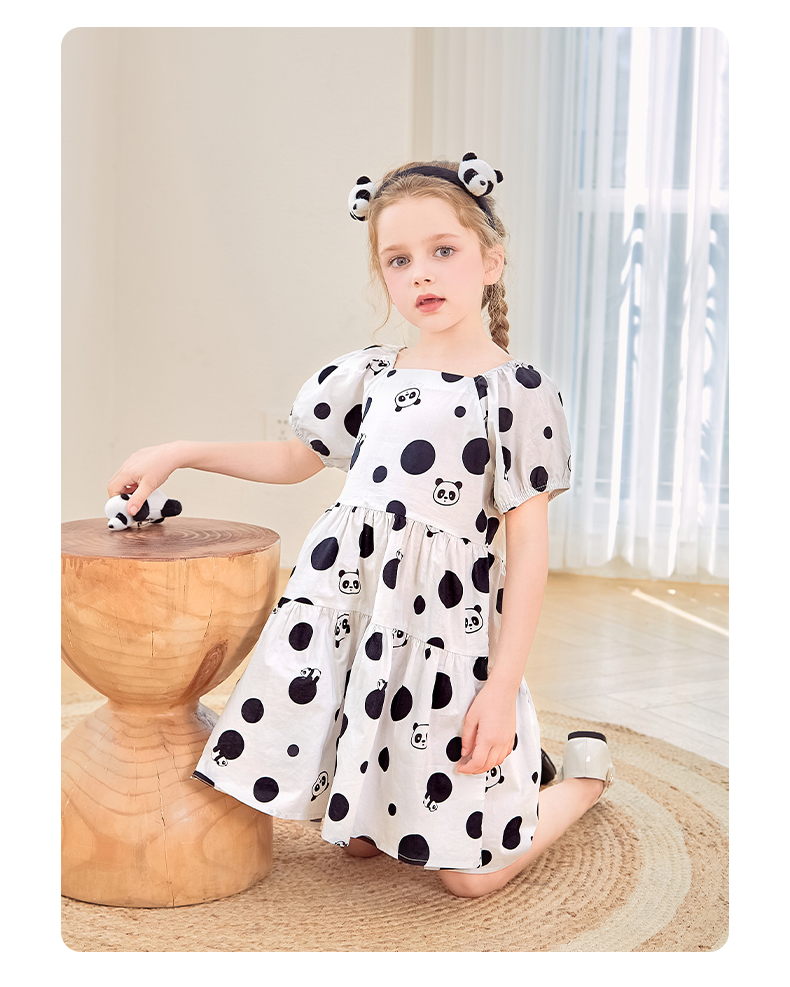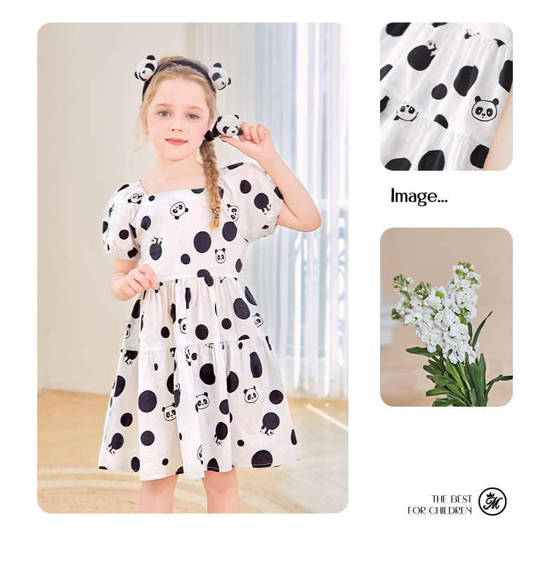 mettekids女童连衣裙2024夏新款泡泡袖可爱熊猫甜美儿童公主裙子