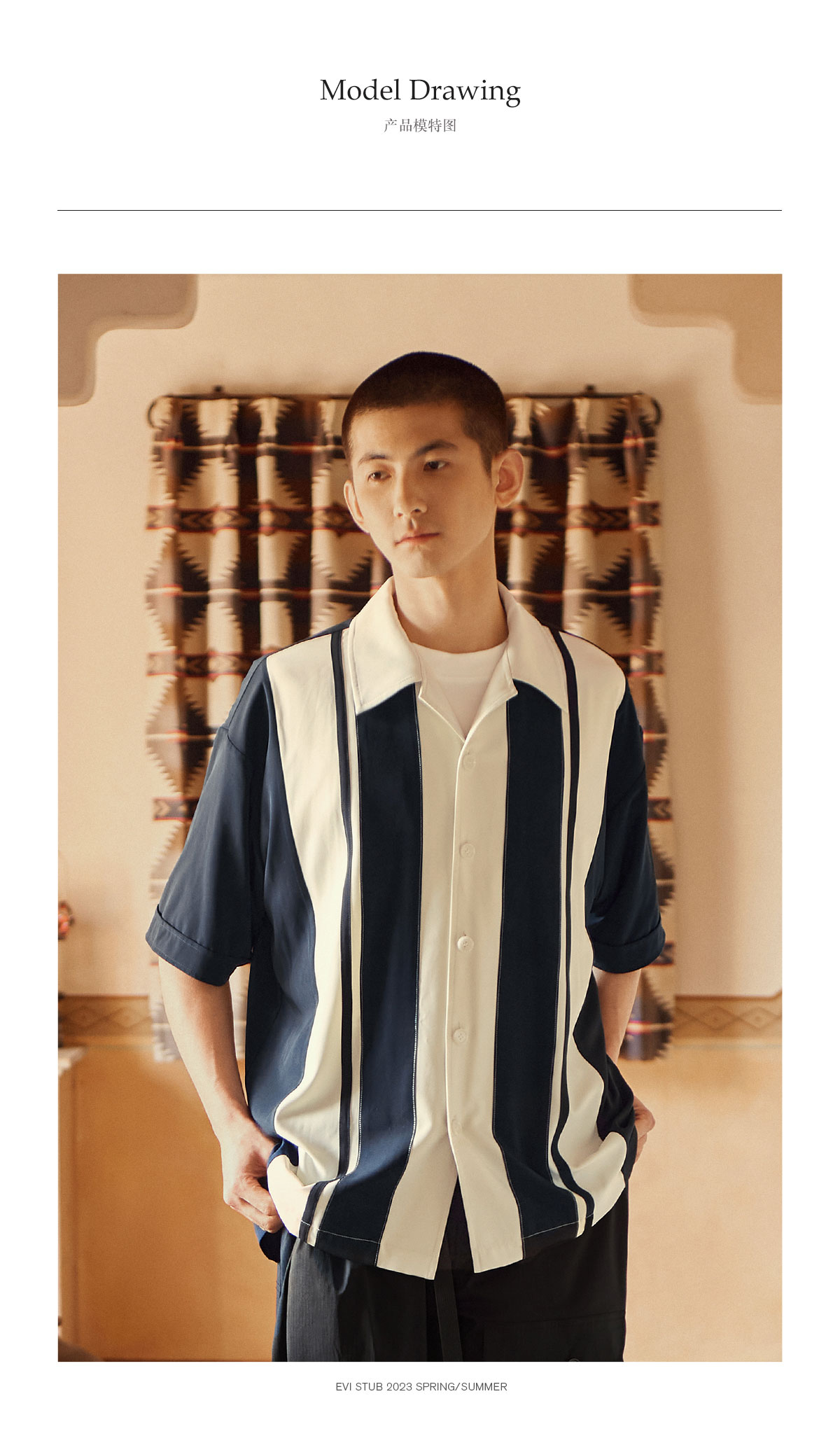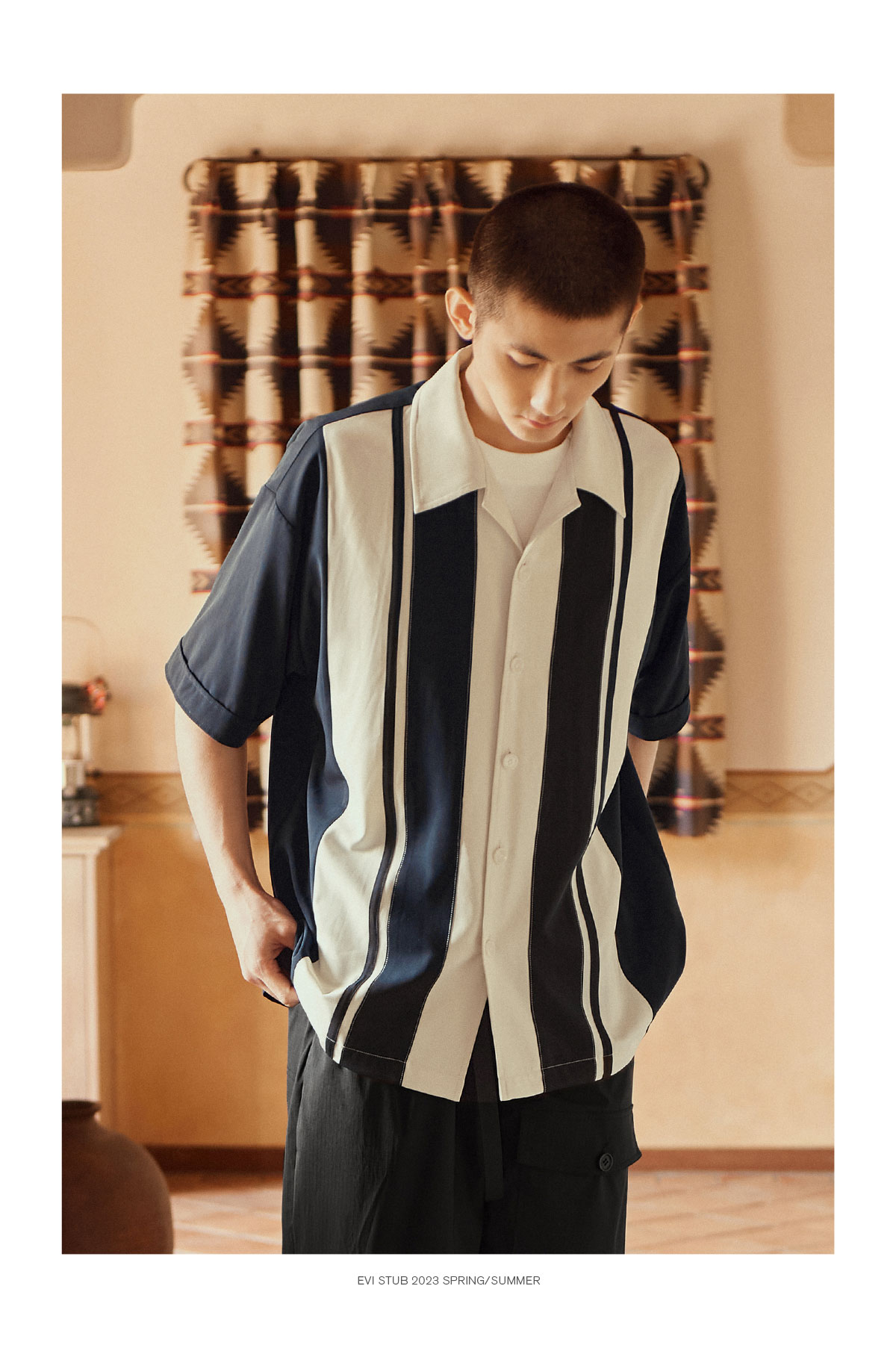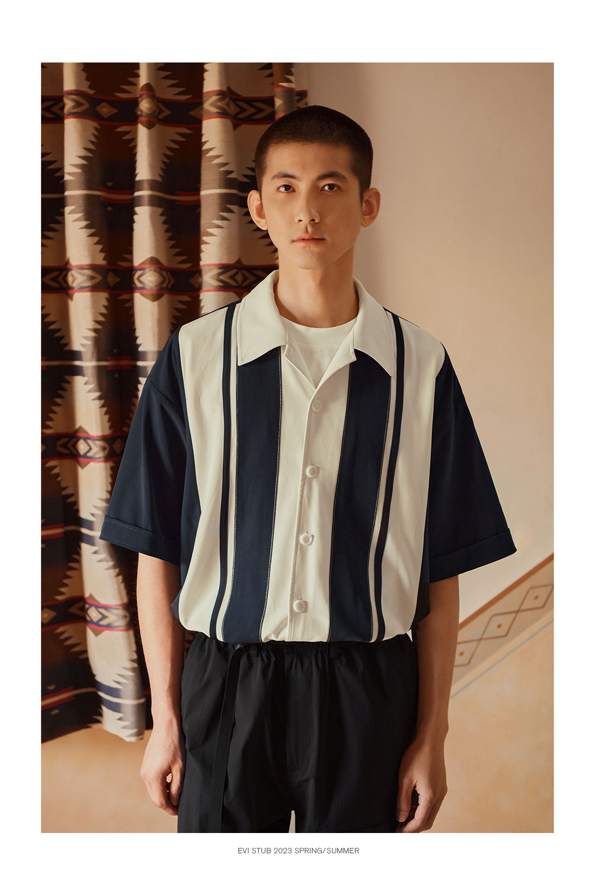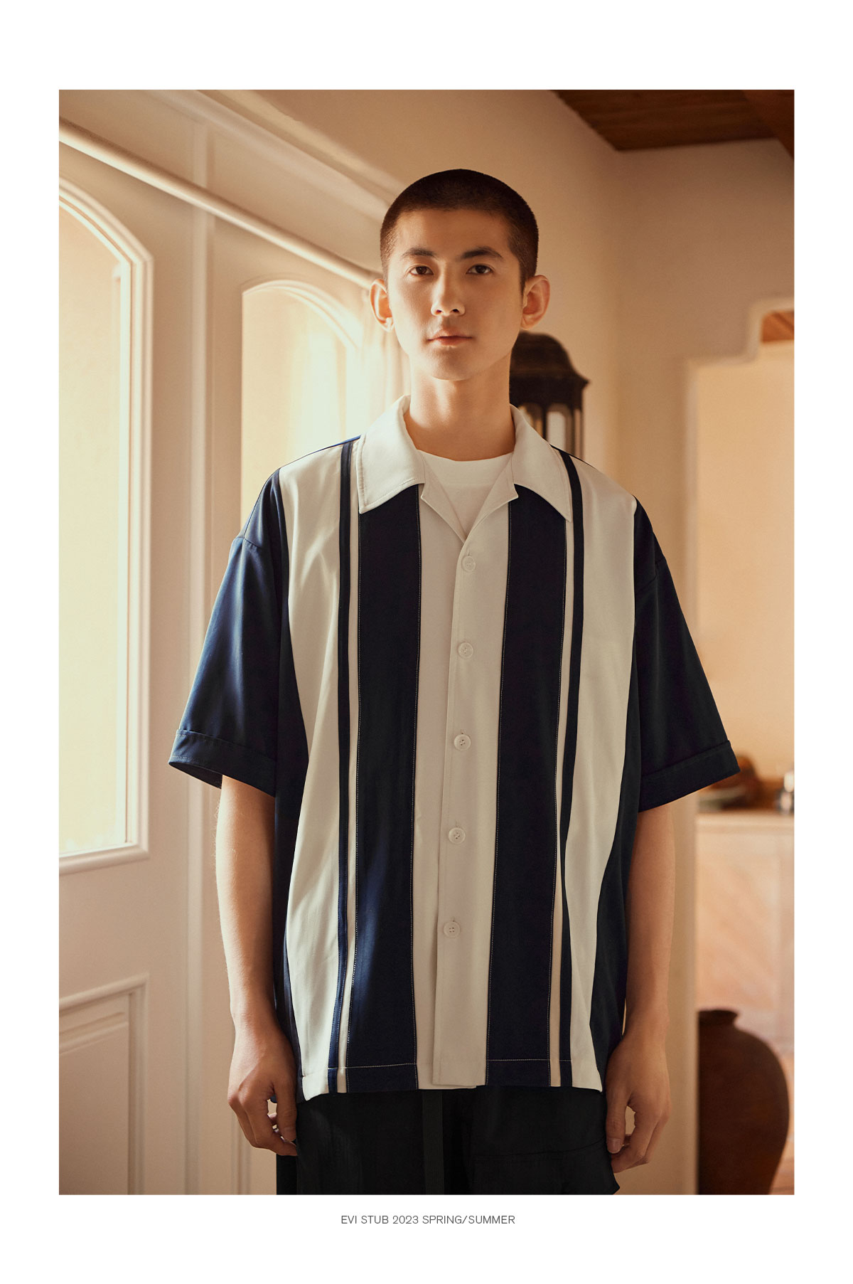 Evistub/E-3XCS06/古巴领刺绣廓形短袖衬衫