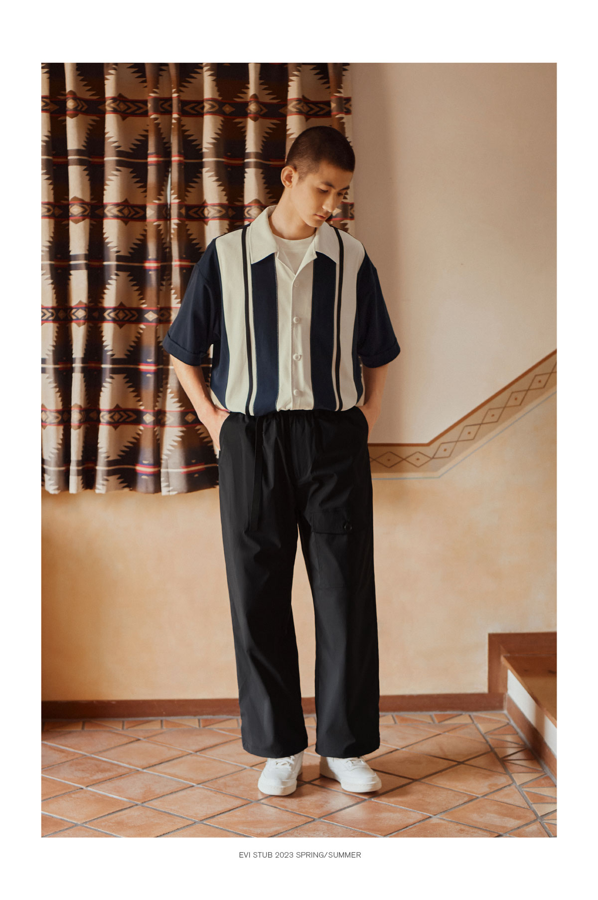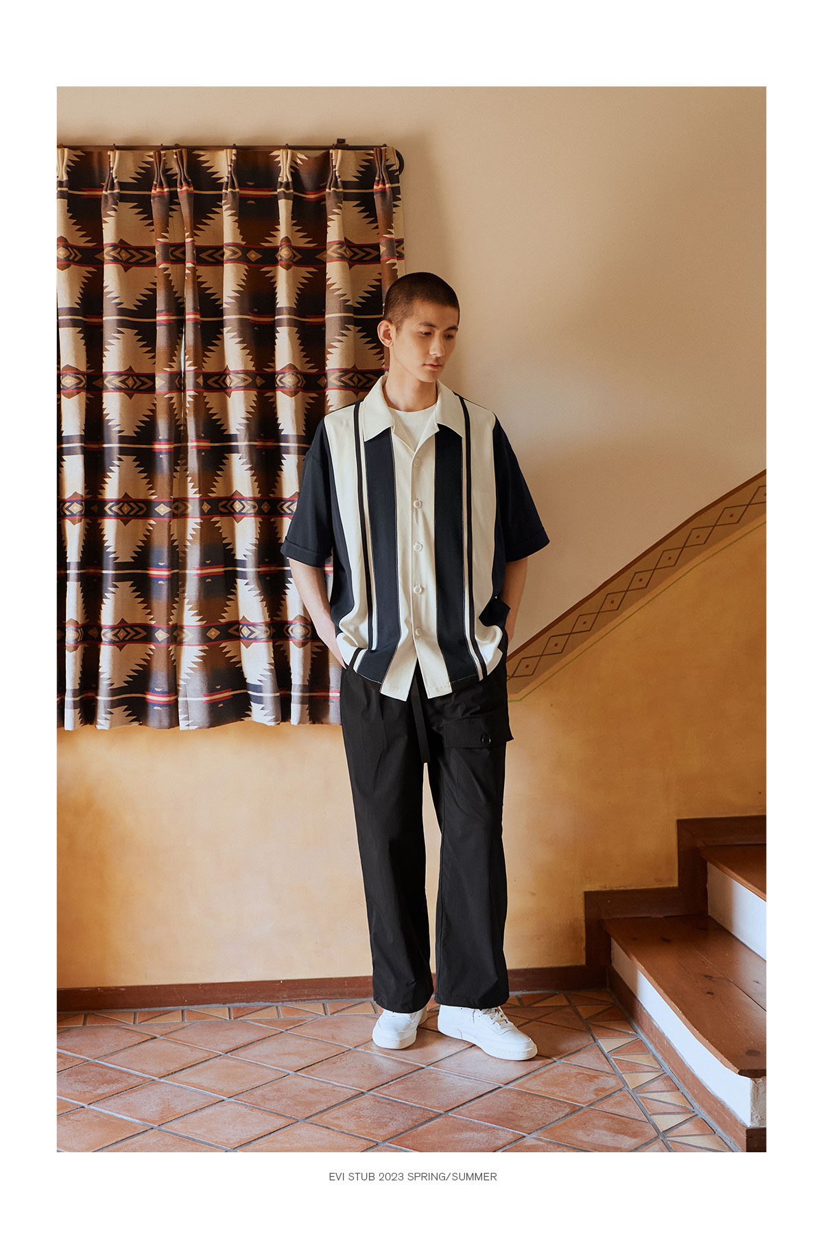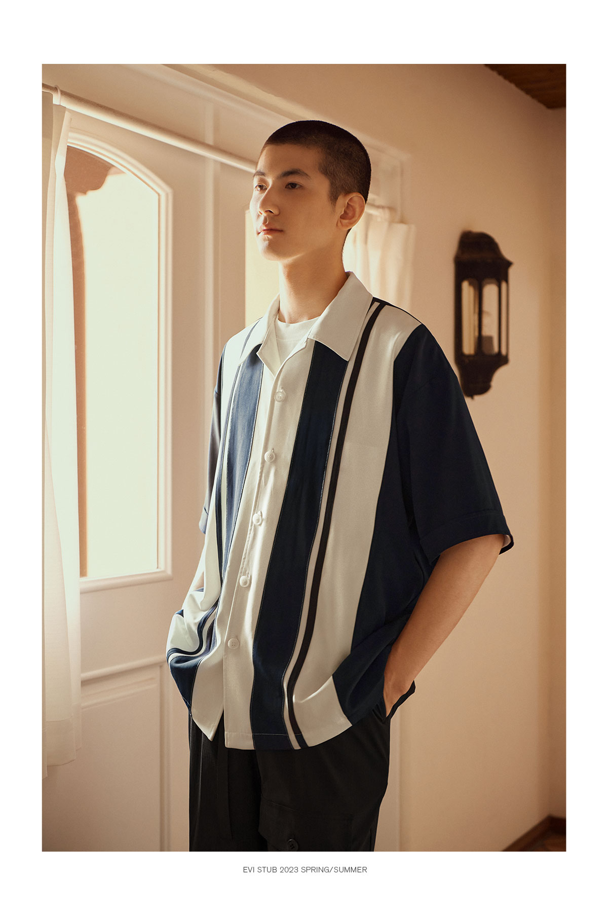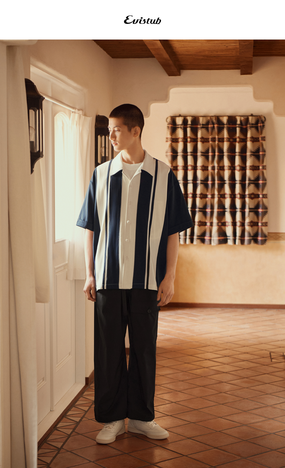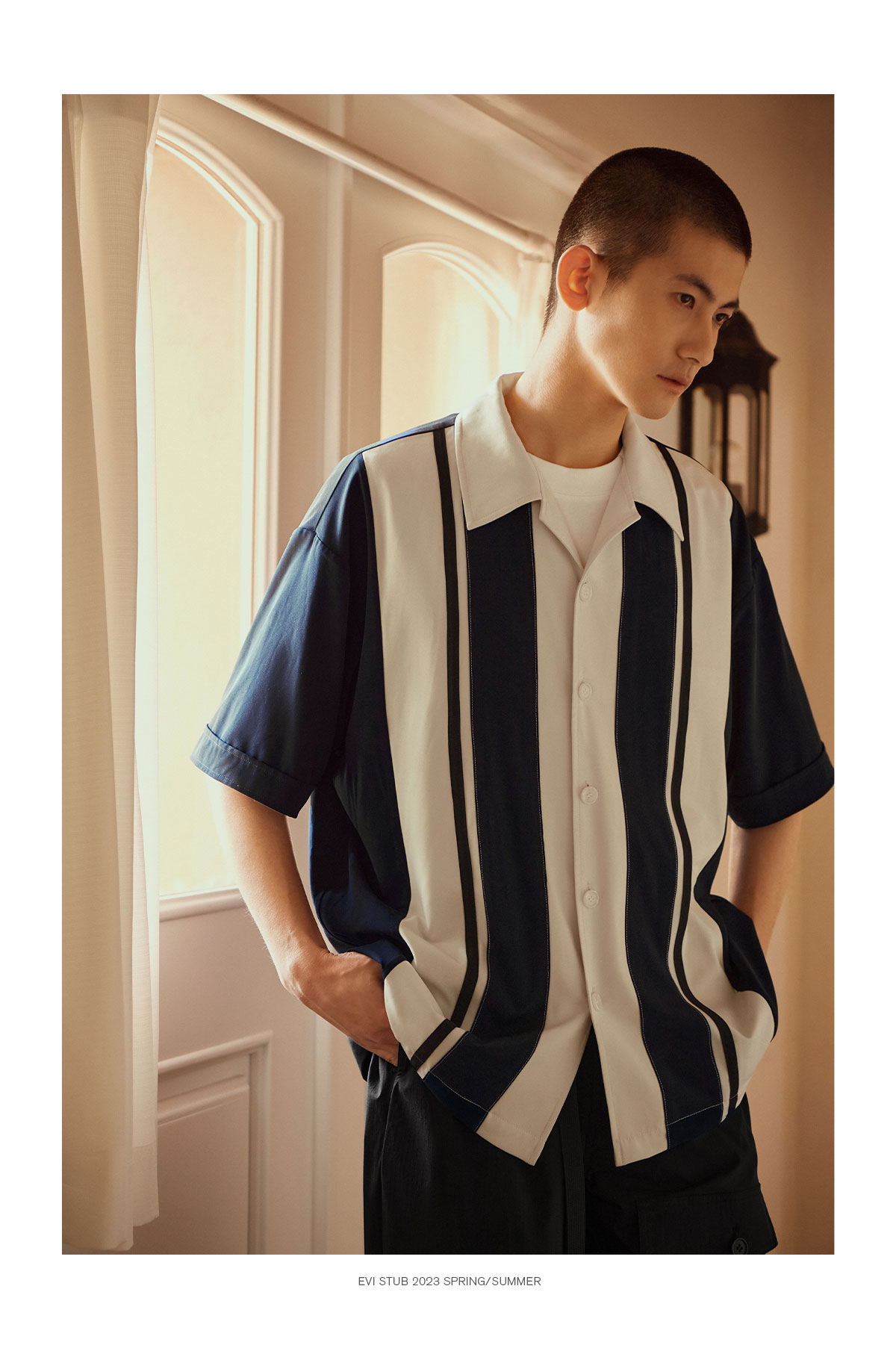 Evistub/E-3XCS06/古巴领刺绣廓形短袖衬衫