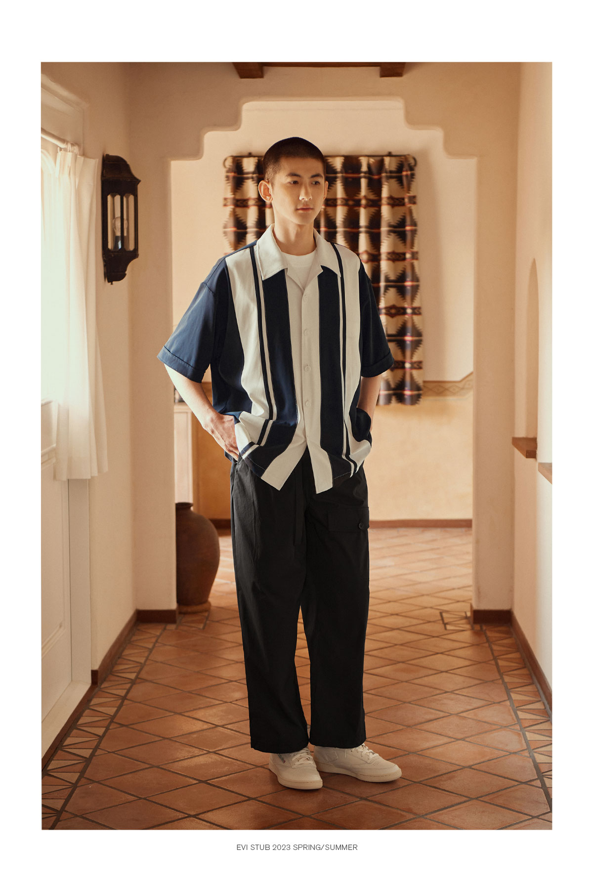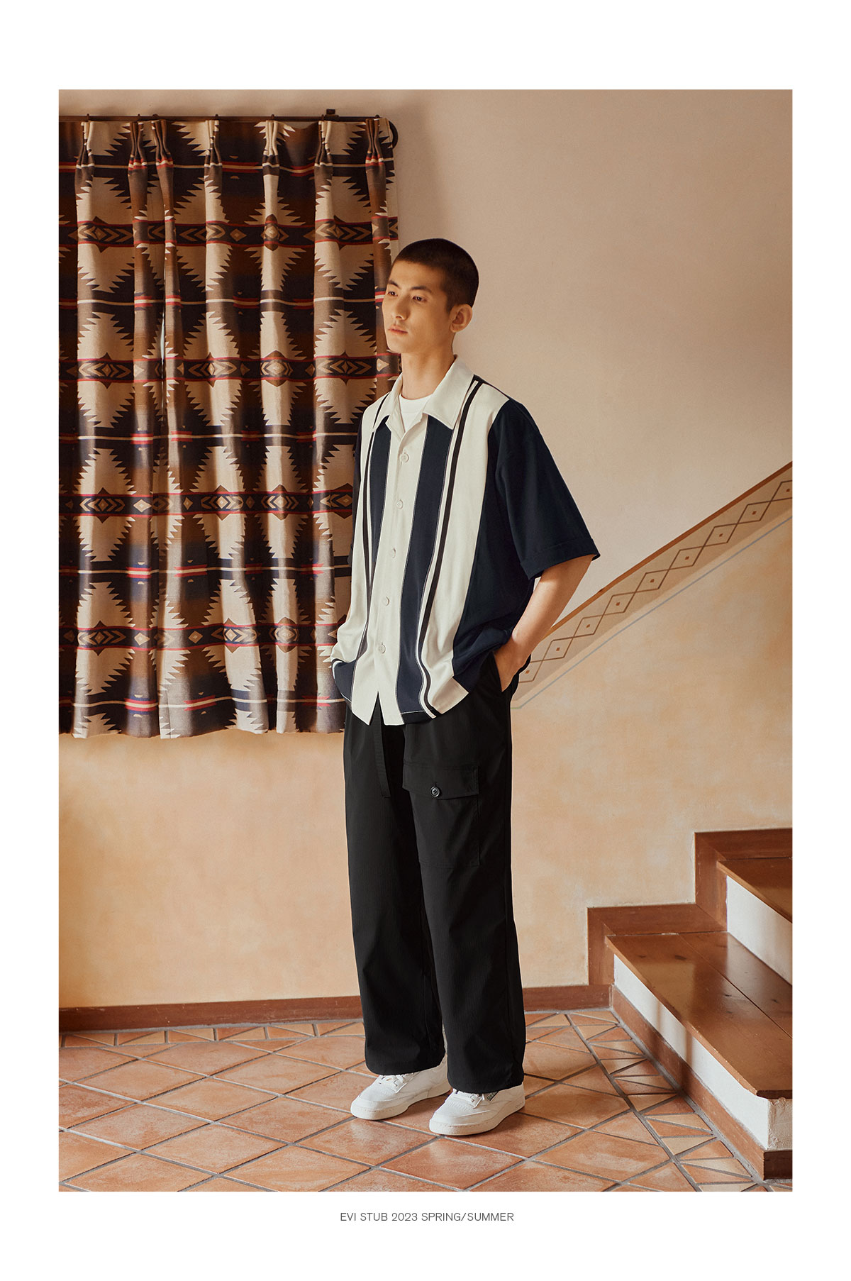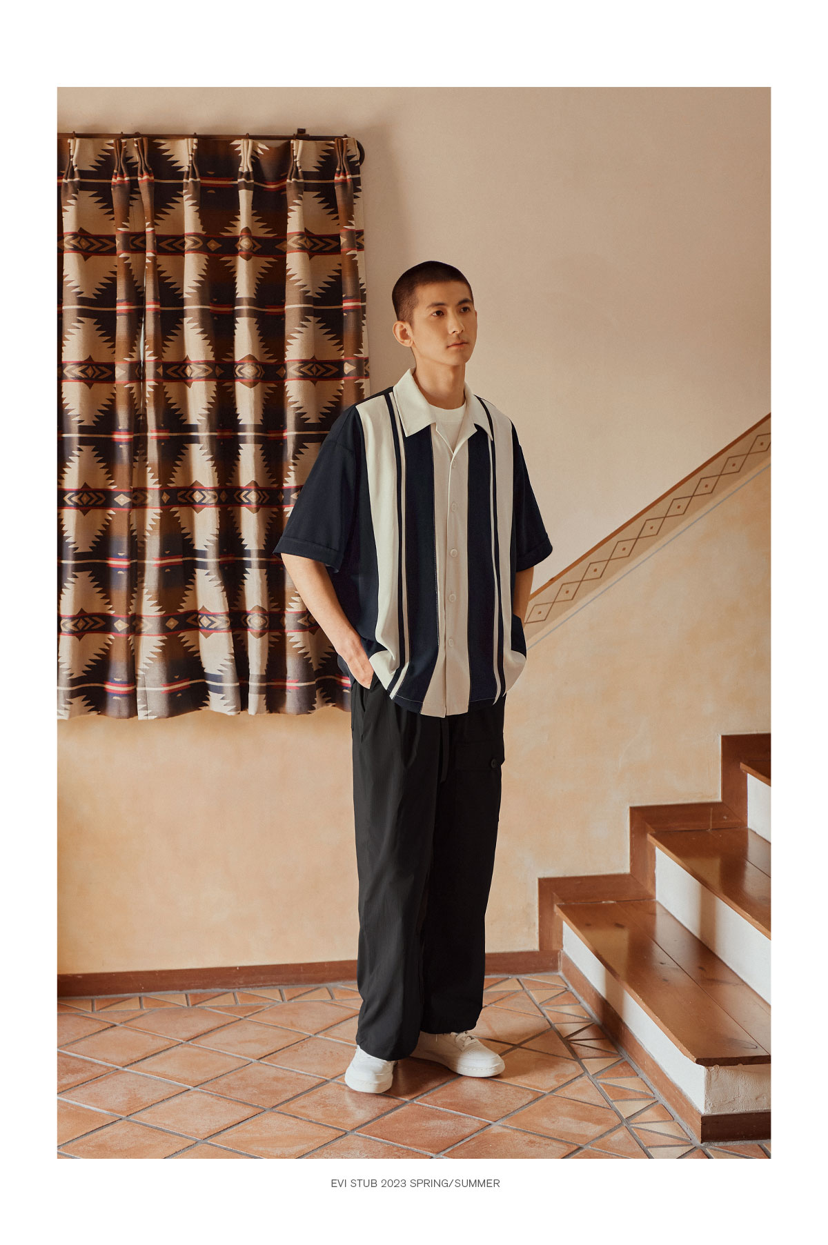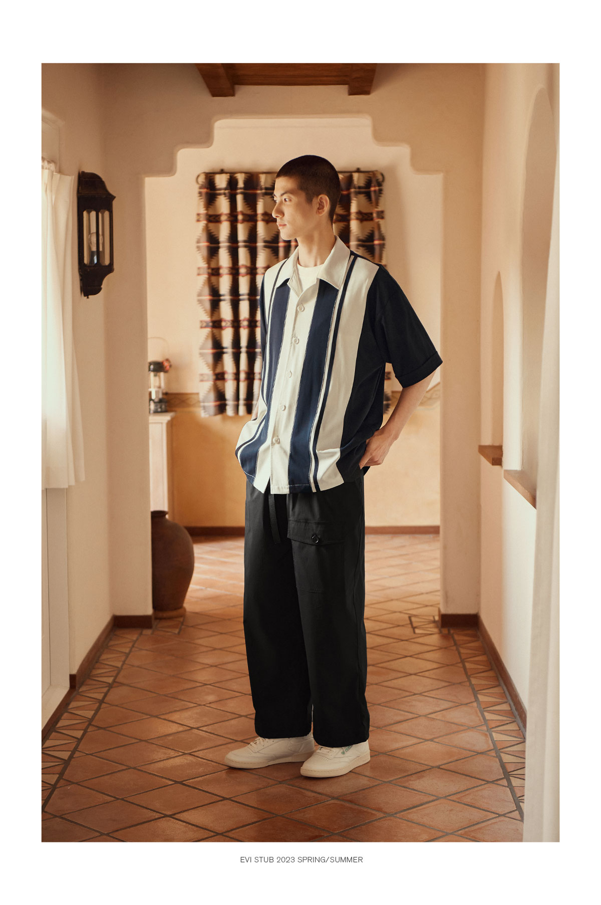 Evistub/E-3XCS06/古巴领刺绣廓形短袖衬衫