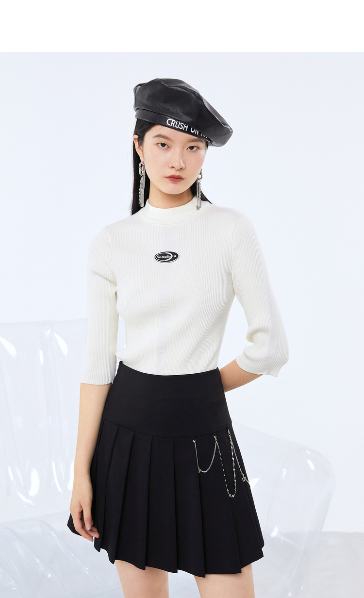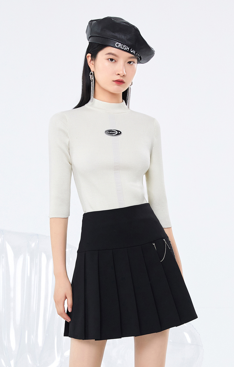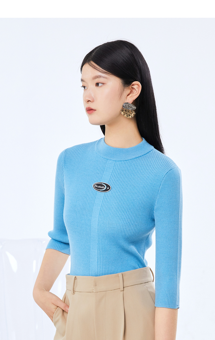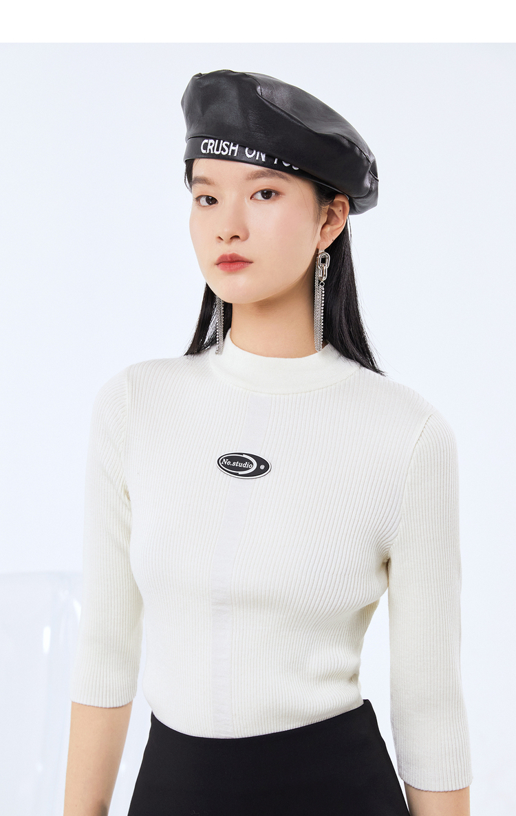 NEELLY纳俪商场同款半高领针织衫女气质套头七分袖毛衣修身内搭N22074A04418