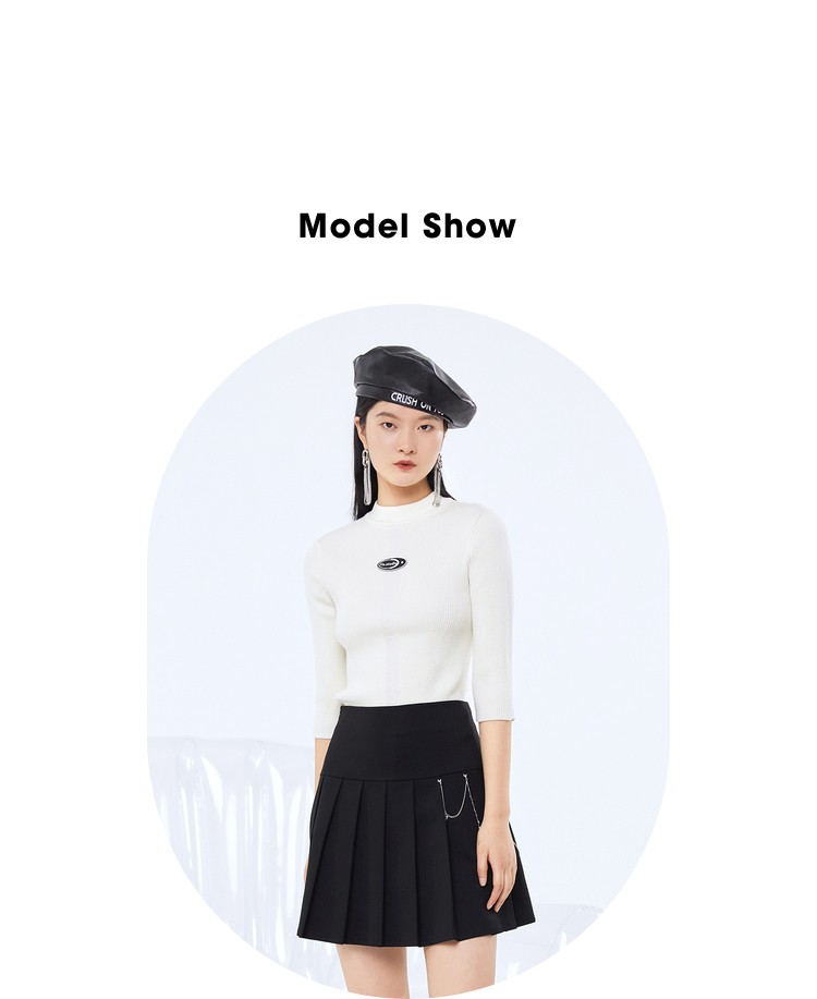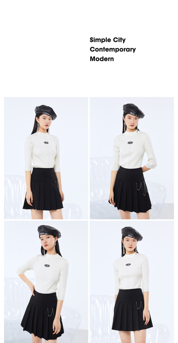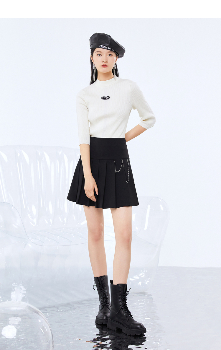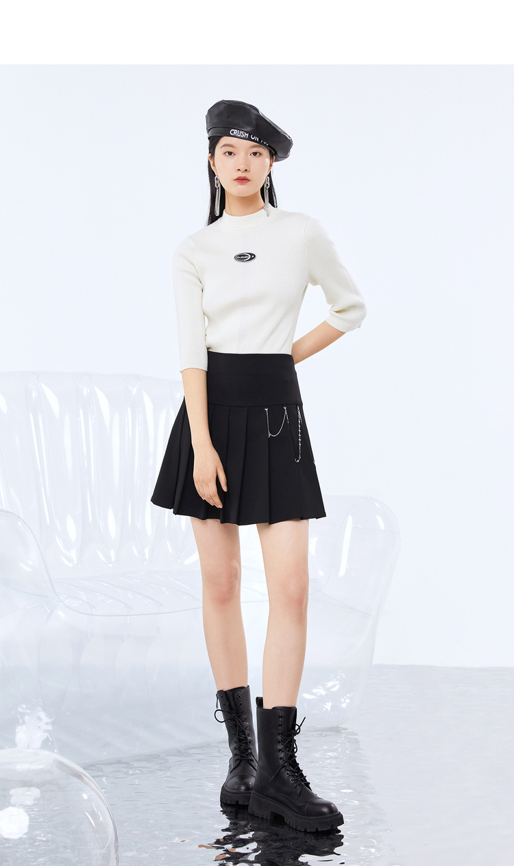 NEELLY纳俪商场同款半高领针织衫女气质套头七分袖毛衣修身内搭N22074A04418