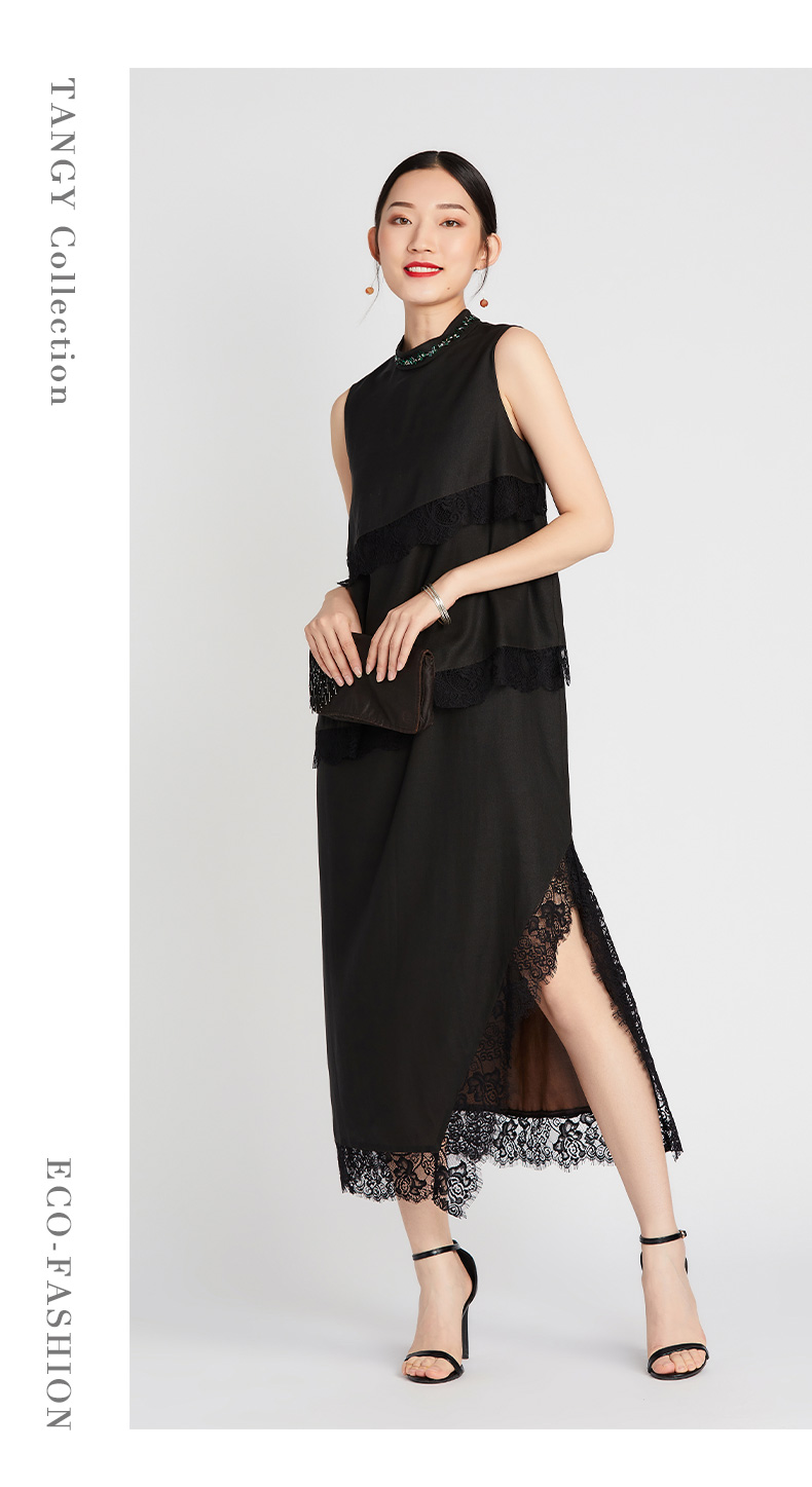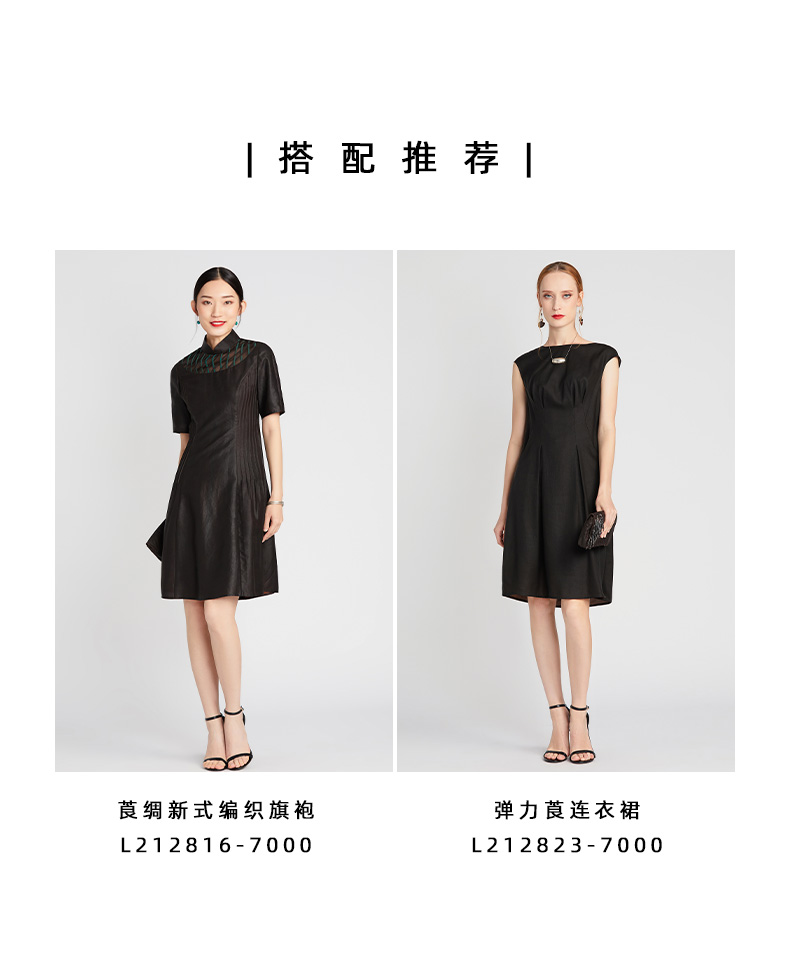 TANGY Collection/天意精品2021年夏季新品真丝莨绸钉珠连衣裙