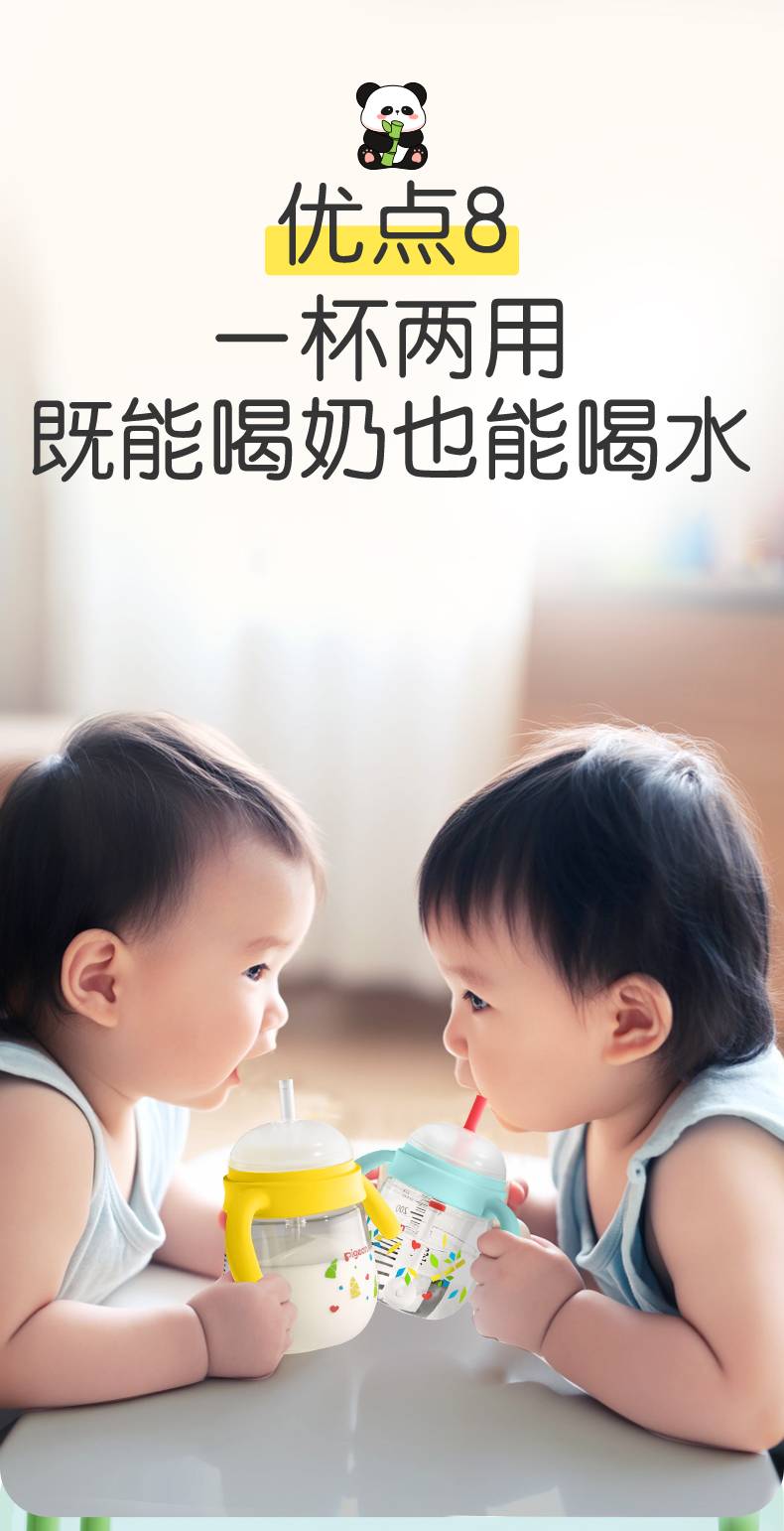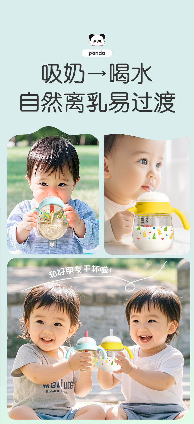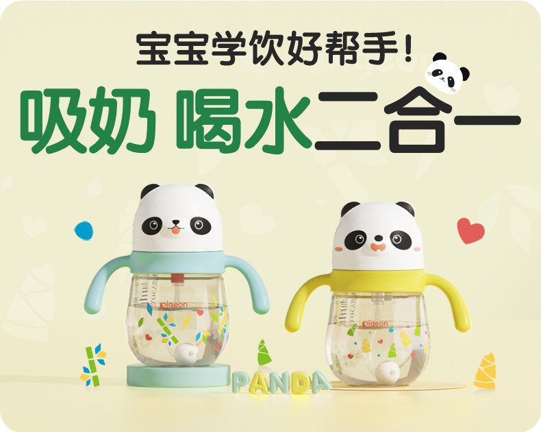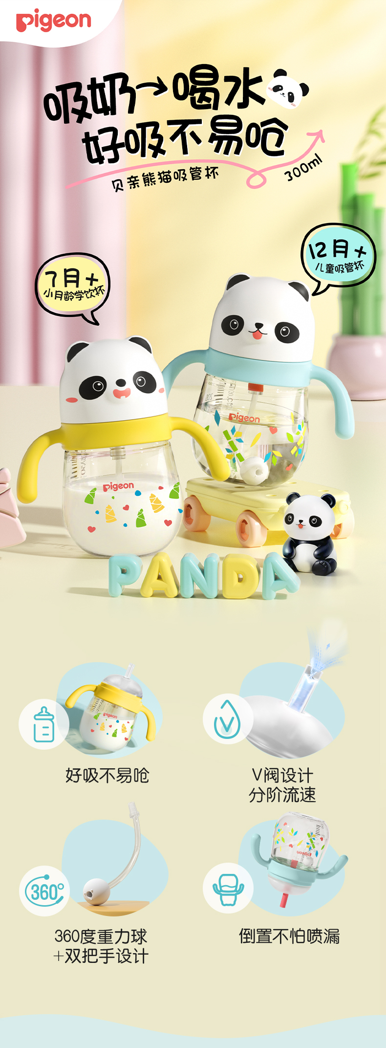 【官方自营-分销】新品上市!贝亲熊猫学饮杯婴儿宝宝防呛喝奶喝水杯儿童吸管杯奶瓶饮水杯PPSU水杯防漏喷25年新款