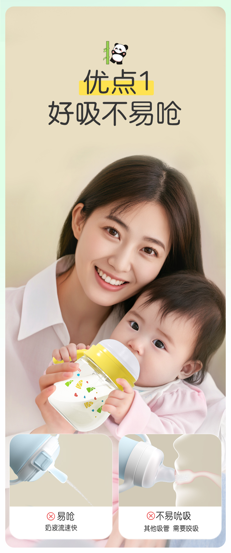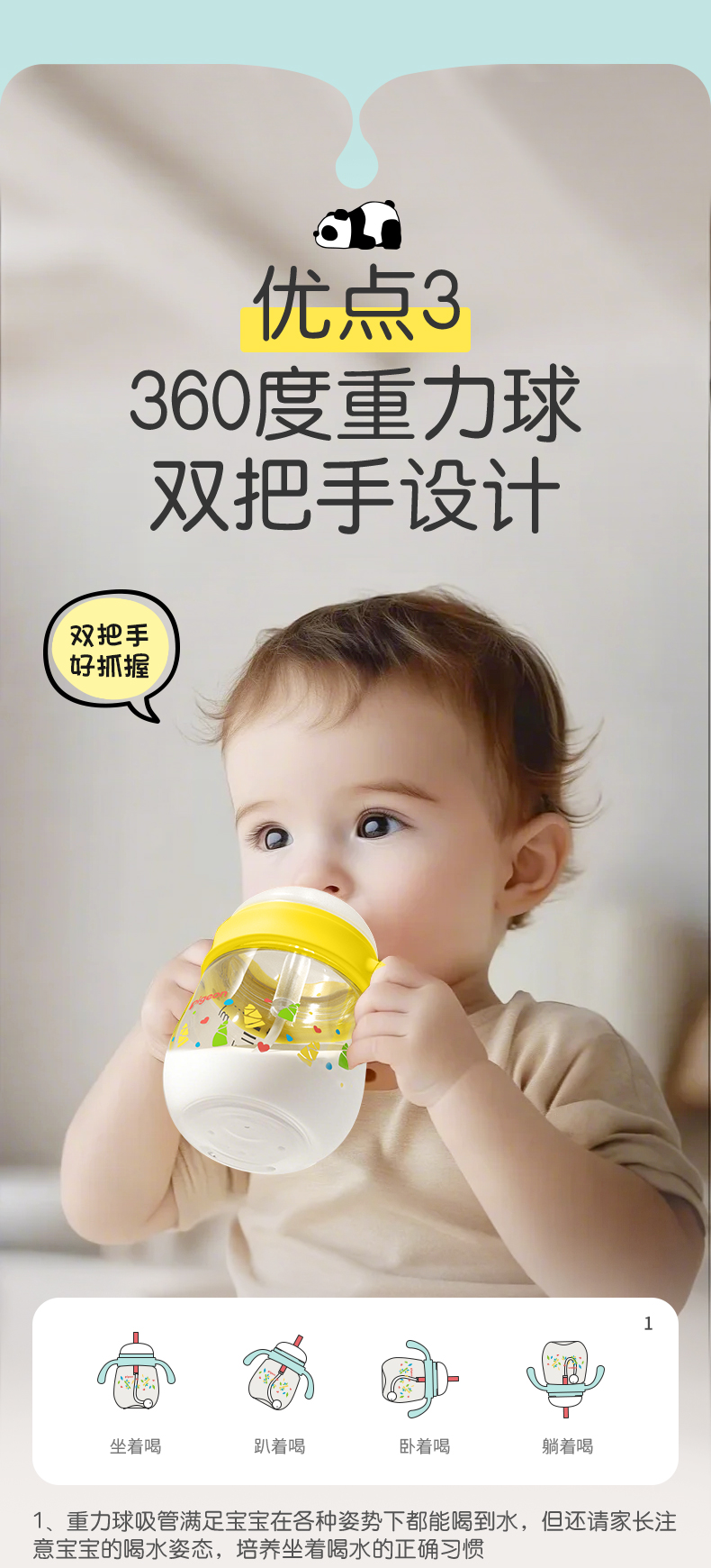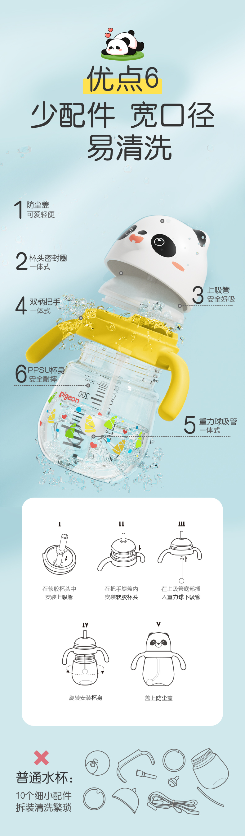 【官方自营-分销】新品上市!贝亲熊猫学饮杯婴儿宝宝防呛喝奶喝水杯儿童吸管杯奶瓶饮水杯PPSU水杯防漏喷25年新款