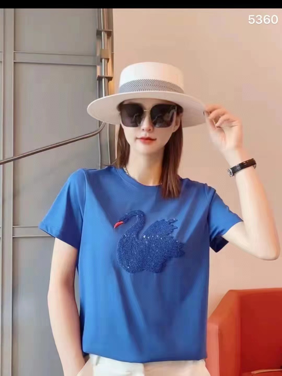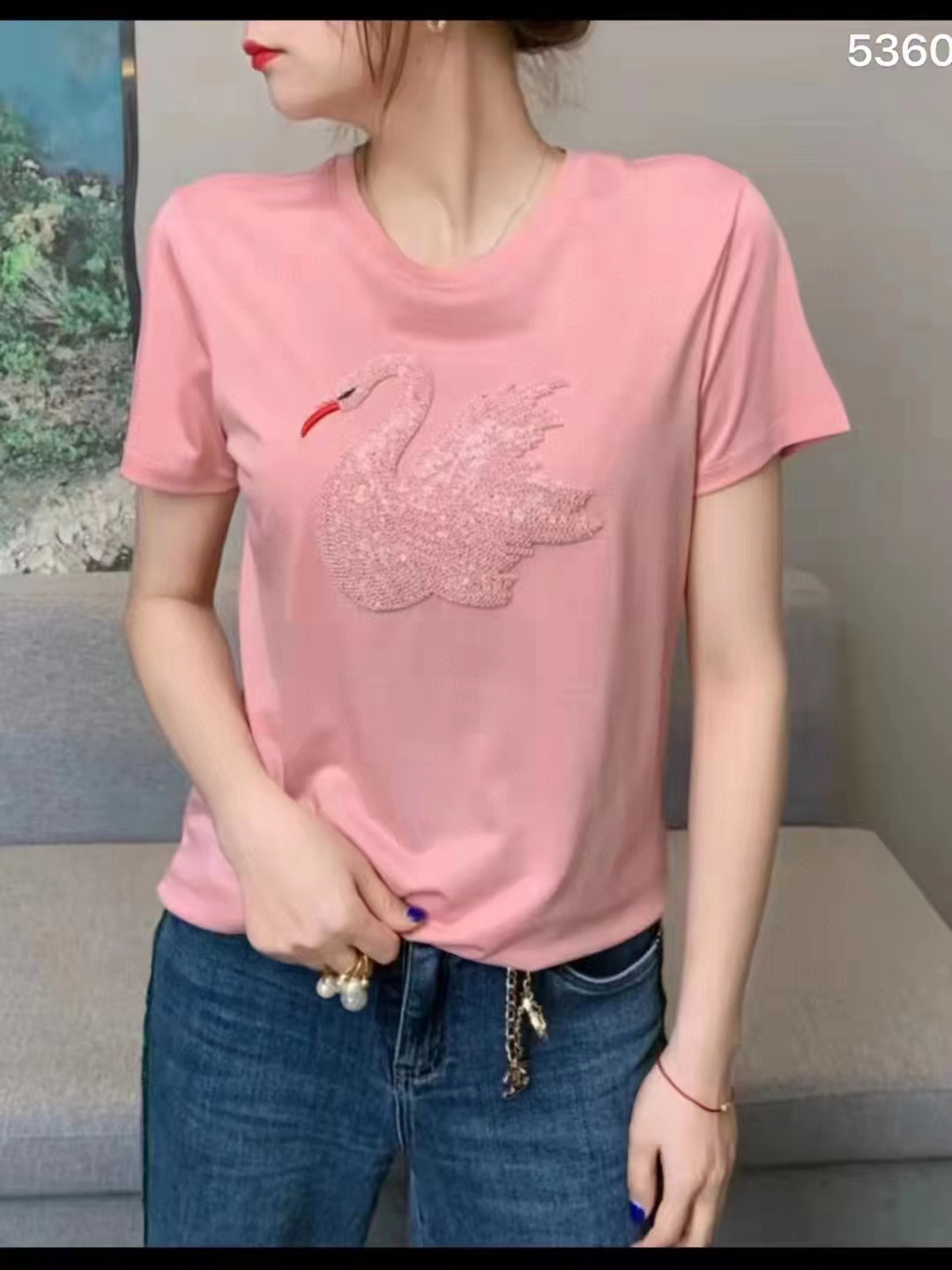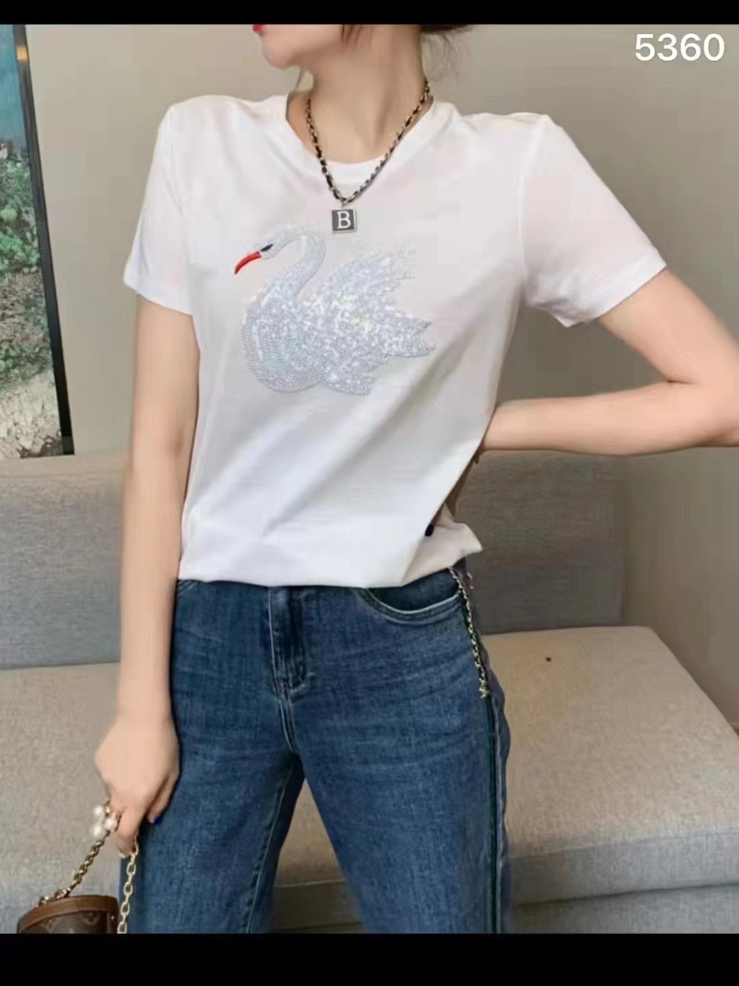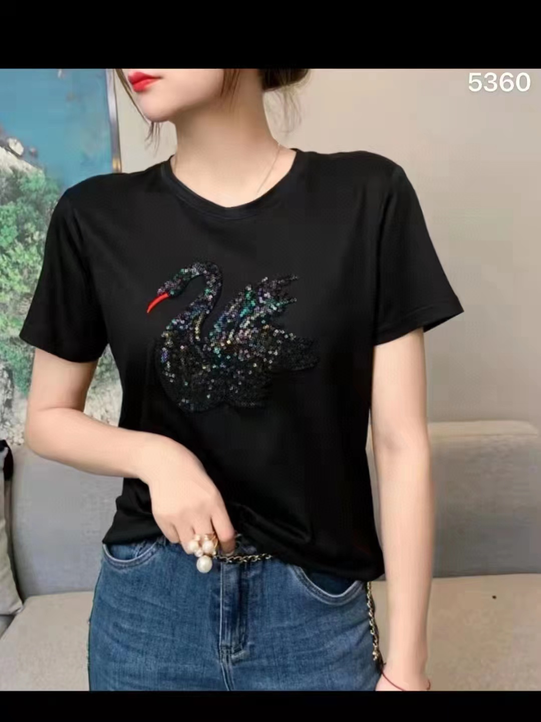 5360# 圆领T恤 工艺款闪片刺绣天鹅配微弹丝光棉,高定品质! 尺码: M-L码