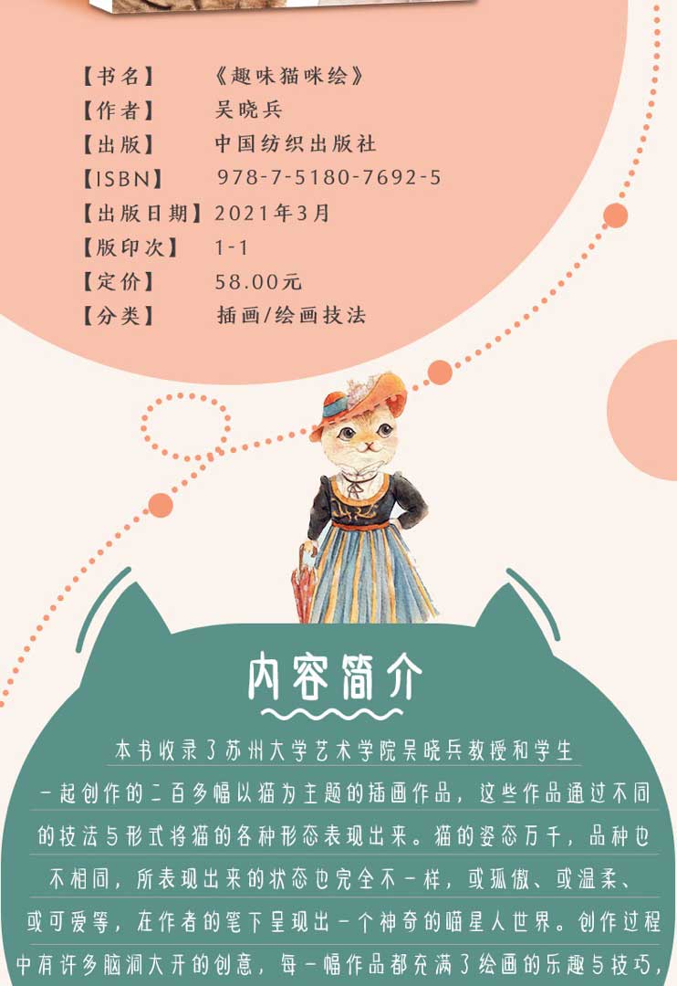 正版 趣味猫咪绘 吴晓兵 著 中国纺织出版社 9787518076925 手绘技法 插画设计 猫咪手绘 画猫的插画技法书 插画设计者的参考书