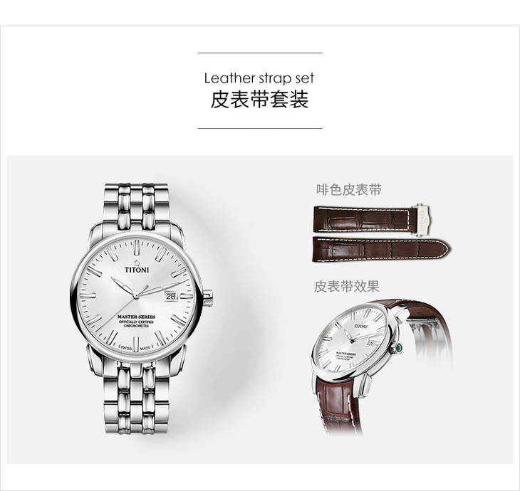 Titoni瑞士梅花手表大师系列天文台自动机械男表83188-S-575