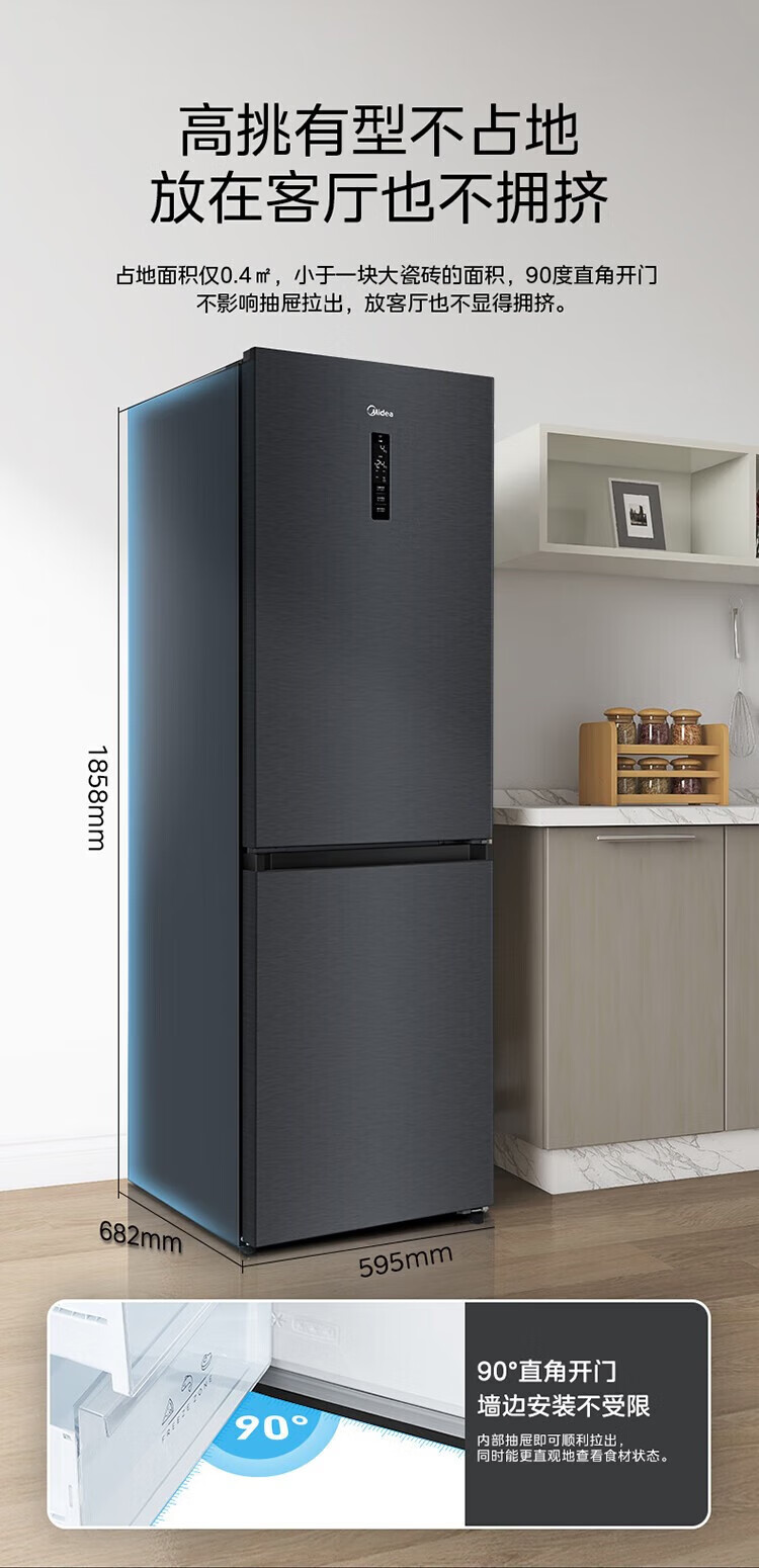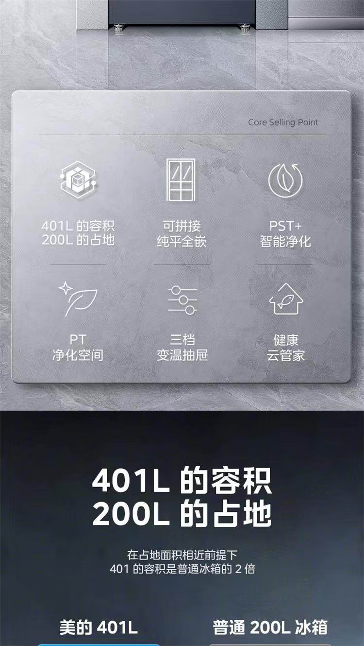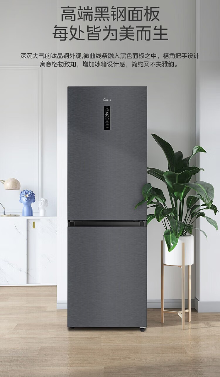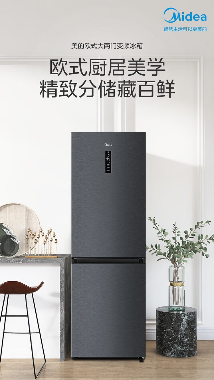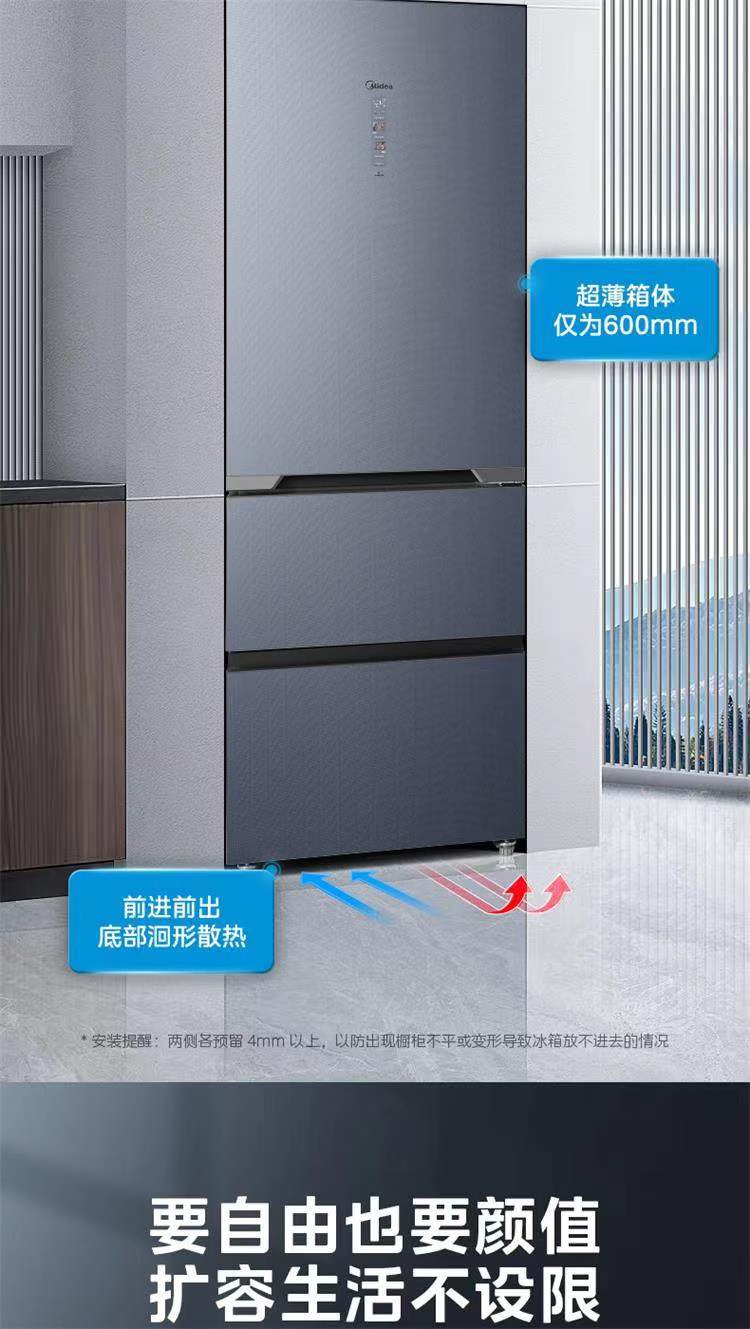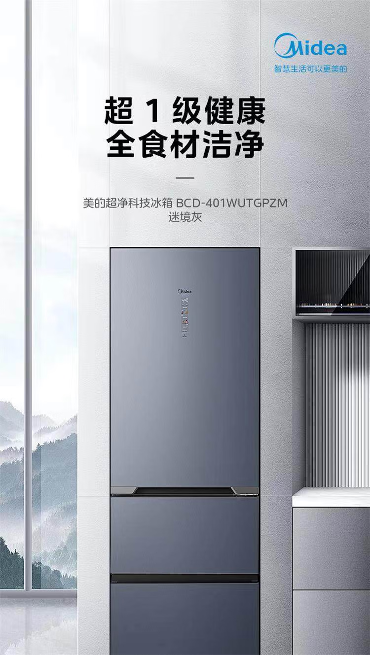 美的 BCD-401WUTGPZM 小型左开门右开门可调双门两门三门节能风冷无霜超薄嵌入式电冰箱 【60cm零嵌】迷境灰