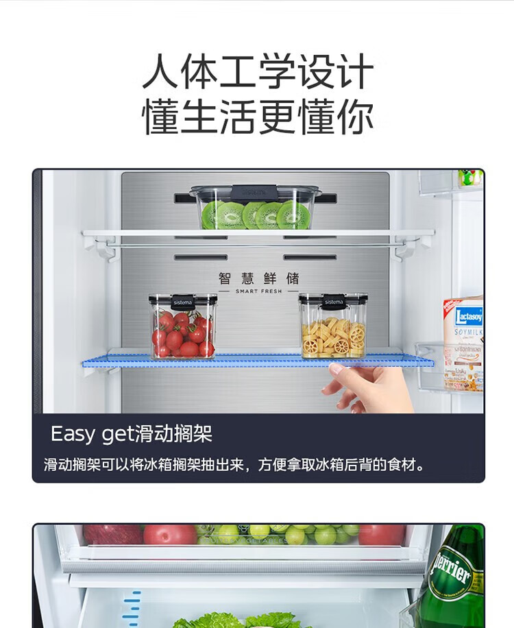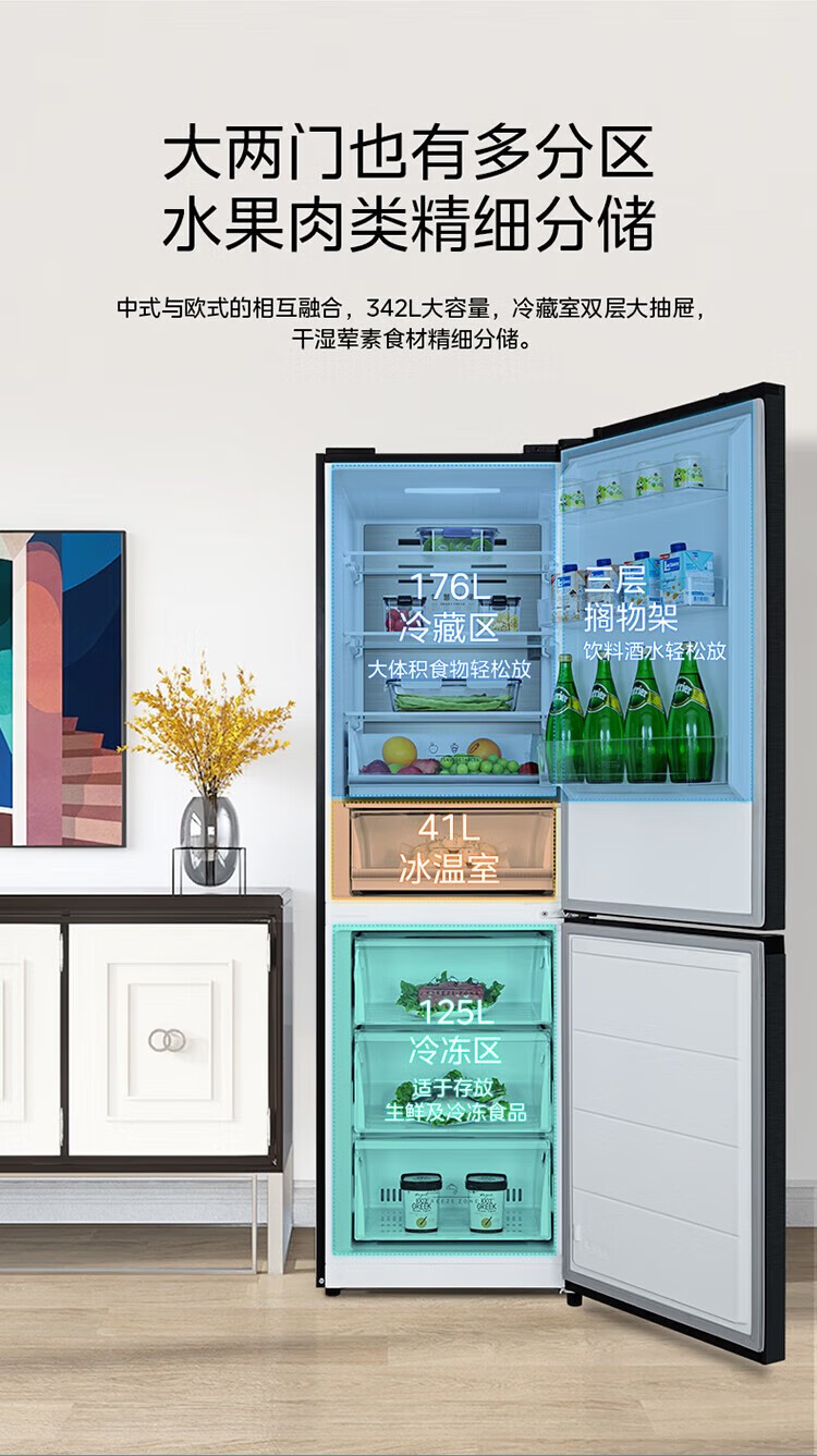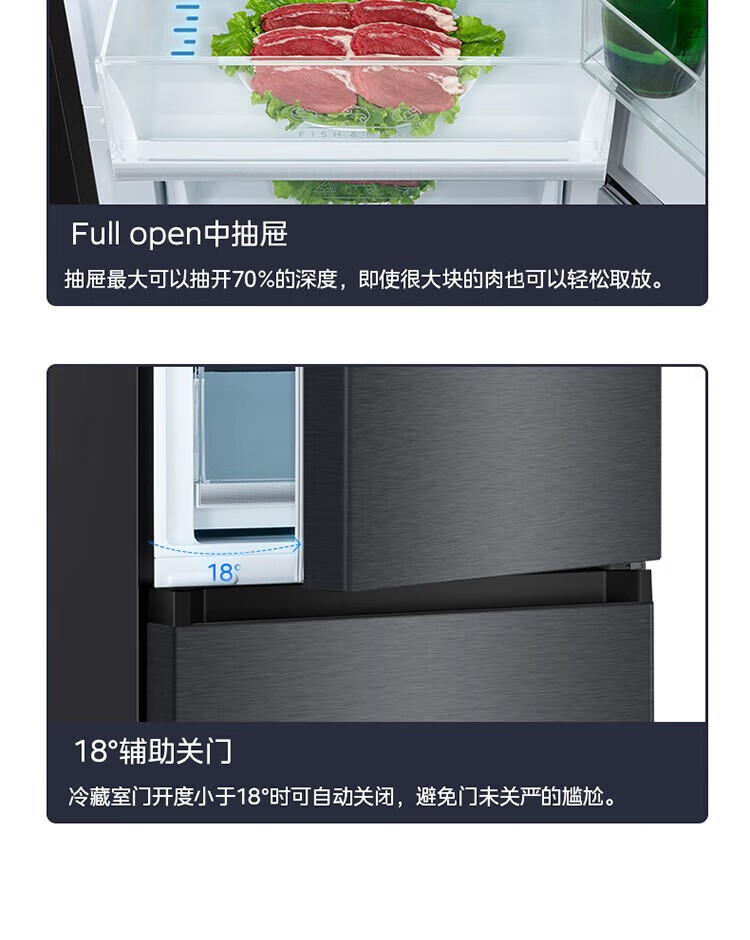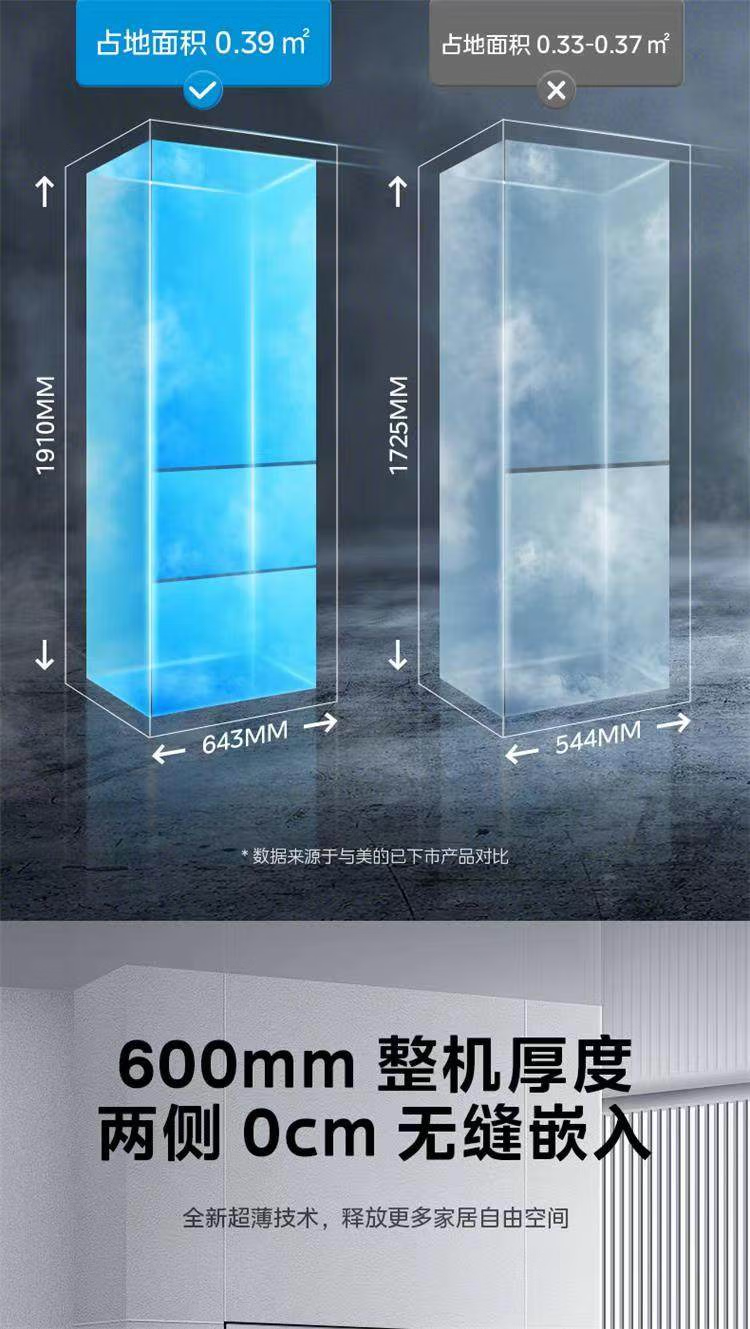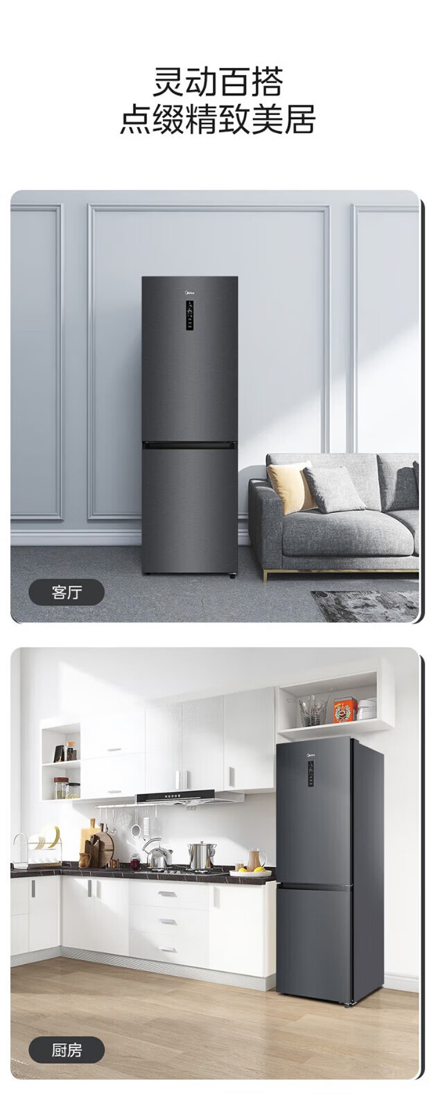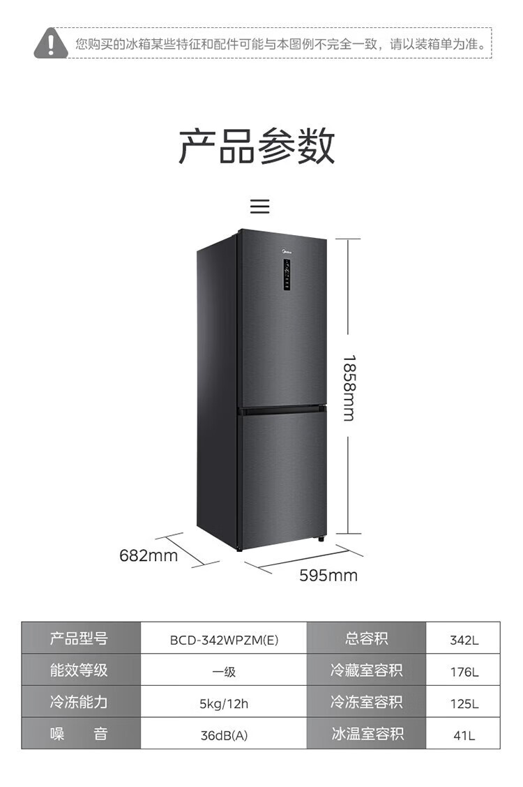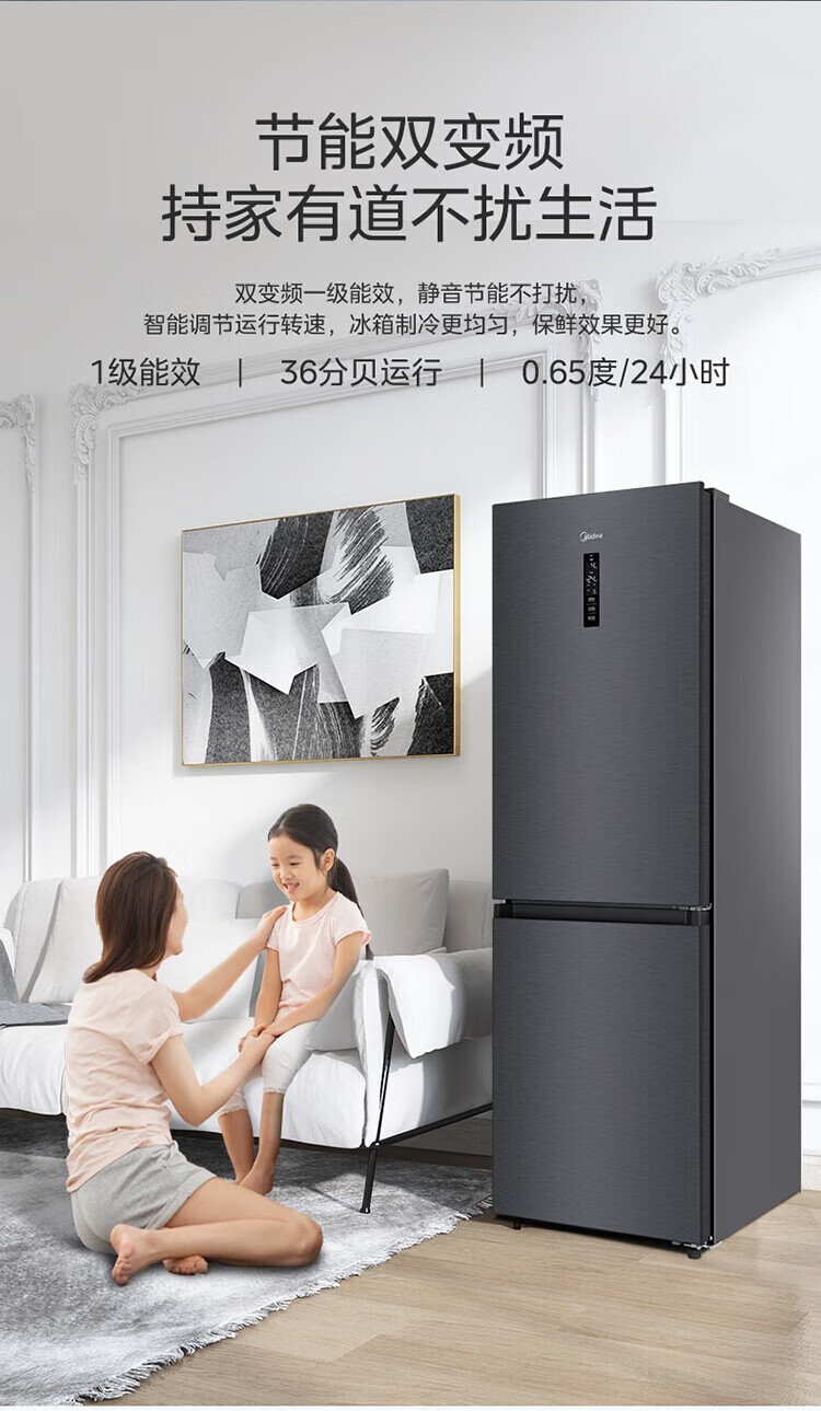 美的 BCD-401WUTGPZM 小型左开门右开门可调双门两门三门节能风冷无霜超薄嵌入式电冰箱 【60cm零嵌】迷境灰