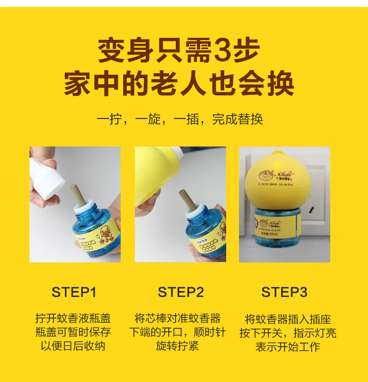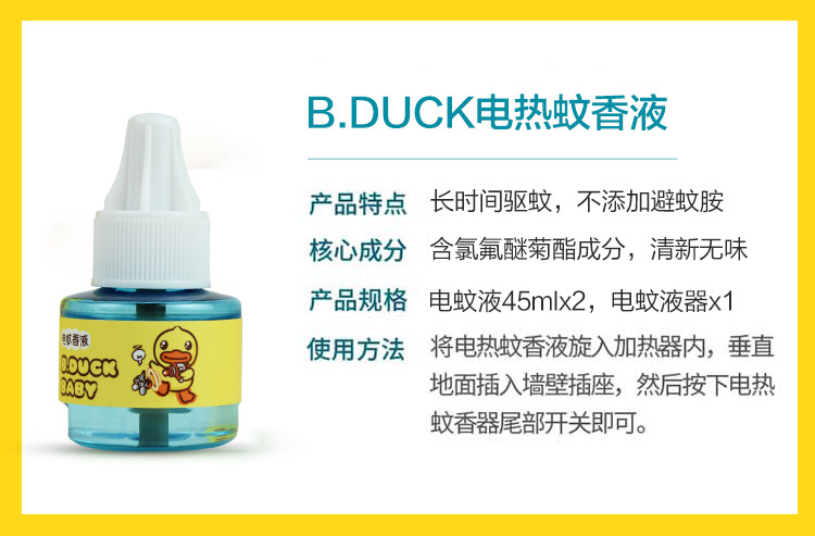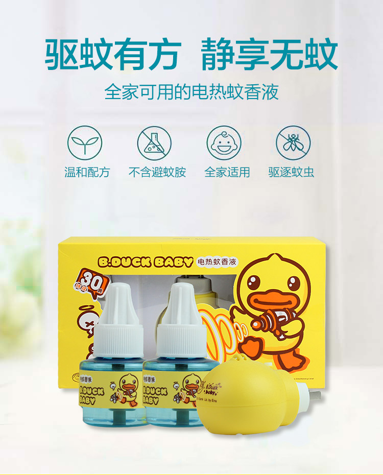 B.Duck&鳄鱼宝宝小黄鸭电热蚊香液无味婴儿孕妇宝宝驱蚊液