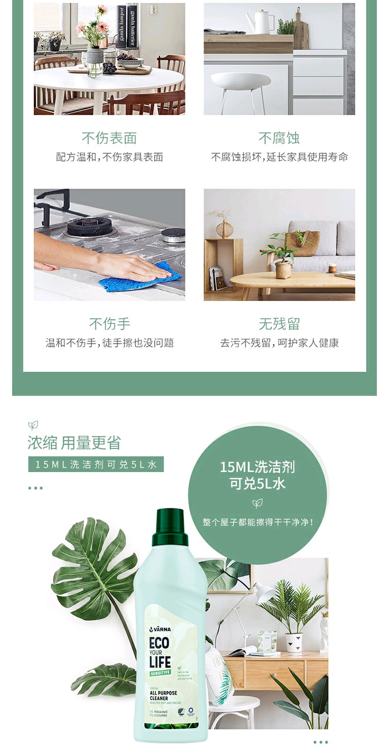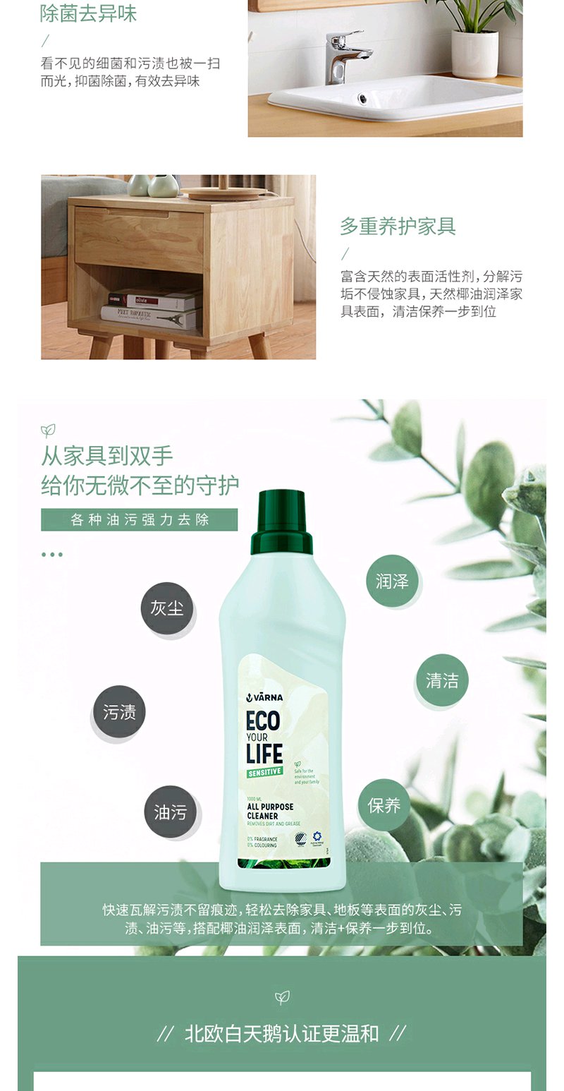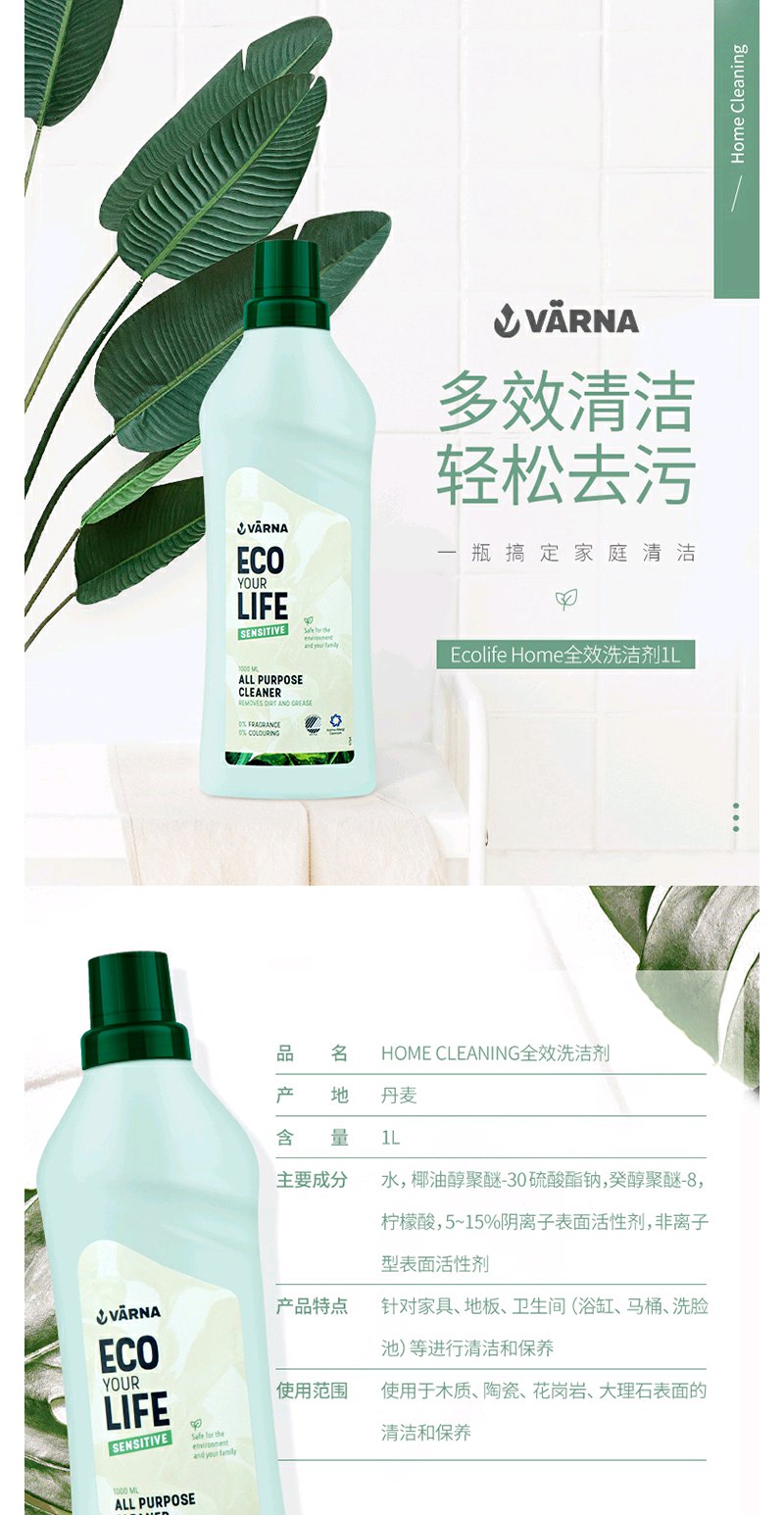 丹麦原装 VARNA/瓦娜 Ecolife home系列全效洗洁剂1000ml