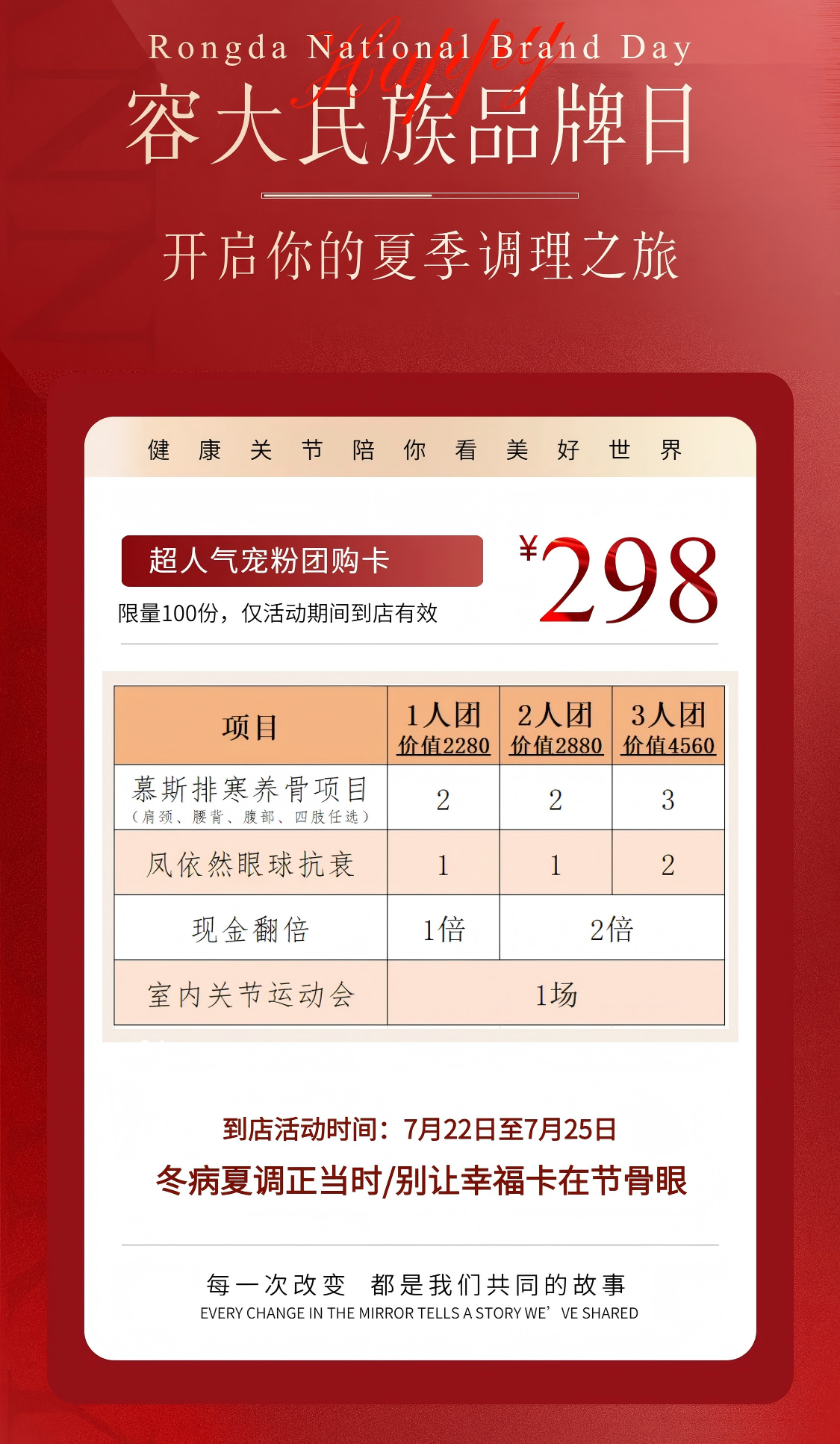 容大民族品牌日宠粉团购卡;冬病夏调正当时,科技排寒养骨护关节!健康关节,陪你看美好世界!