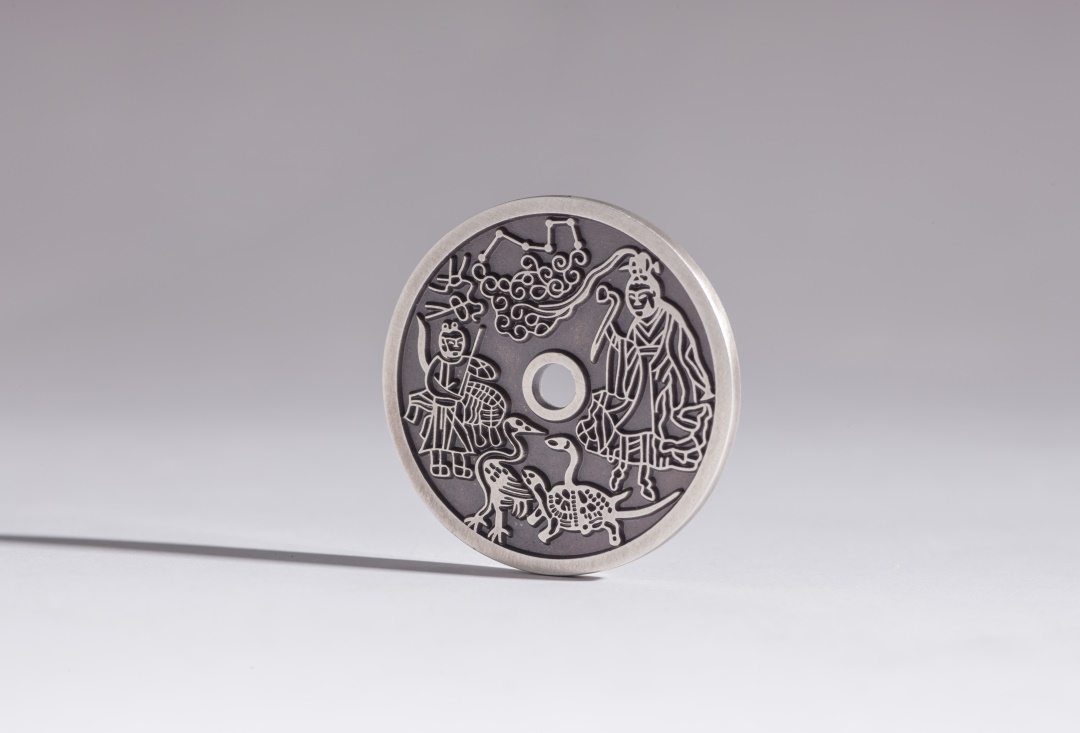 尺寸:直径约33.4毫米,厚约2.6毫米,孔径约3.8毫米,重约14.7克(手工作品有少许误差)。