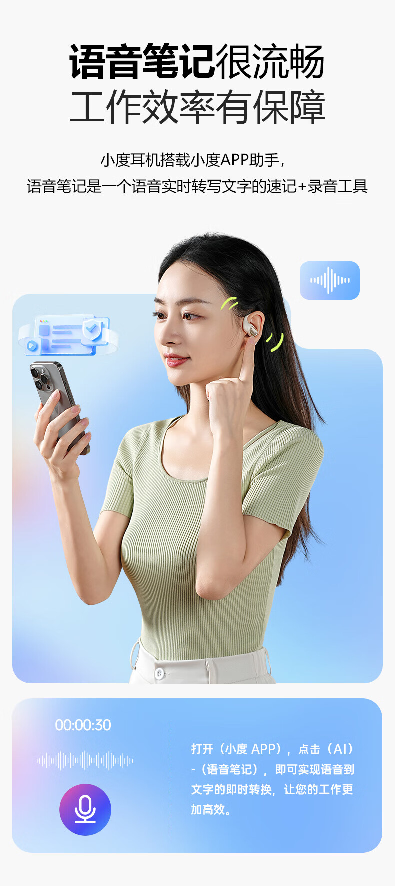 小度G108耳机耳夹式蓝牙耳机无线挂耳开放式骨传导运动AI智能通话降噪华为苹果小米通用