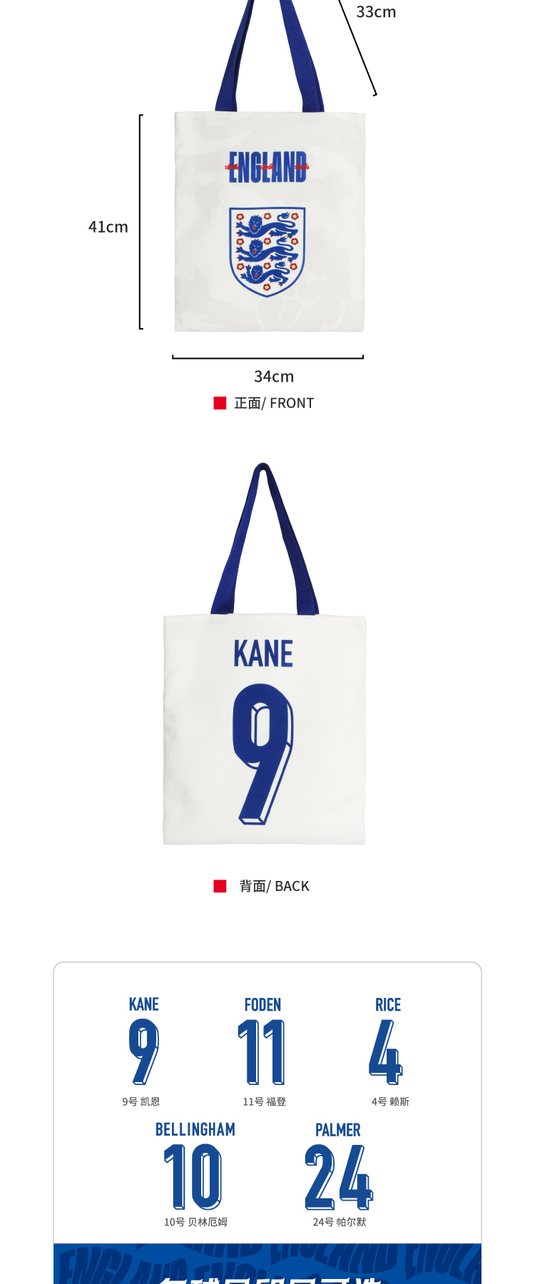 【官方正版】英格兰国家队 | 白蓝色球员印号单肩帆布包通勤包