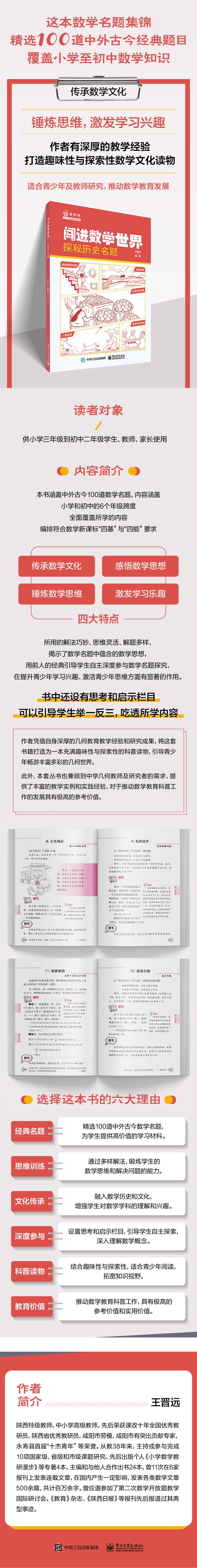 本书涵盖中外古今数学名题,符合数学新课标"四基”与"四能”要求,体现出传承数学文化、感悟数学思想、锤炼数学思维和激发学习乐趣四大特点,所用的解法巧妙、灵活且多样,揭示数学名题中蕴含的数学思想,引导学生自主深度参与数学名题探究,在提升青少年学习兴趣、激活青少年思维方面有显著的作用。