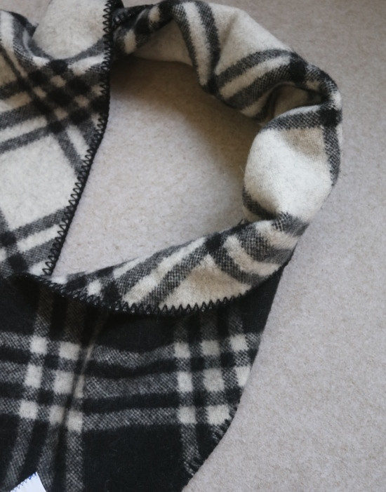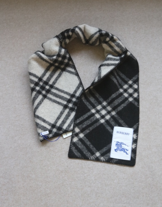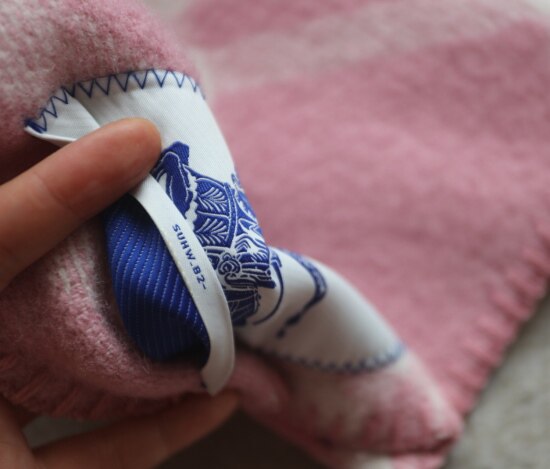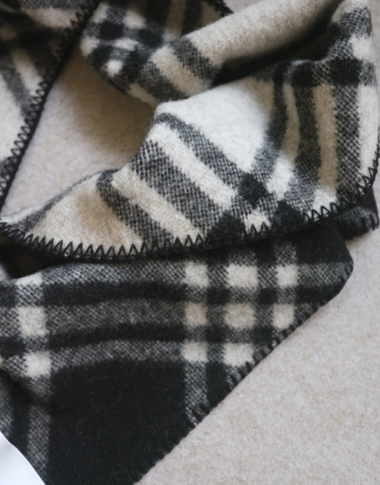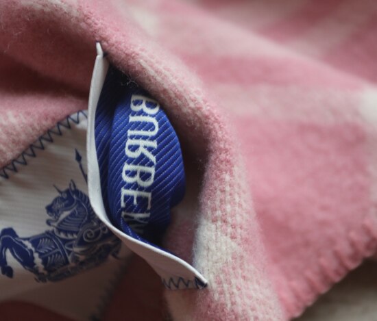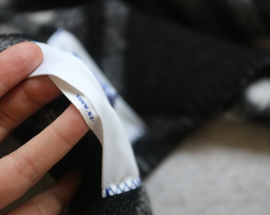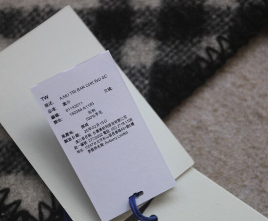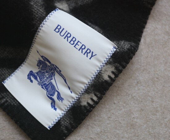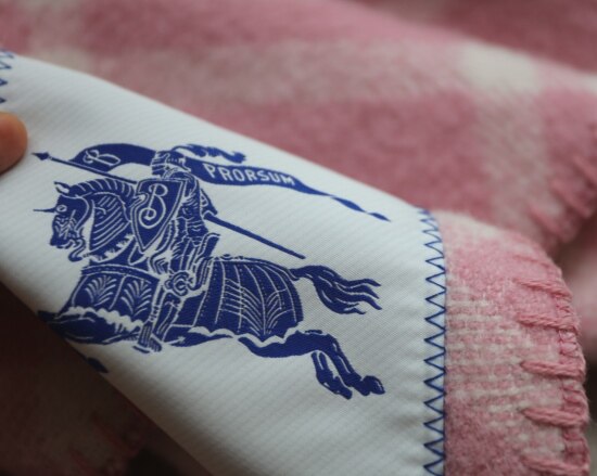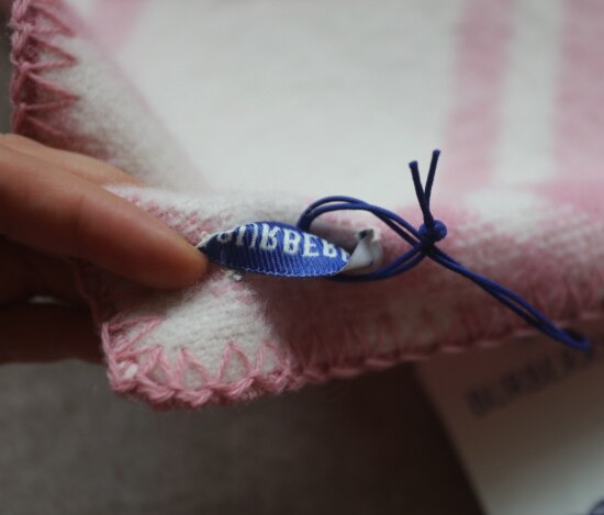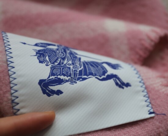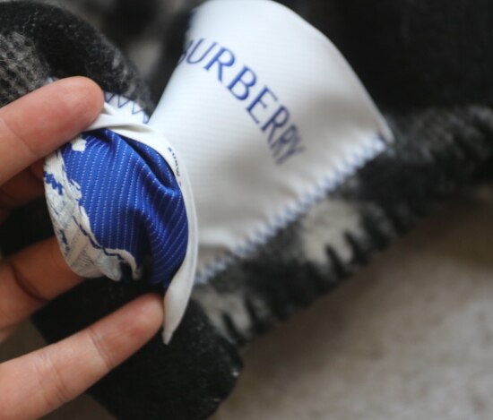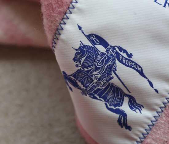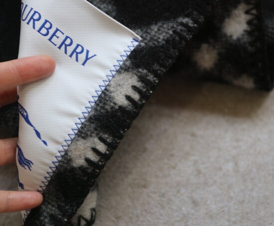 格纹元素 双面双色 白色布标是机缝的 蓝色战马也是机绣的
