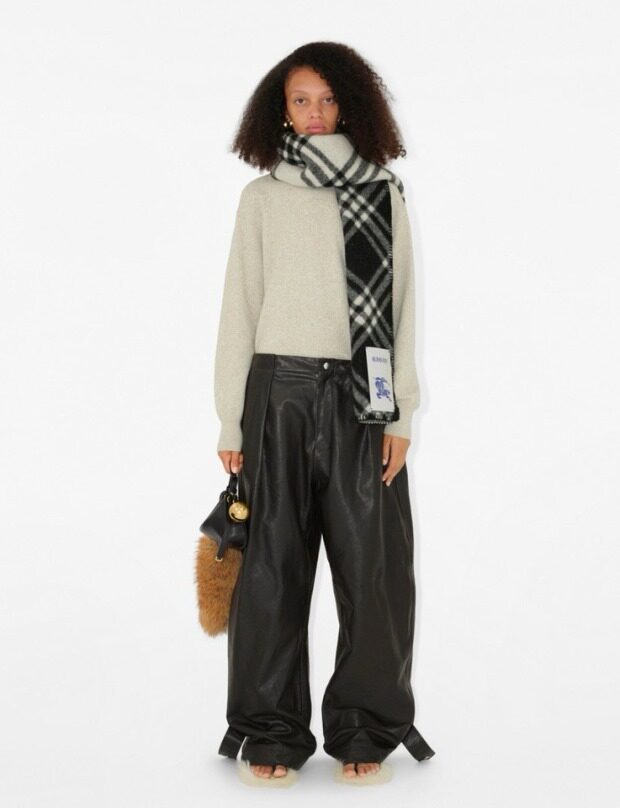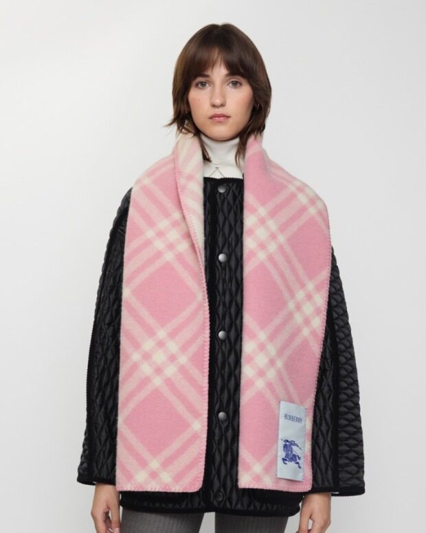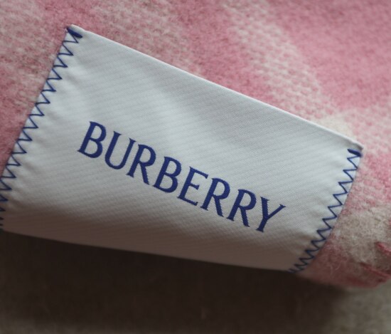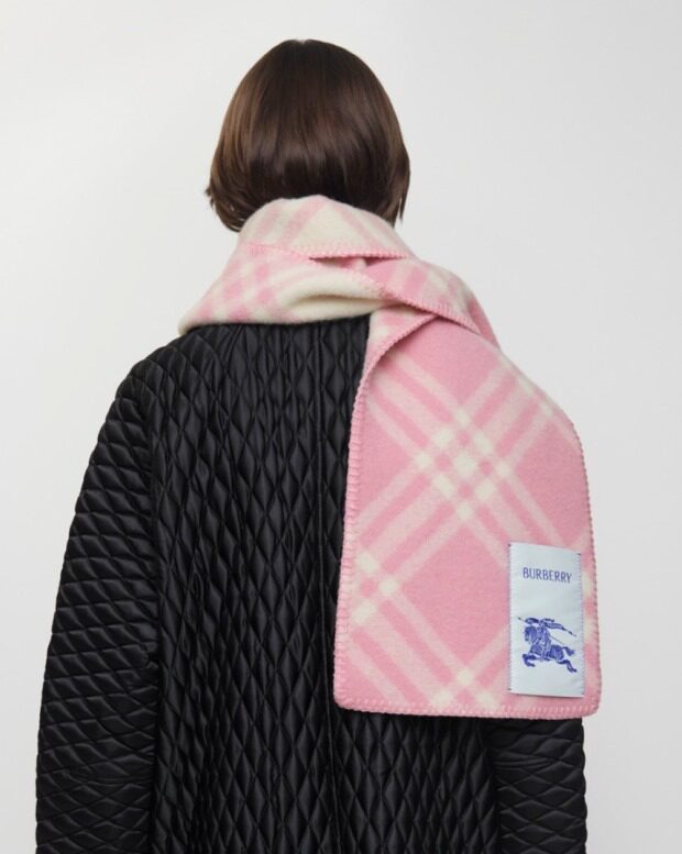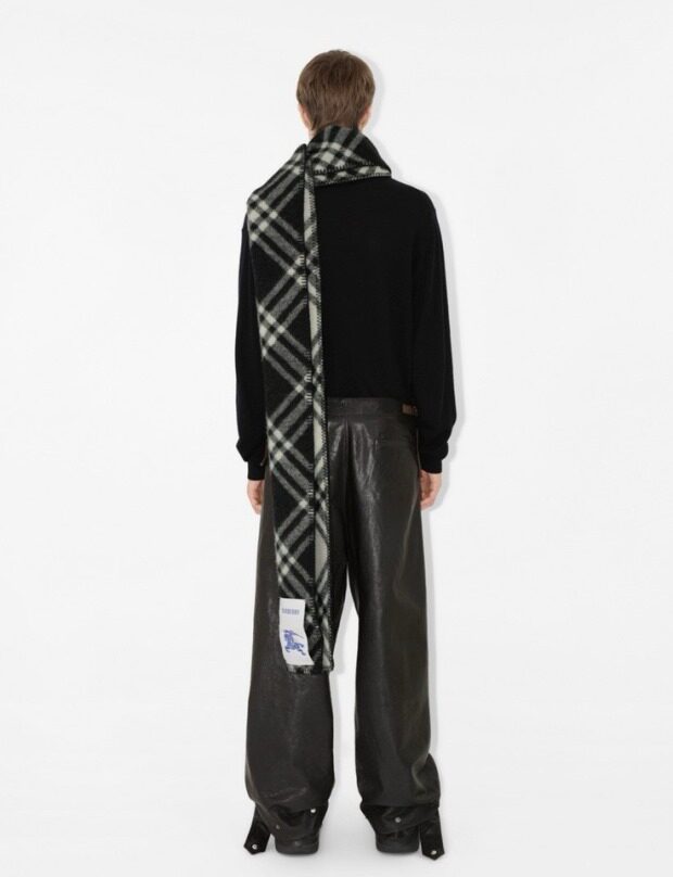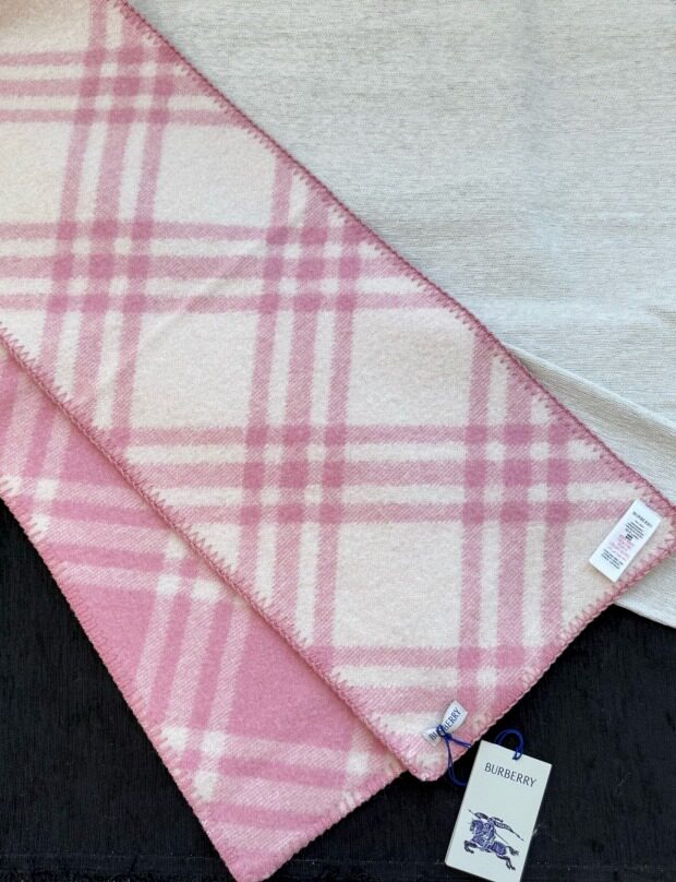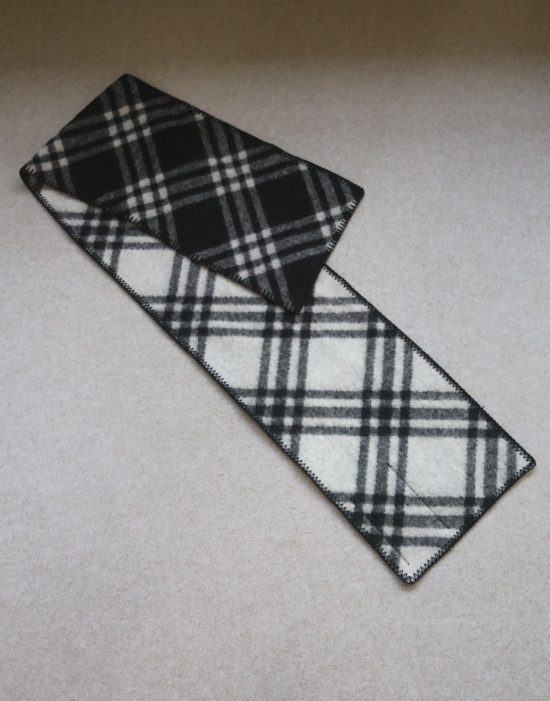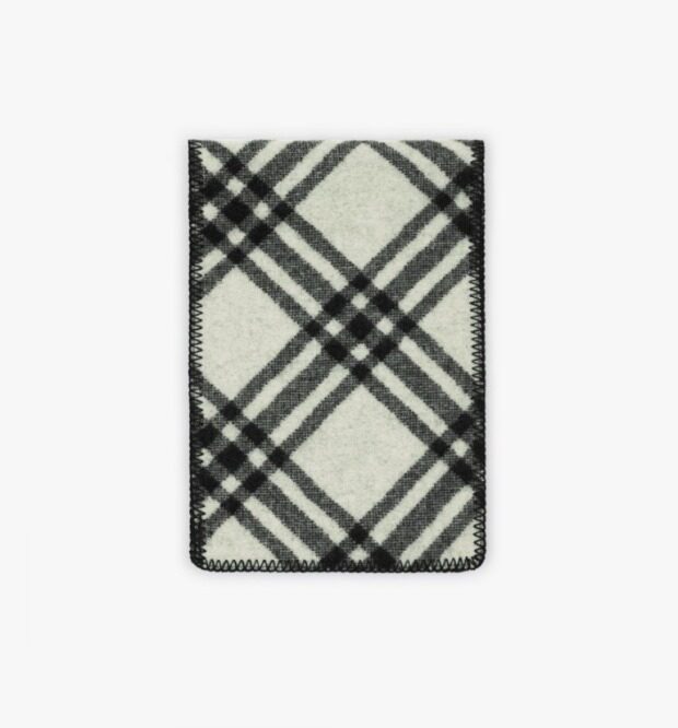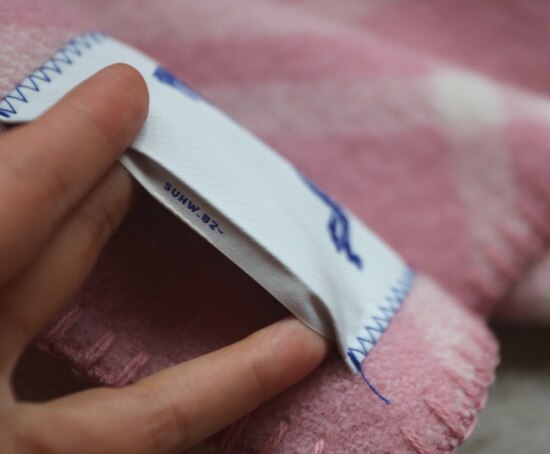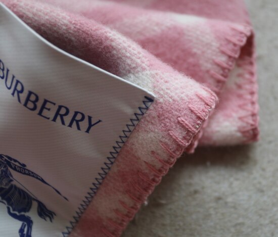 格纹元素 双面双色 白色布标是机缝的 蓝色战马也是机绣的