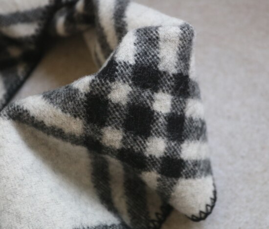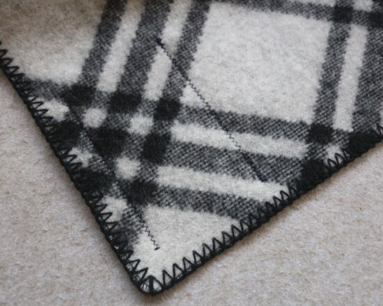 周圈 毯边锁缝 里圈是机缝 外面粗线是纯手缝 有弧度 不是织机的那种直角