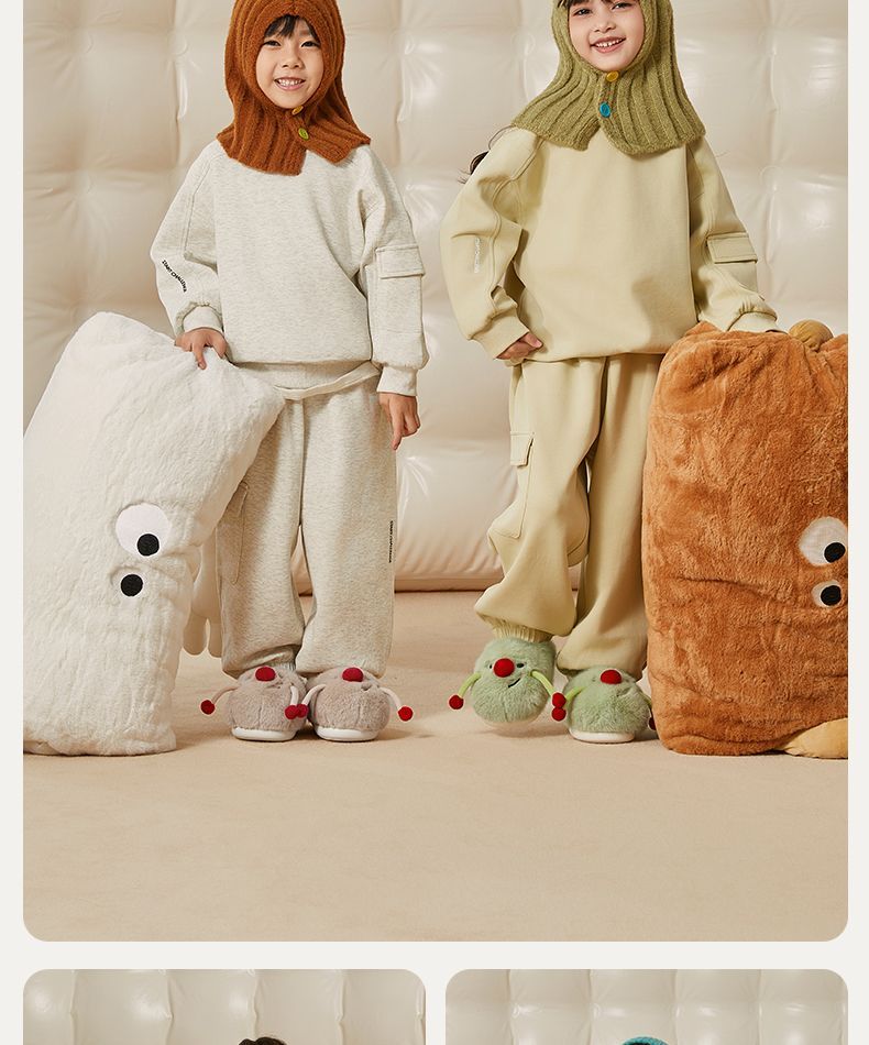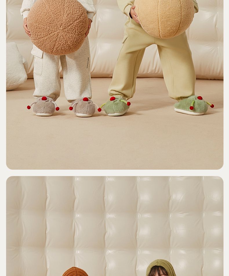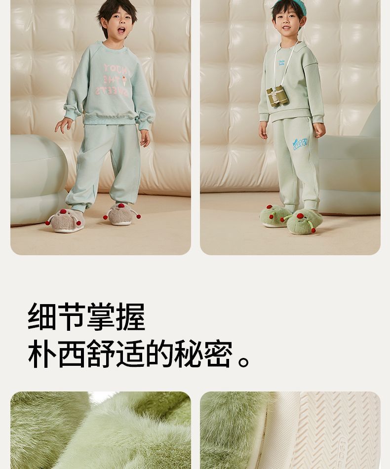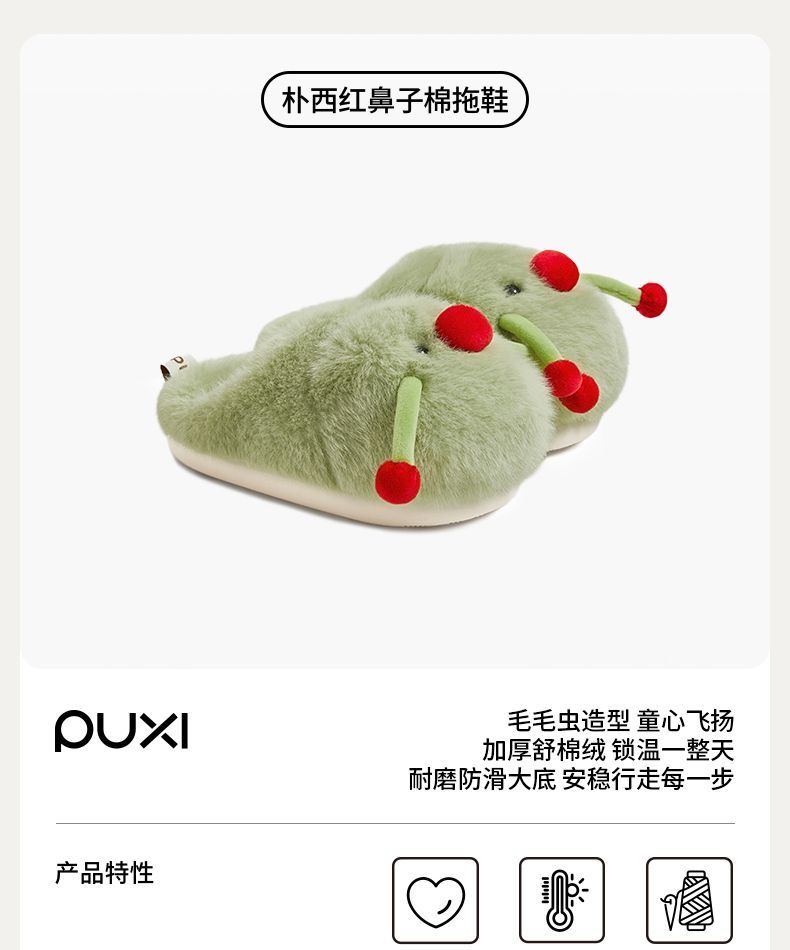 朴西红鼻子秋冬保暖儿童拖鞋女童居家室内防滑毛绒加厚棉拖鞋男童