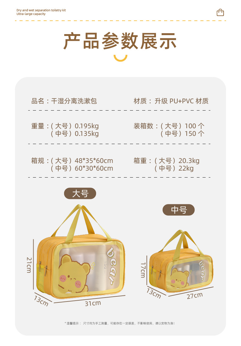 【醒粉福利14.9元/个】洗漱包双层防水干湿分离洗漱包 旅行化妆收纳大容量可视化妆包