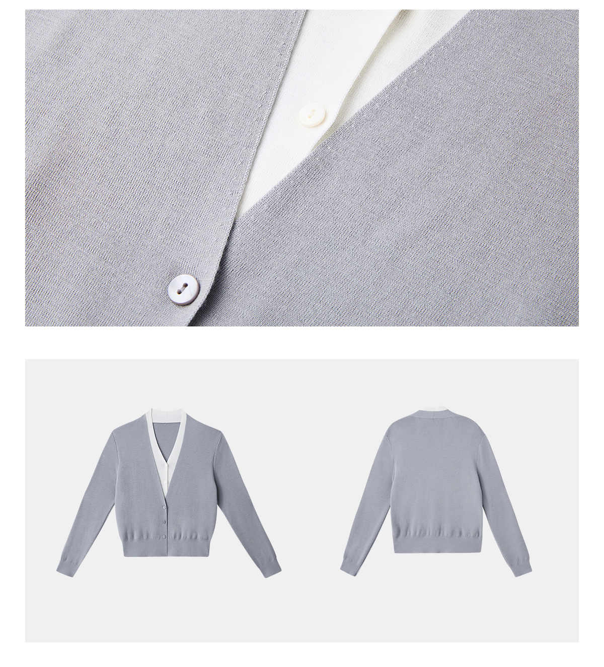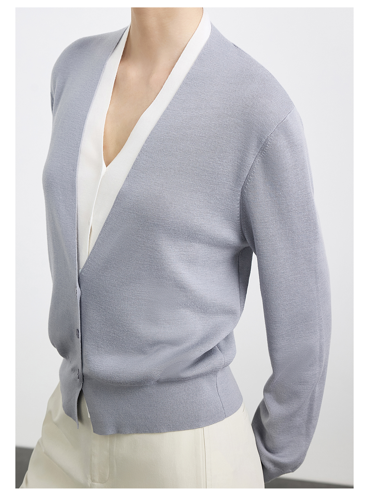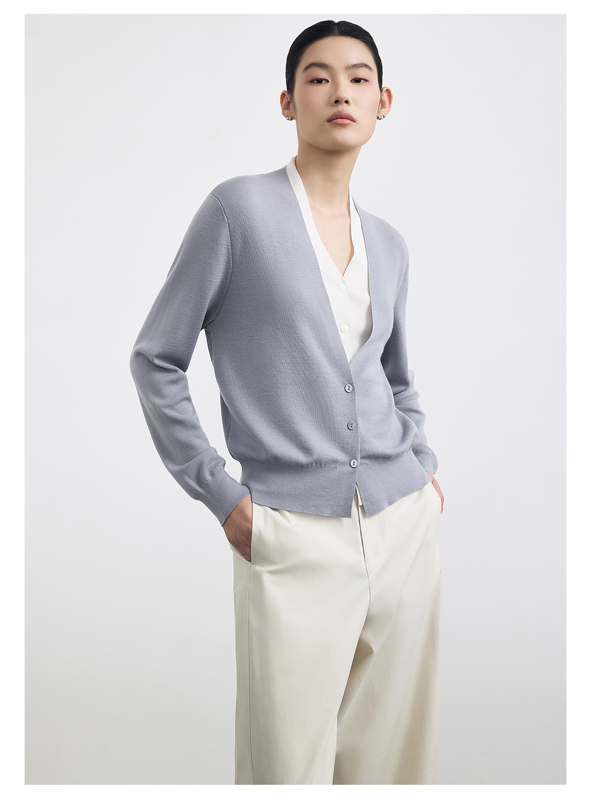 PURE TOUCH浅灰色V领长袖针织开衫