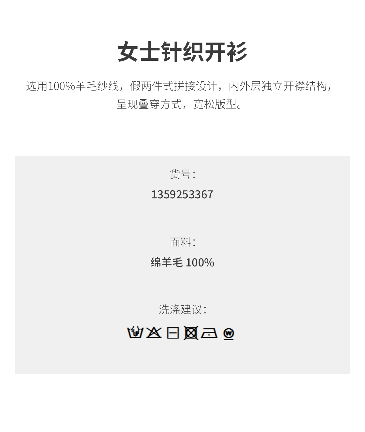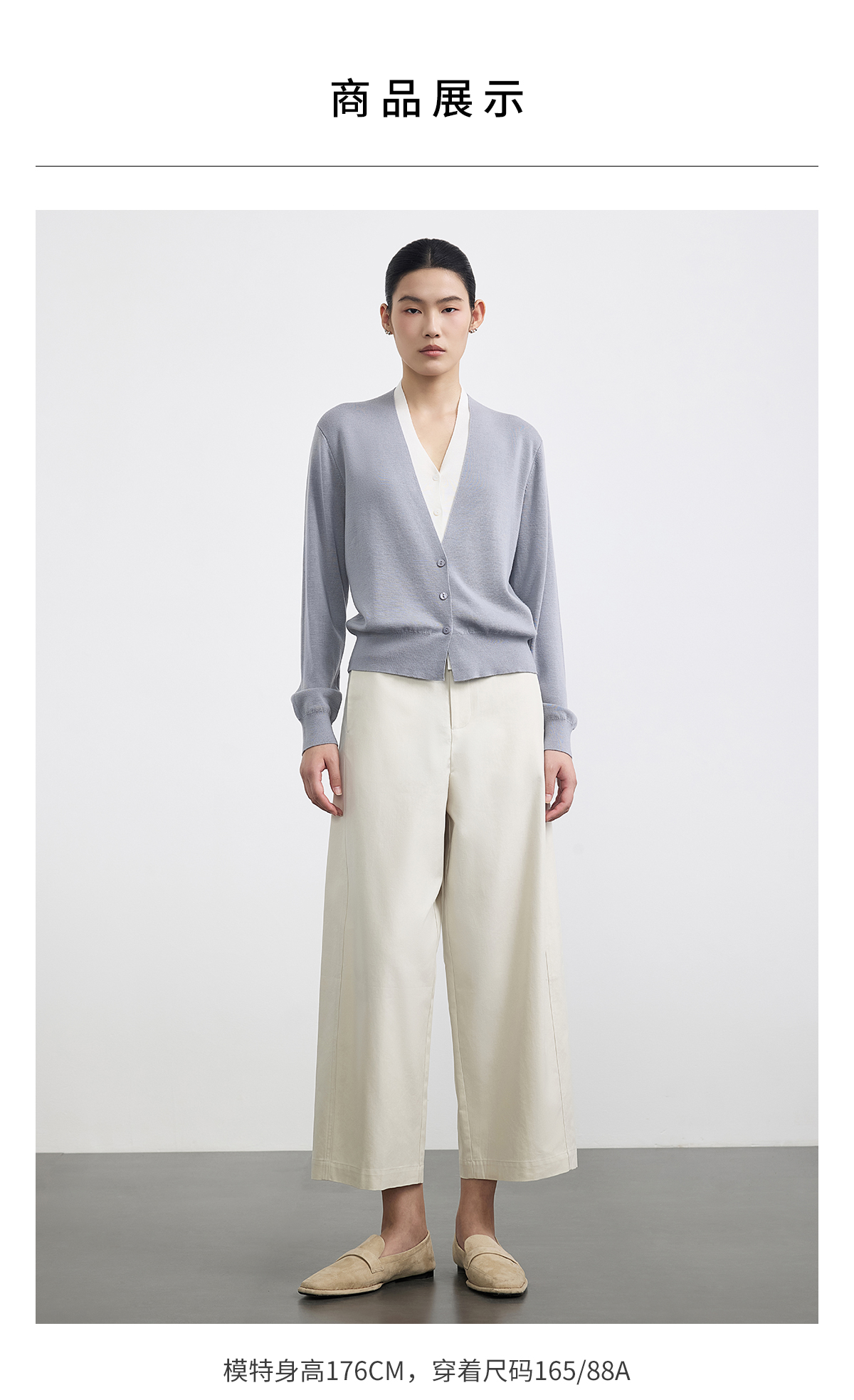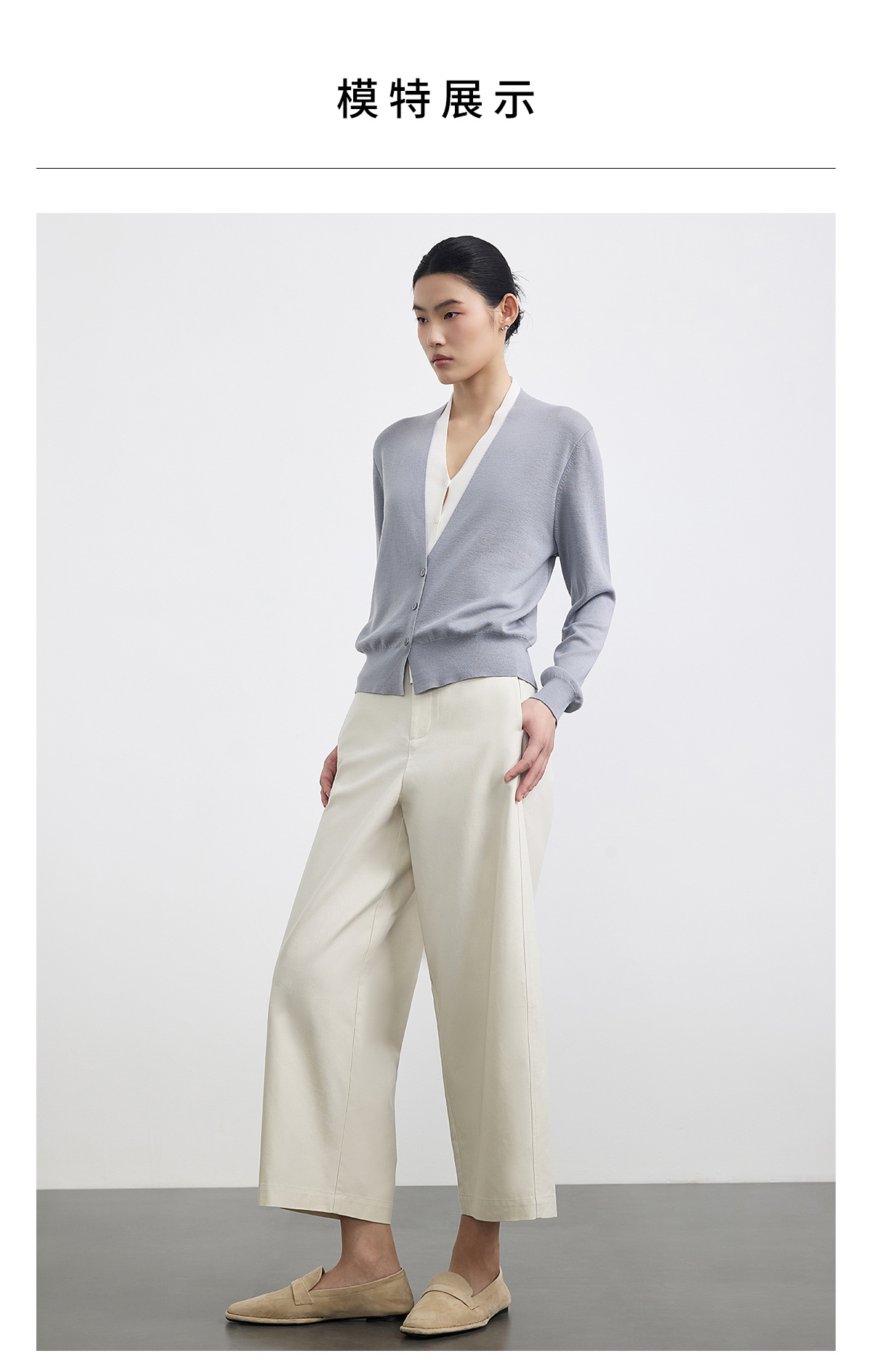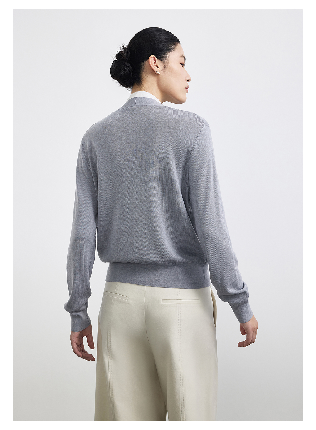 PURE TOUCH浅灰色V领长袖针织开衫