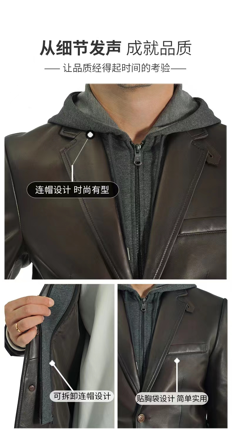 【直发】圣大保罗半植鞣绵羊皮柔和丰满可脱帽西装皮夹克PW23WJ735M