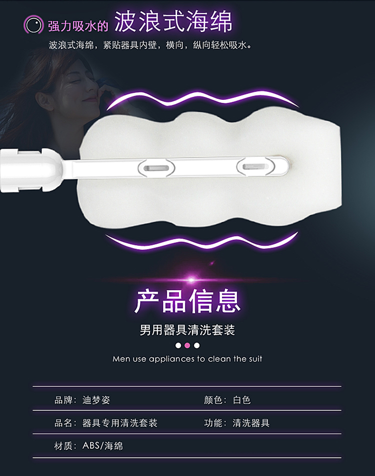 谜姬 男用清洗套装 男用飞机杯名器倒模实体娃娃通道清洗吸水棒 清洁工具配件 成人用品干燥辅助器具 男用器具清洗套装-清洗配件深入清洁通道
