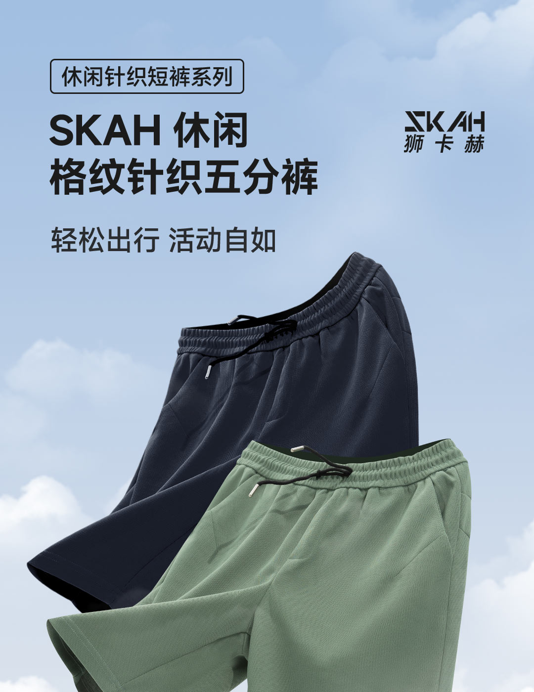 SKAH休闲格纹针织短裤755款 透气凉快时尚夏季裤 日常穿搭多色可选