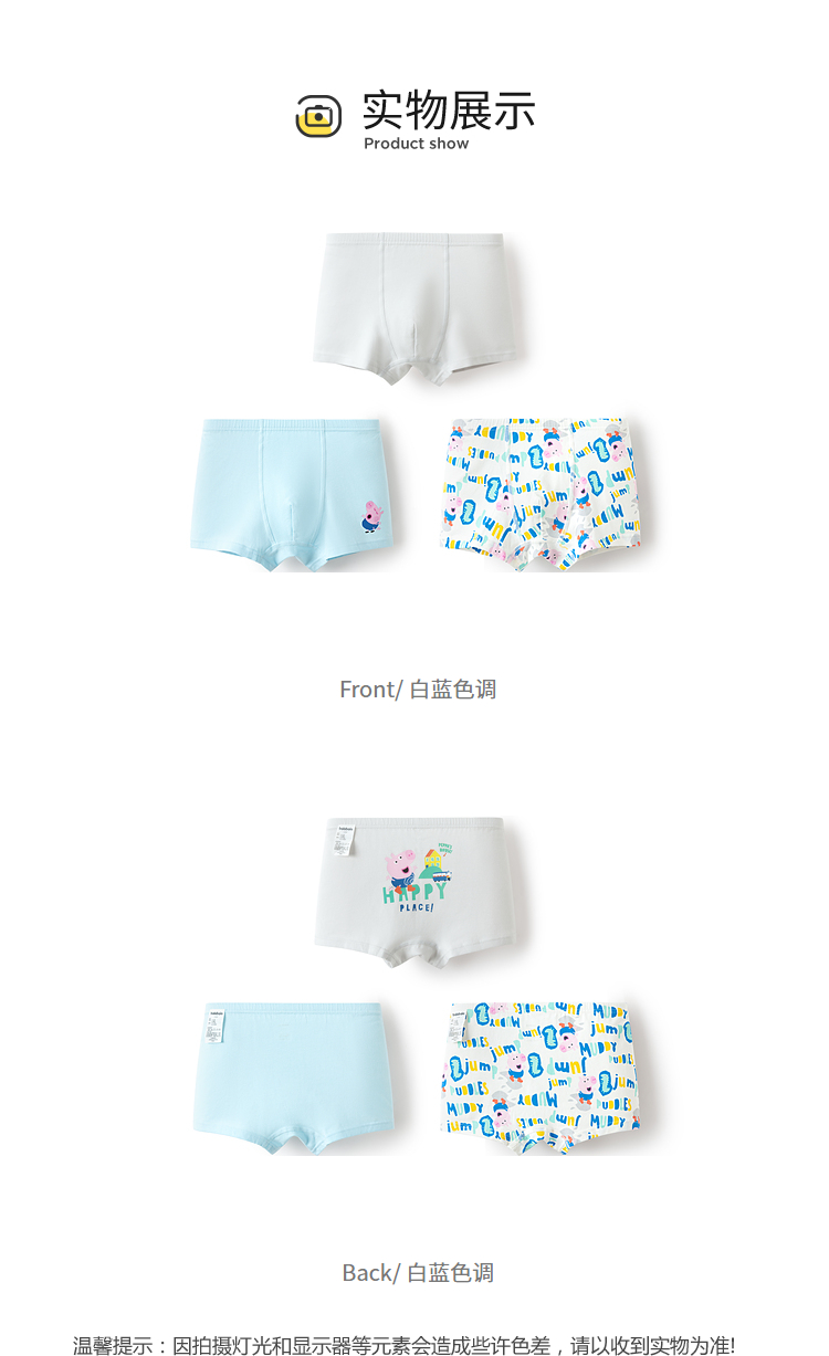 【【任选2件69元】【小猪佩奇IP】巴拉巴拉宝宝内裤棉a类儿童平角裤男童亲肤三条装