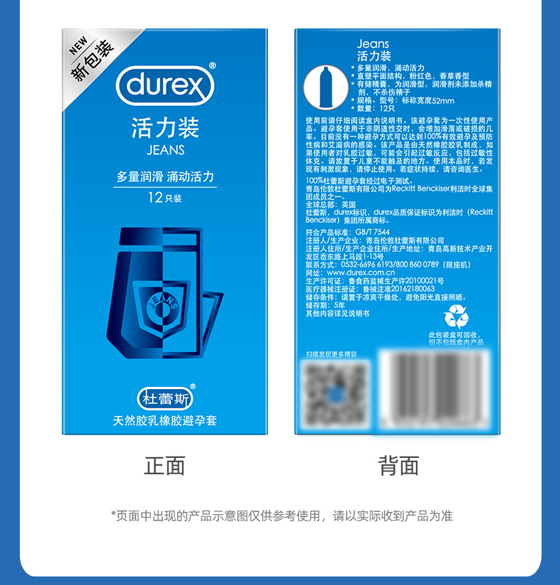 杜蕾斯 避孕套 安全套 活力12只装 润滑贴合 套套durex