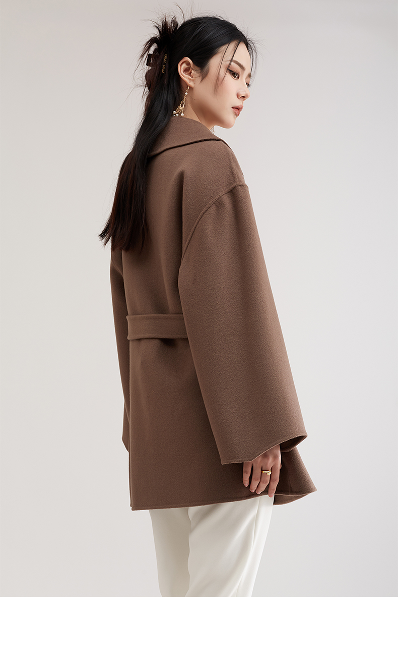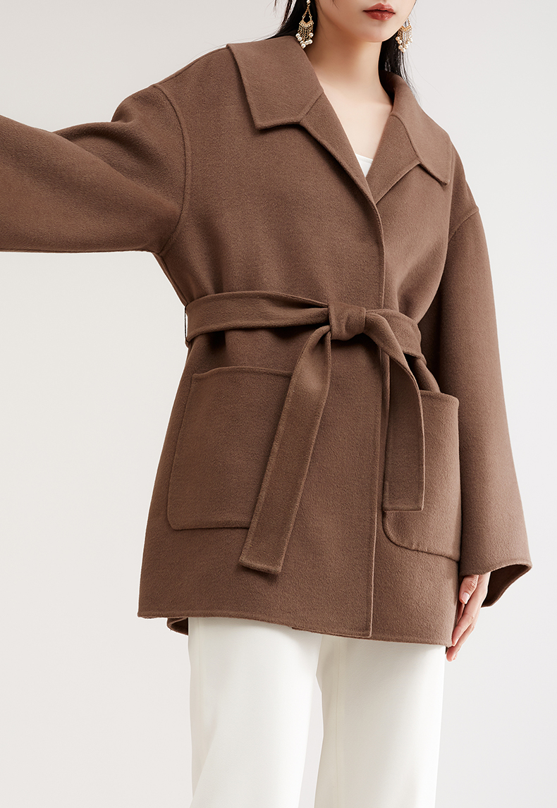 气质修身毛呢系带大衣,