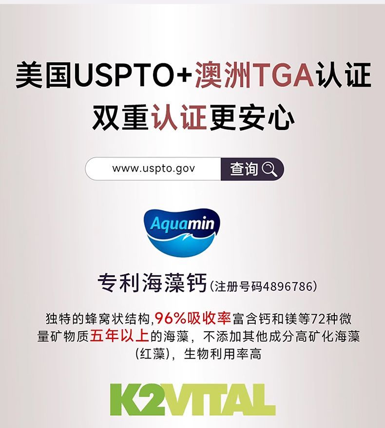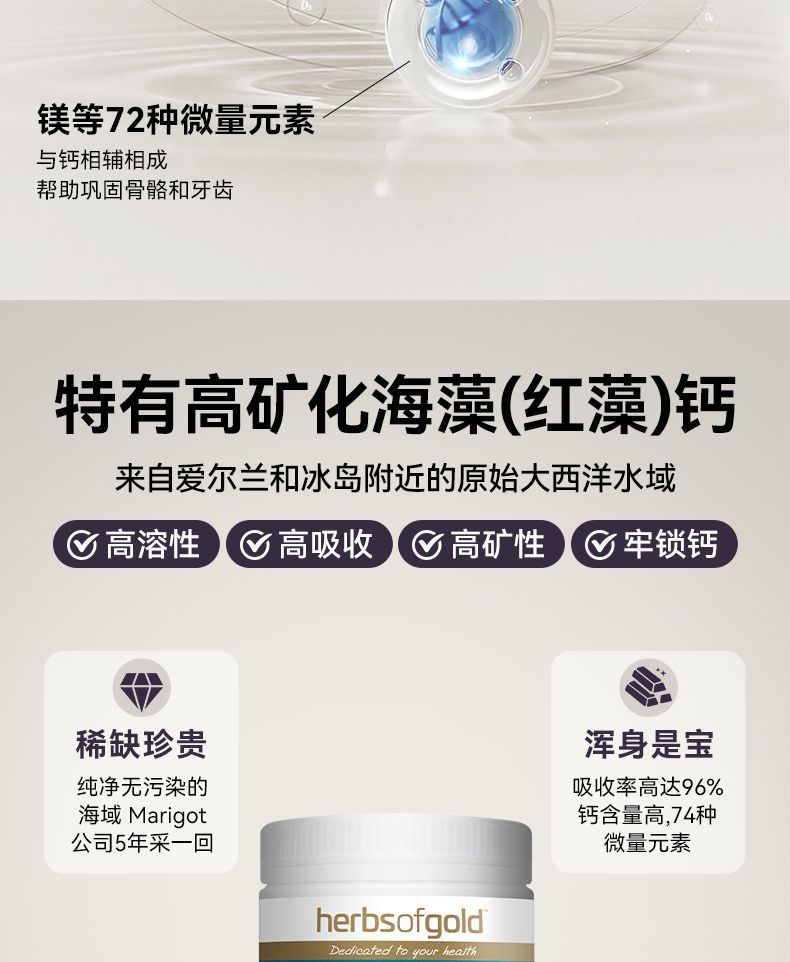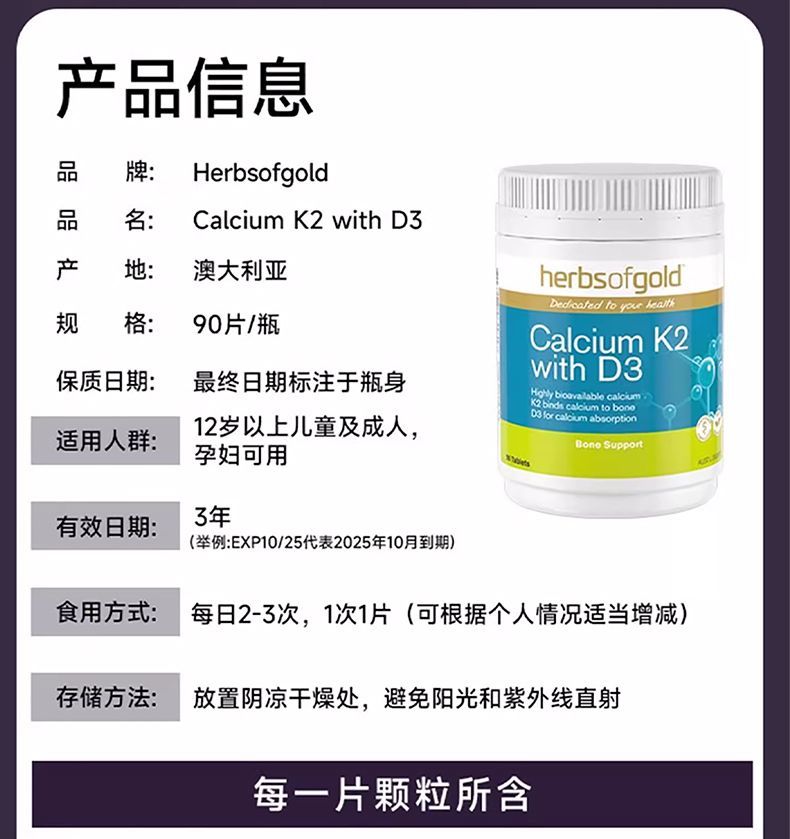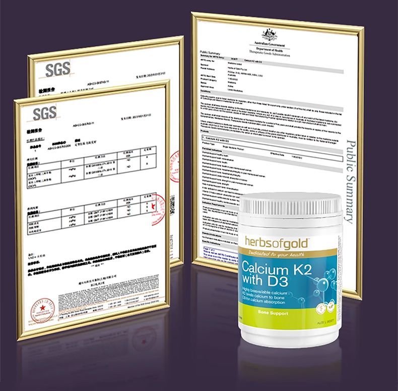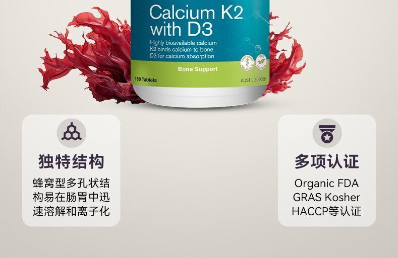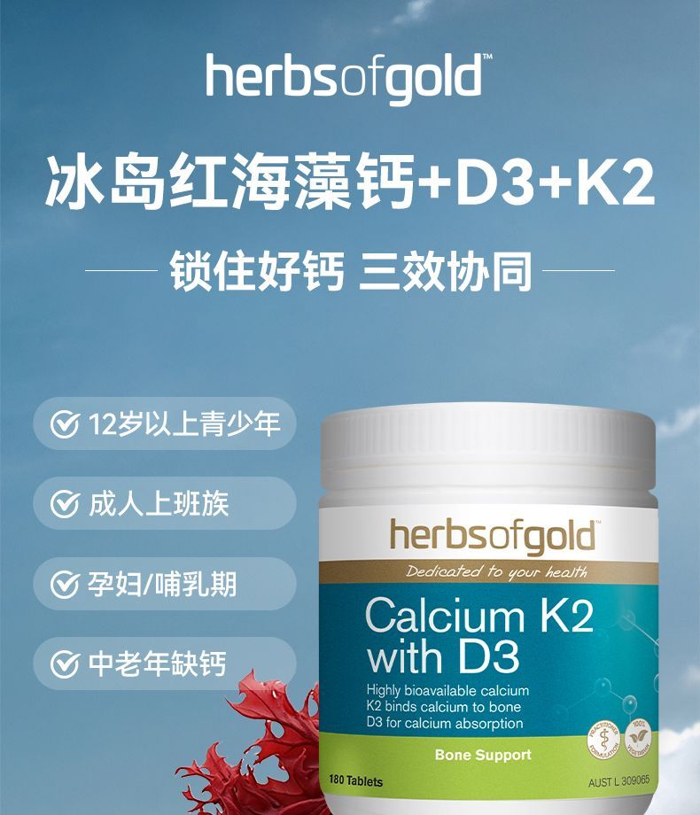 -澳洲Herbs of gold和丽康K2+D3有机海藻钙90片关节骨骼补钙吸收率