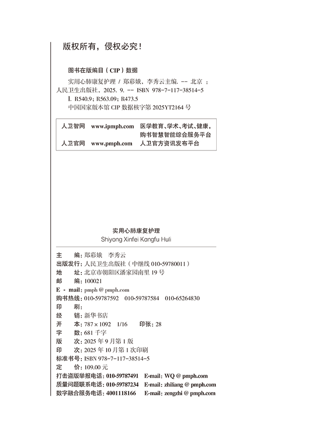 实用心肺康复护理 郑彩娥 李秀云 指导临床心肺康复护理的开展 推动临床心肺康复护理知识 技能的传播与临床应用 人民卫生出版社